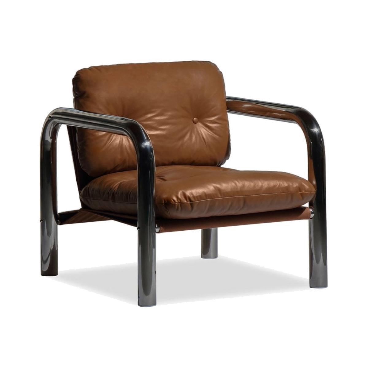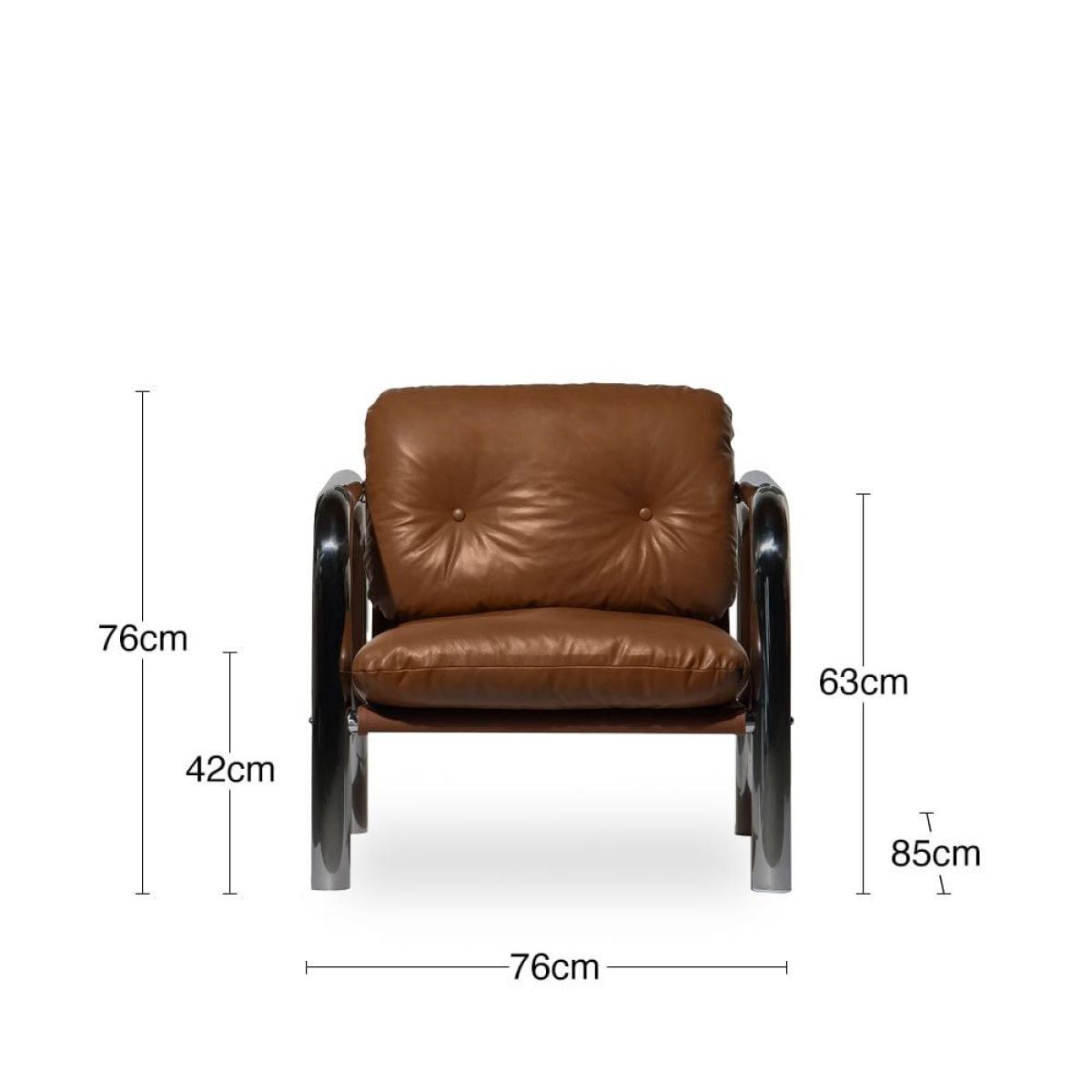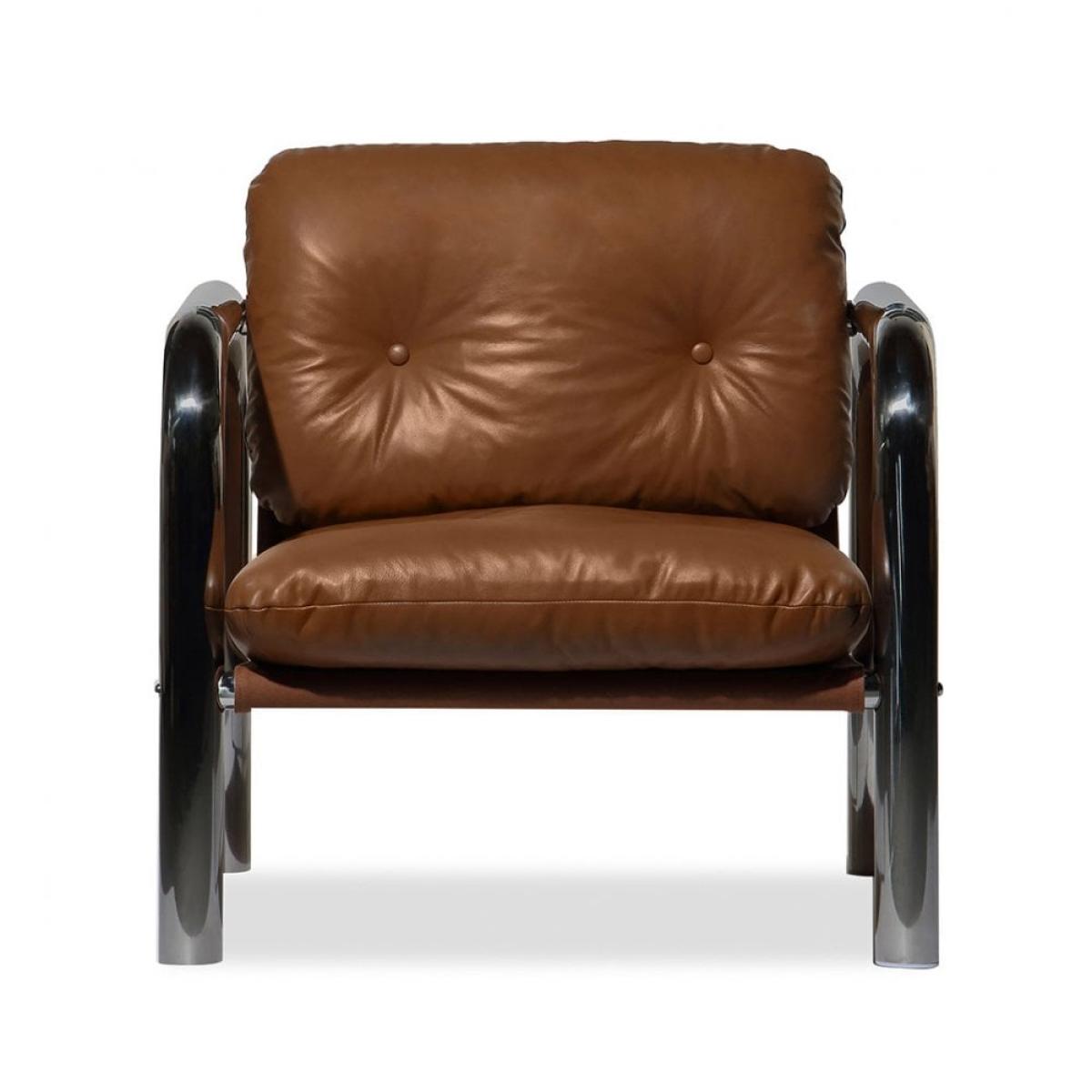 The Rudolph Tan Accent Armchair is an irresistible blend of striking 70s brutalism and refined Italian design. From the clean lines of the tublar chrome frame to the supple leather seat, only the finest materials are used in this hand-crafted design. There's an undeniable retro feel that exudes Mad Men-inspired design that will have you salivating. Each accent chair is hand-finished in semi-aniline leather that has the softness and texture of full-aniline leather yet more durability against scratches and wear over time. This is an eco-conscious and ethically sourced design.