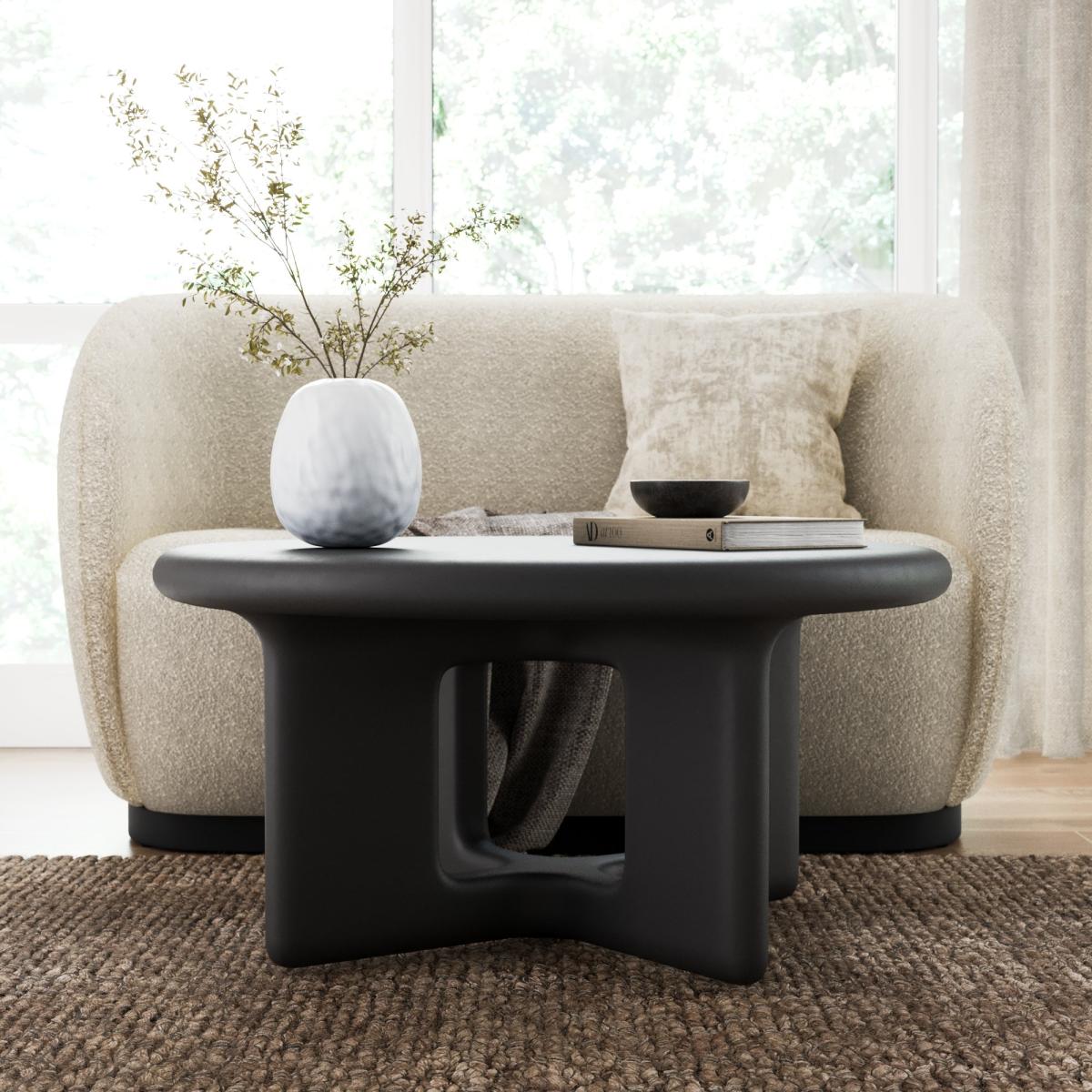 I’m a fan of this black concrete table for its calm, sculptural form and tough, low-maintenance surface. Its matte finish and rounded edges suit a range of schemes - from pared-back Scandinavian and industrial lofts to more eclectic living rooms - providing a solid focal point without overwhelming lighter textiles or metallic accents. For styling, keep the top uncluttered: a small stack of design books, a shallow ceramic tray for remotes and coasters, plus a single bud vase or sculptural candle will highlight the table’s shape. Underfoot, a natural-fibre rug (jute or sisal) adds warmth and texture against the cool concrete, while soft seating in neutral tones ensures the table remains the star.