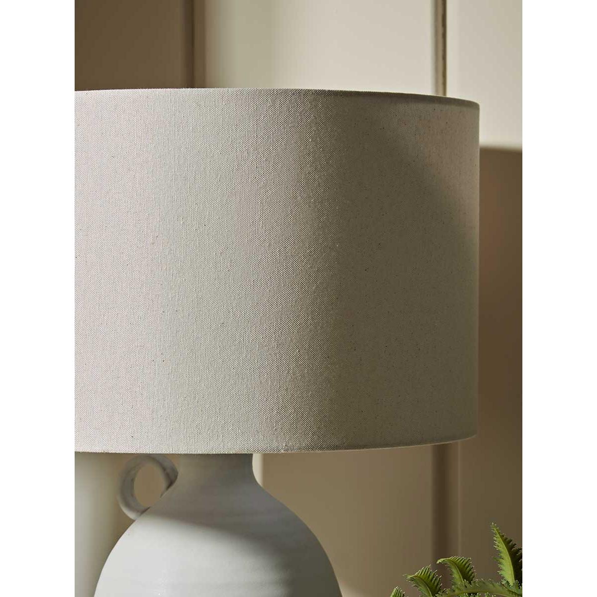Fill your space with a wash of warm light with our Rue Table Lamp. A unique base in the style of a demijohn bottle adds a touch of farmhouse-style to your decor, whilst the slight ribbed texture creates a gentle elegance. The neutral tones from the base and the shade allow the light to bounce off and brighten up your home in the most simple of ways.  Discover how to create the perfect lighting scheme for your home using our Lighting Buying Guide.