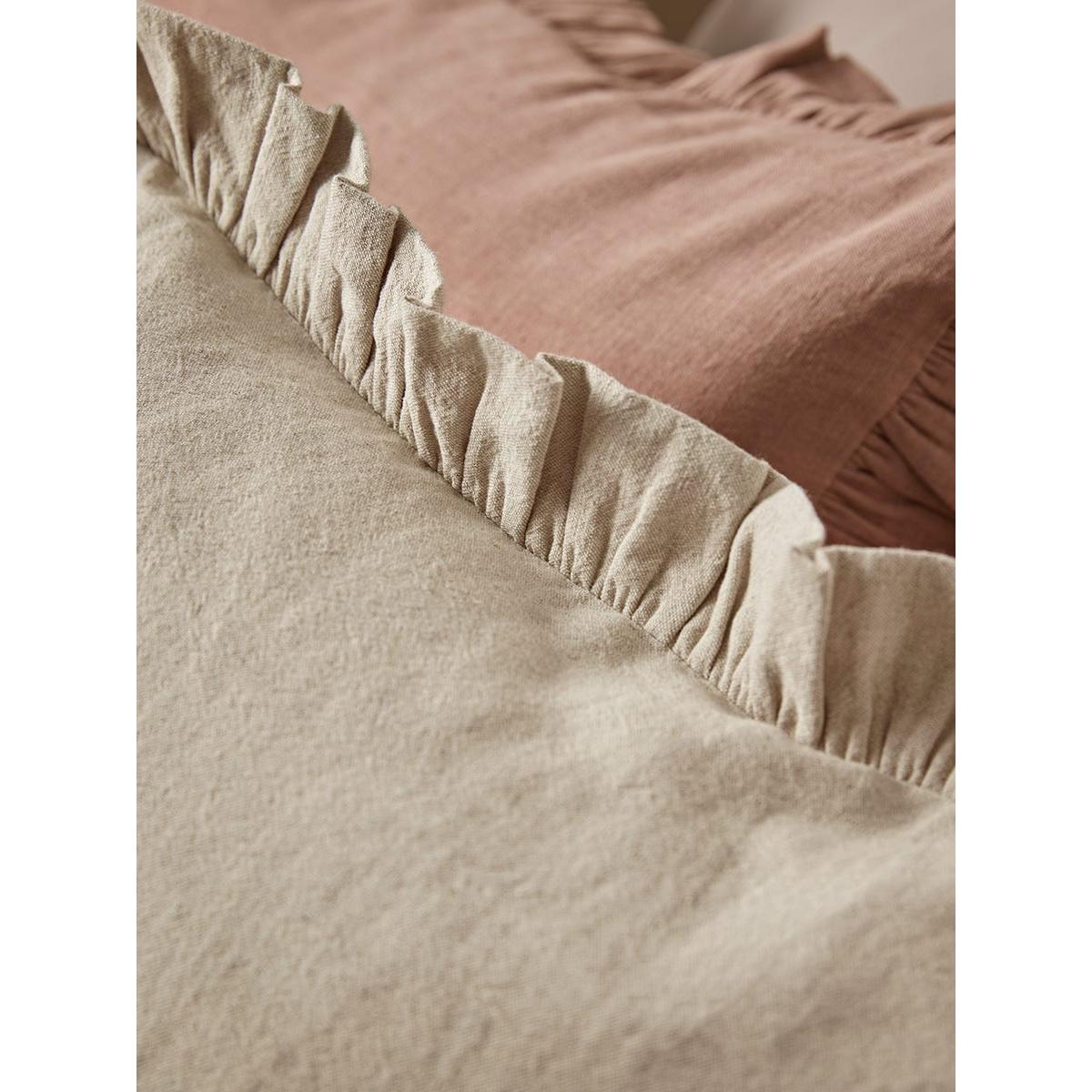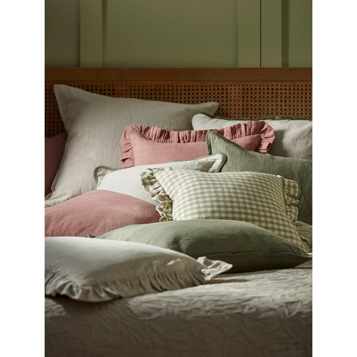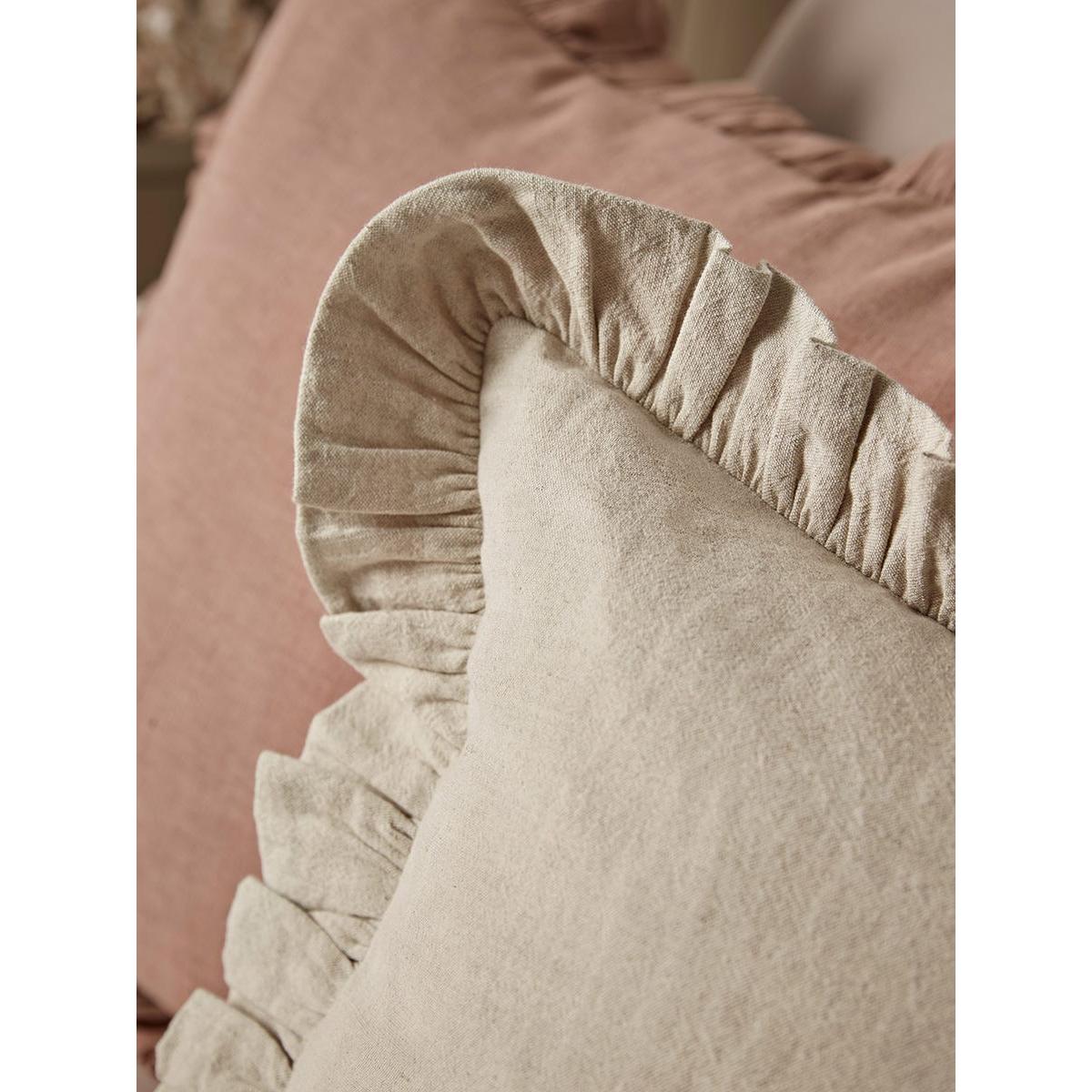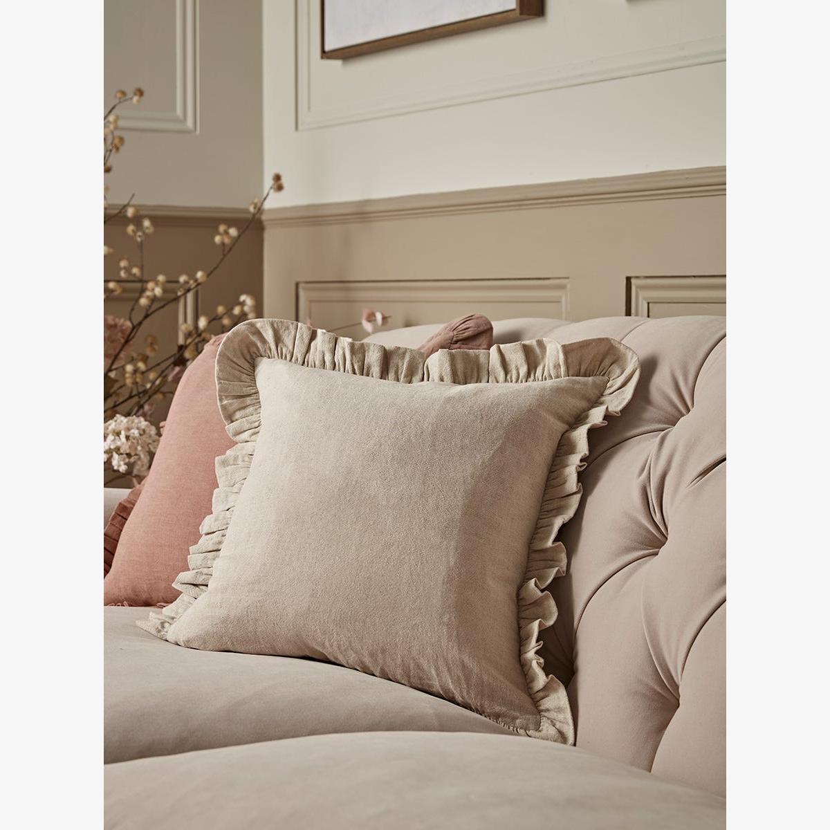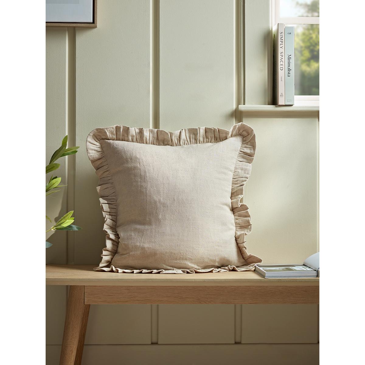 I love this cushion because of its versatile, relaxed vibe thanks to the ruffle detail and natural linen fabric. It works particularly well in casual or coastal-inspired interiors, adding cosy texture without feeling overly formal. For styling, try pairing it with neutral-toned throws and other soft textiles to create a layered, inviting look on a sofa or armchair. It’s also great for creating a balanced mix of textures in a minimalist or Scandi scheme, bringing a touch of softness and subtle detail that elevates the space. Practical tip: because of its neutral hue, it combines effortlessly with both light and dark palettes, making it a useful addition to many different settings.