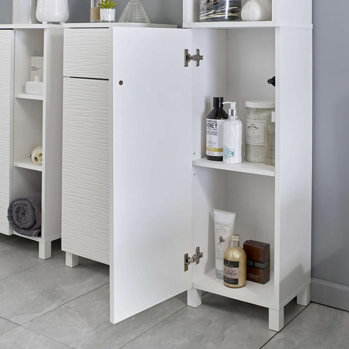 Create a clean and contemporary feel to your space with the Ruffle ripple texture tallboy cabinet in white.