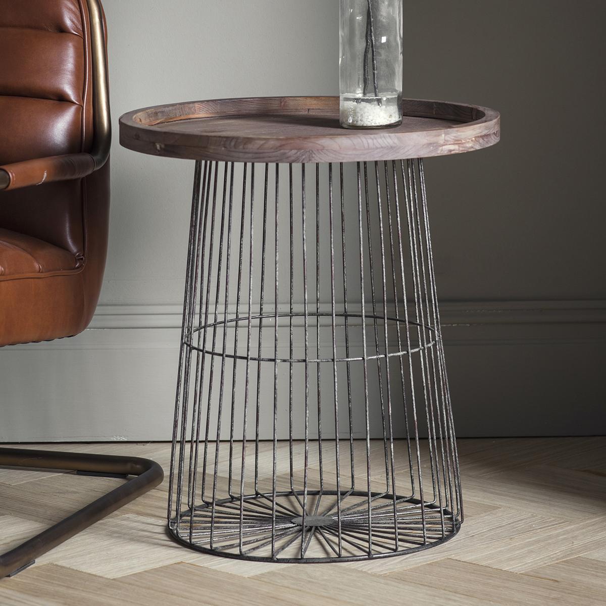 I love this piece for its clean, functional design with a touch of industrial charm. It works particularly well in contemporary and urban interiors, complementing both minimalist and eclectic styles. The dark wood top adds warmth and texture, making it versatile enough to pair with various colour schemes and furniture choices. Practical styling tips include using it as a lamp stand or a surface for decorative objects like books and small plants. Its open wire base allows it to seamlessly fit into tight spaces while adding visual interest without overpowering the room.