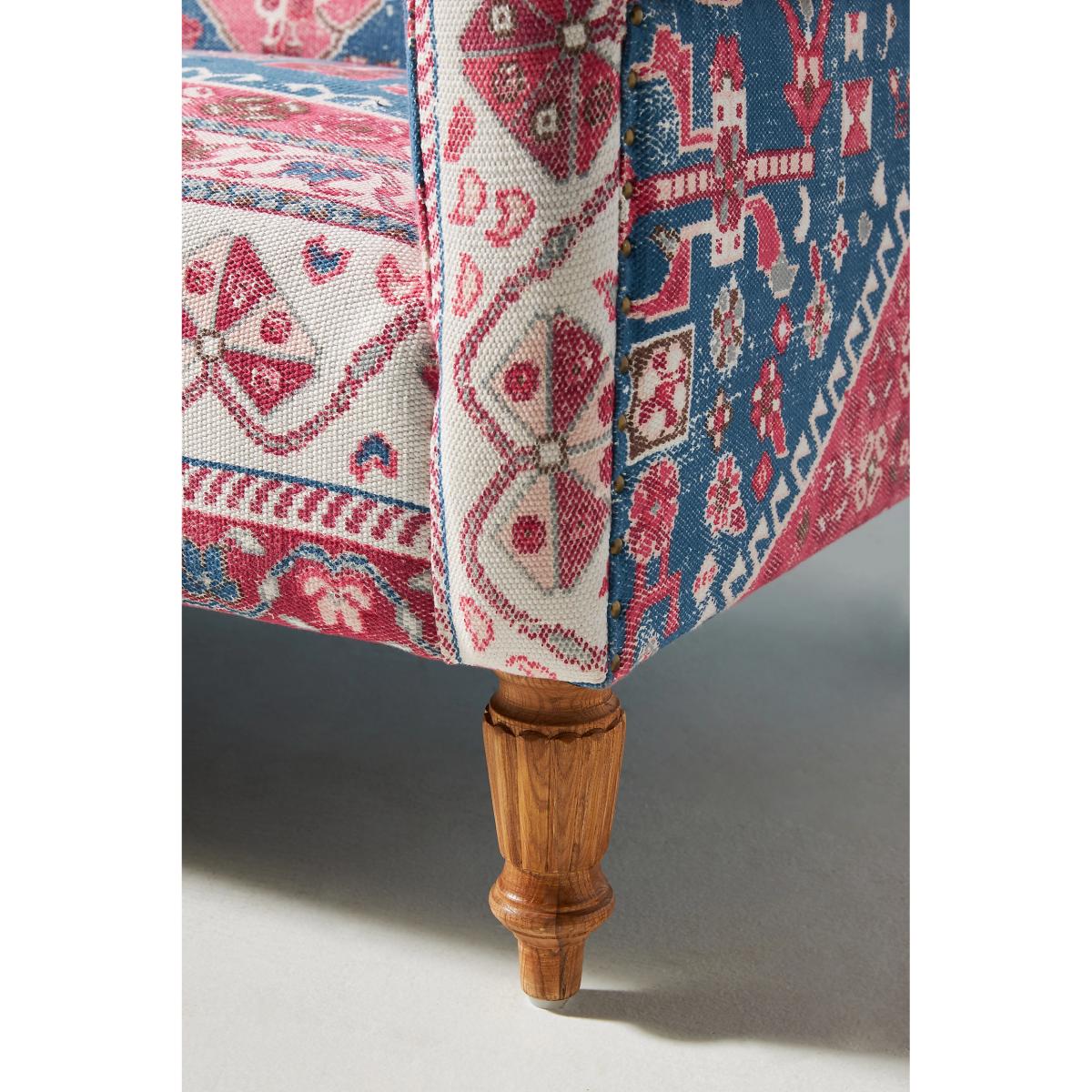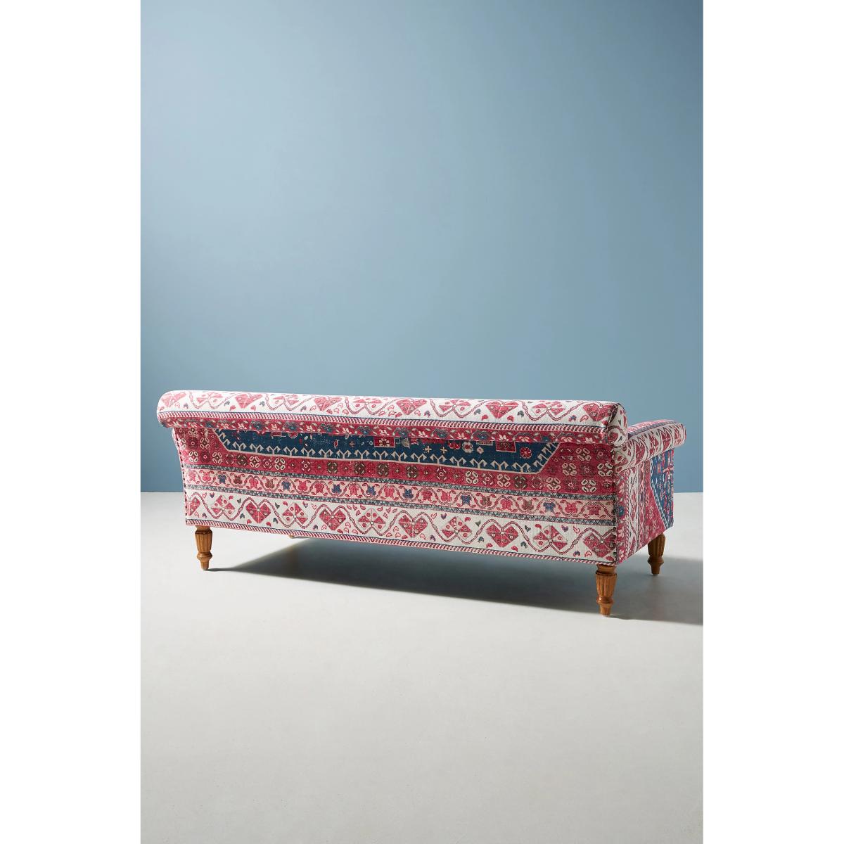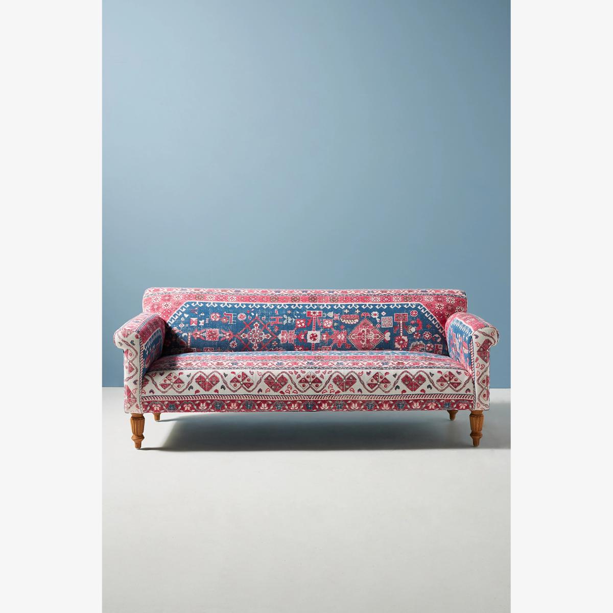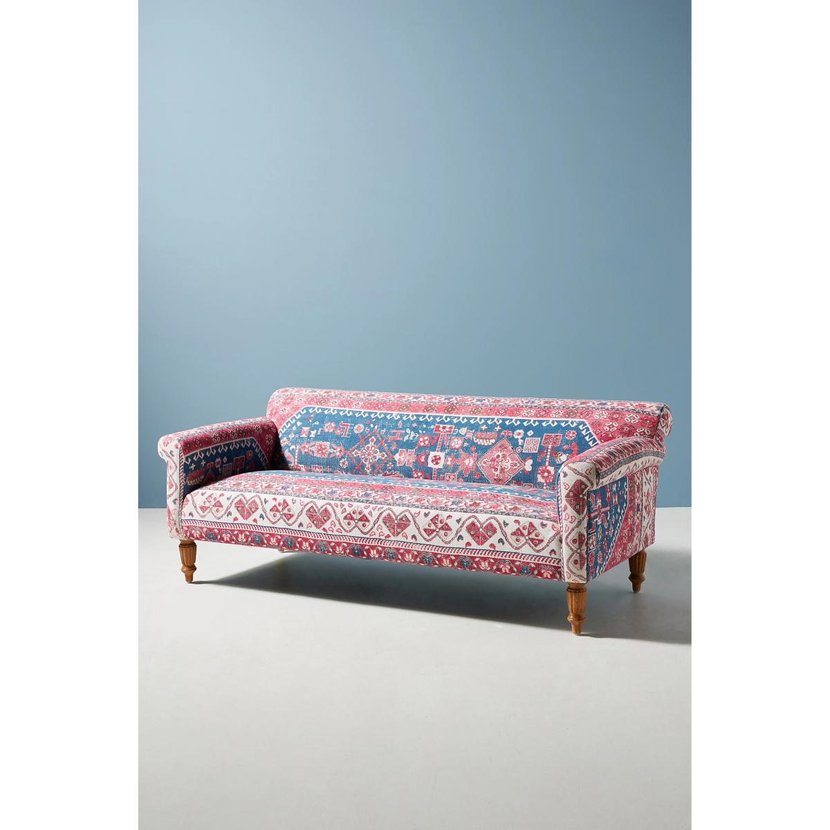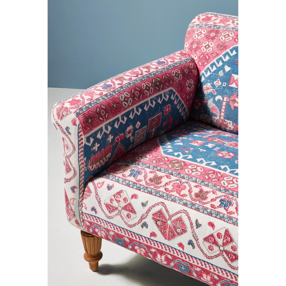 Inspired by traditional Turkish kilims, this stylized sofa features gently sloping arms, turned hardwood legs, and a tight-upholstered seat to showcase the intricate details of its woven masterpiece. * Furniture pieces weighing over 30kg include delivery to your room of choice and packaging removal * Cotton slub rug upholstery * Sinuous spring seat construction; foam and fiber fill * Tropical hardwood frame and legs * Mortise and tenon joinery * Professionally clean * This piece is intended for indoor use * No assembly required * Imported