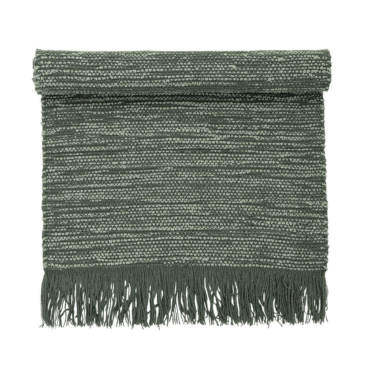 Thick and cosy, this fringed rug is perfect to bring a snug feel to your home. It comes in a beautiful green hue, brought to life by the contrast between the different shades used in the weave pattern.