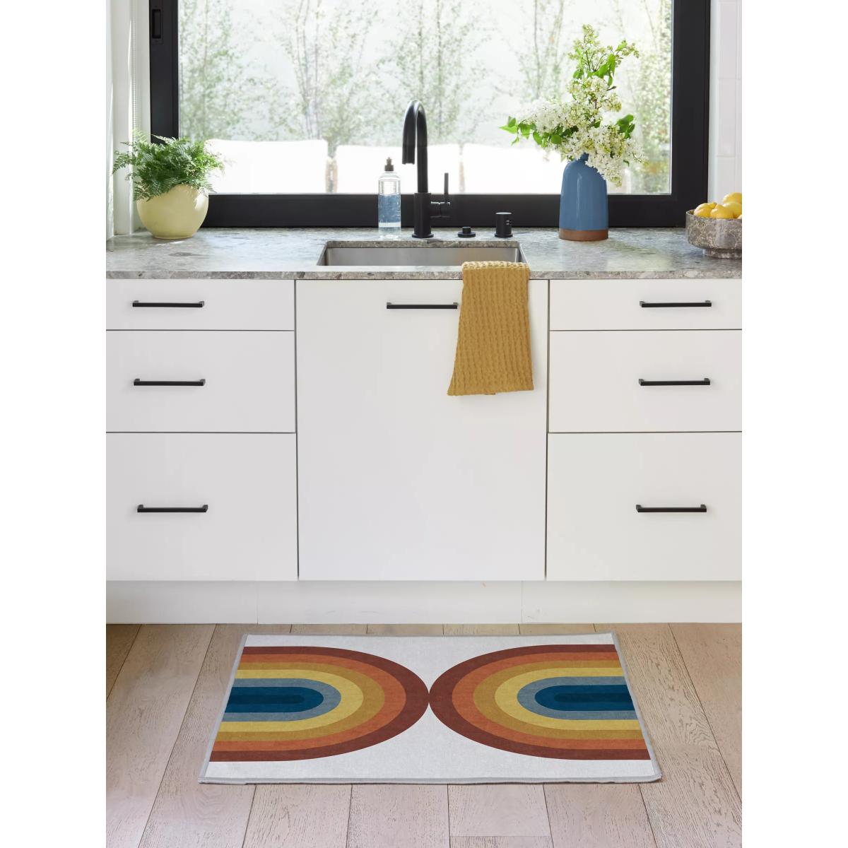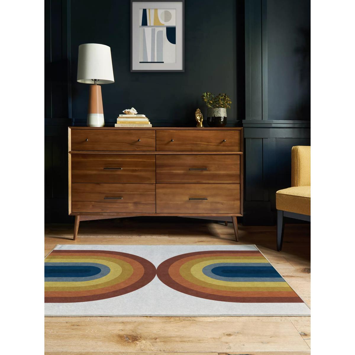 Influenced by the designs of Bauhaus artist Josef Albers, the Absida Rug brings a touch of retro-chic into your home. With mirrored arches designed in graduated shades and various colours, this creative composition will elevate your space. When it comes to washable rugs, Ruggable stands out from the pack. Thoughtfully designed and created to withstand whatever life throws at them: dirt, dust, spills, and even pet accidents. The rugs are fully machine washable, making it easy and affordable to keep them clean The low-pile, flatwoven washable rugs feature a non-toxic, water-resistant barrier that shields your floors from everyday stains, spills, and unwanted odours The rug pads feature non-slip latex-free backing to keep your rug in place Rugs look new again after each wash and they have water-resistant protection that doesn't deteriorate after washing The 2-piece system allows the non-slip grip to stay out of the washing machine and your rug to stay in place. Ruggable rugs are pet-friendly, kid-friendly, and life-friendly. No stress over spills, soft for tiny toes & paws, and safe & non-toxic.