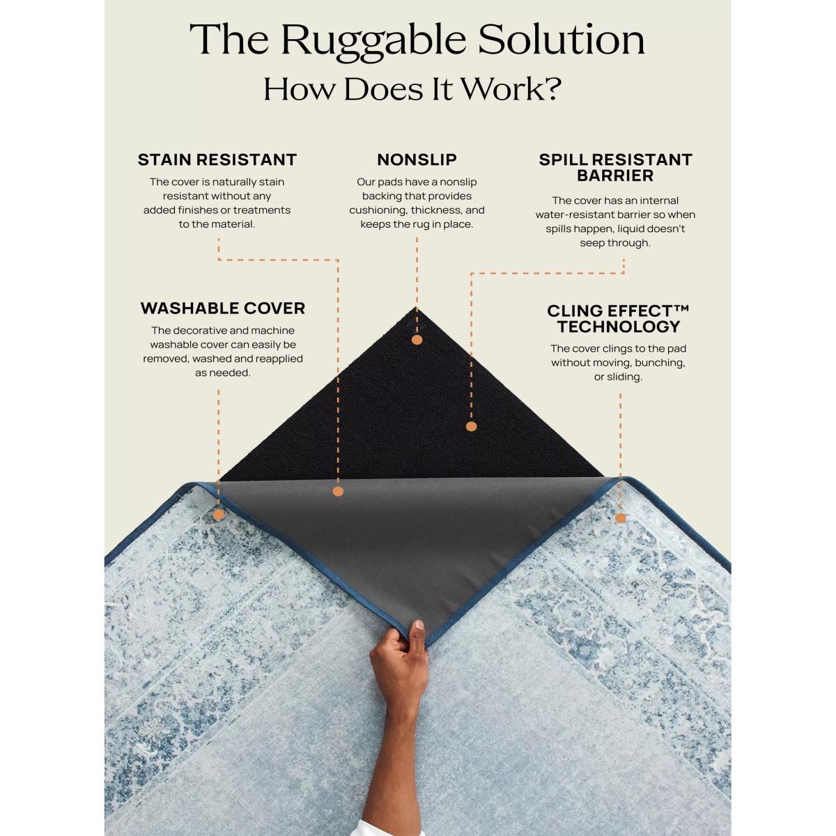 Inspired by classic European rug patterns, the Adeline Rug features a gently distressed diamond medallion with ornate corners and borders. Made from our water-resistant, stain-resistant, and machine-washable low-pile Chenille material. When it comes to washable rugs, Ruggable stands out from the pack. Thoughtfully designed and created to withstand whatever life throws at them: dirt, dust, spills, and even pet accidents. The rugs are fully machine washable, making it easy and affordable to keep them clean. The low-pile, flatwoven washable rugs feature a non-toxic, water-resistant barrier that shields your floors from everyday stains, spills, and unwanted odours. The rug pads feature non-slip latex-free backing to keep your rug in place. Rugs look new again after each wash and they have water-resistant protection that doesn't deteriorate after washing. The 2-piece system allows the non-slip grip to stay out of the washing machine and your rug to stay in place. Ruggable rugs are pet-friendly, kid-friendly, and life-friendly. No stress over spills, soft for tiny toes & paws, and safe & non-toxic.
