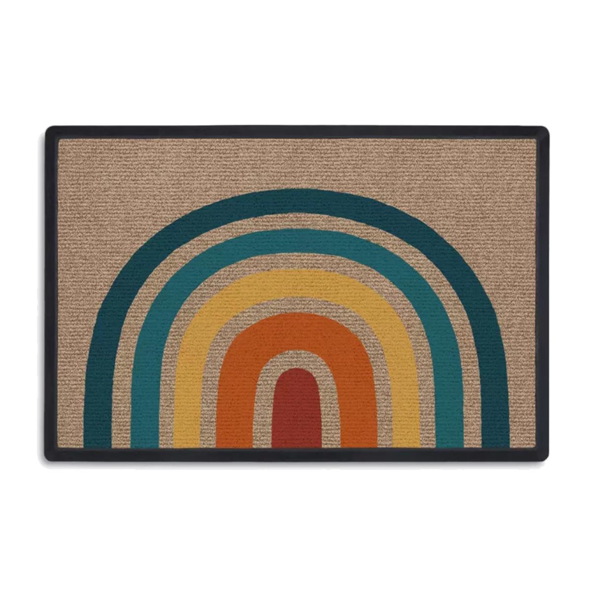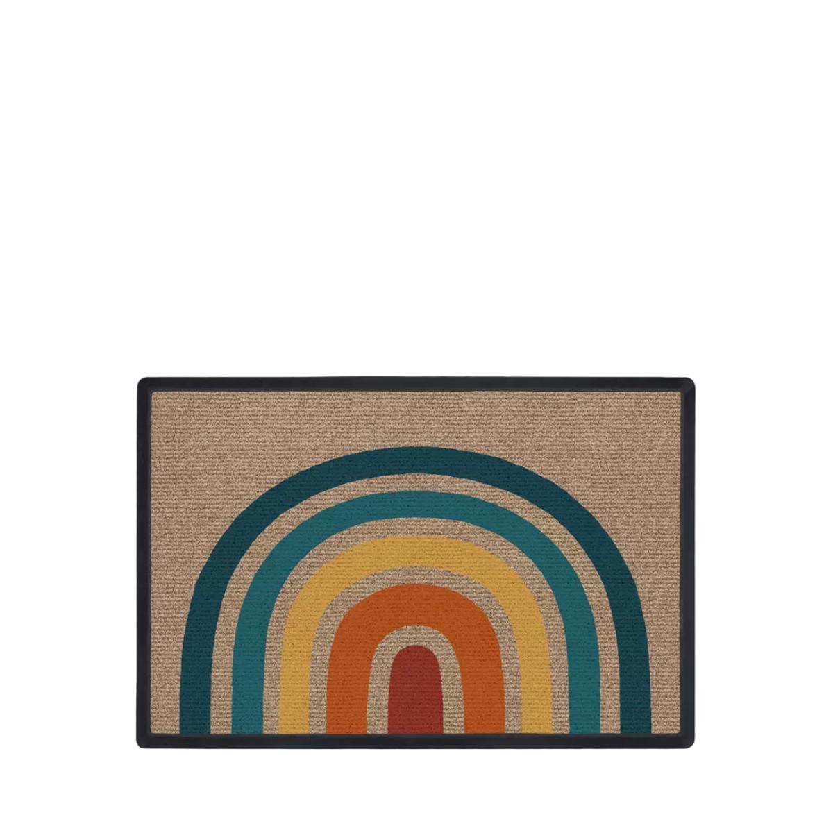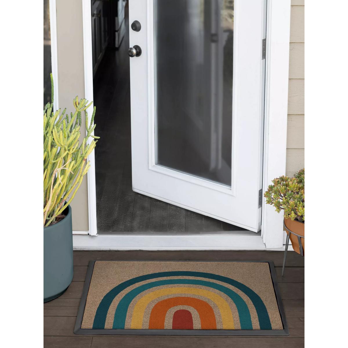 Add some colour to your doorstep with the Aria Rainbow Doormat. Adorned with a rainbow of red, orange, dijon, teal, and blue against a coir-coloured backdrop, this machine-washable doormat is sure to freshen up any entryway. Powered by Season. Shield, our Doormats Covers offer all-weather durability.