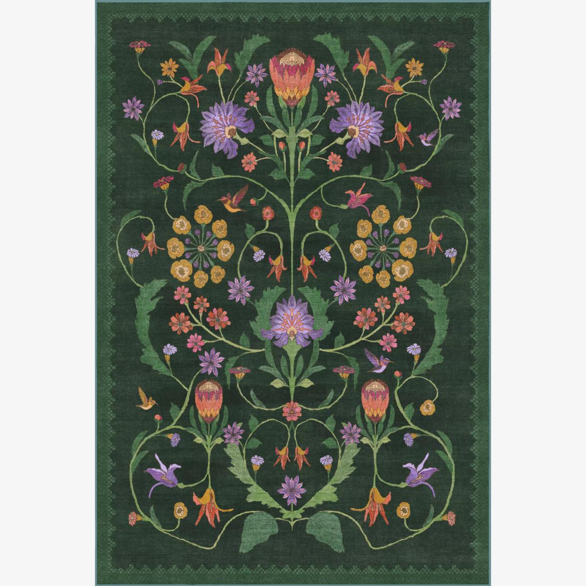 Celebrate a lasting legacy with the Iris Apfel Protea Rug. Inspired by floral fabrics from Iris' own collection, this botanical design features vivid, mirrored floral motifs that attract the sweetest hummingbirds in a garden-like setting. Petals bloom beautifully against a deep background. When it comes to washable rugs, Ruggable stands out from the pack. Thoughtfully designed and created to withstand whatever life throws at them: dirt, dust, spills, and even pet accidents. The rugs are fully machine washable, making it easy and affordable to keep them clean. The low-pile, flatwoven washable rugs feature a non-toxic, water-resistant barrier that shields your floors from everyday stains, spills, and unwanted odours. The rug pads feature non-slip latex-free backing to keep your rug in place. Rugs look new again after each wash and they have water-resistant protection that doesn't deteriorate after washing. The 2-piece system allows the non-slip grip to stay out of the washing machine and your rug to stay in place. Ruggable rugs are pet-friendly, kid-friendly, and life-friendly. No stress over spills, soft for tiny toes & paws, and safe & non-toxic.