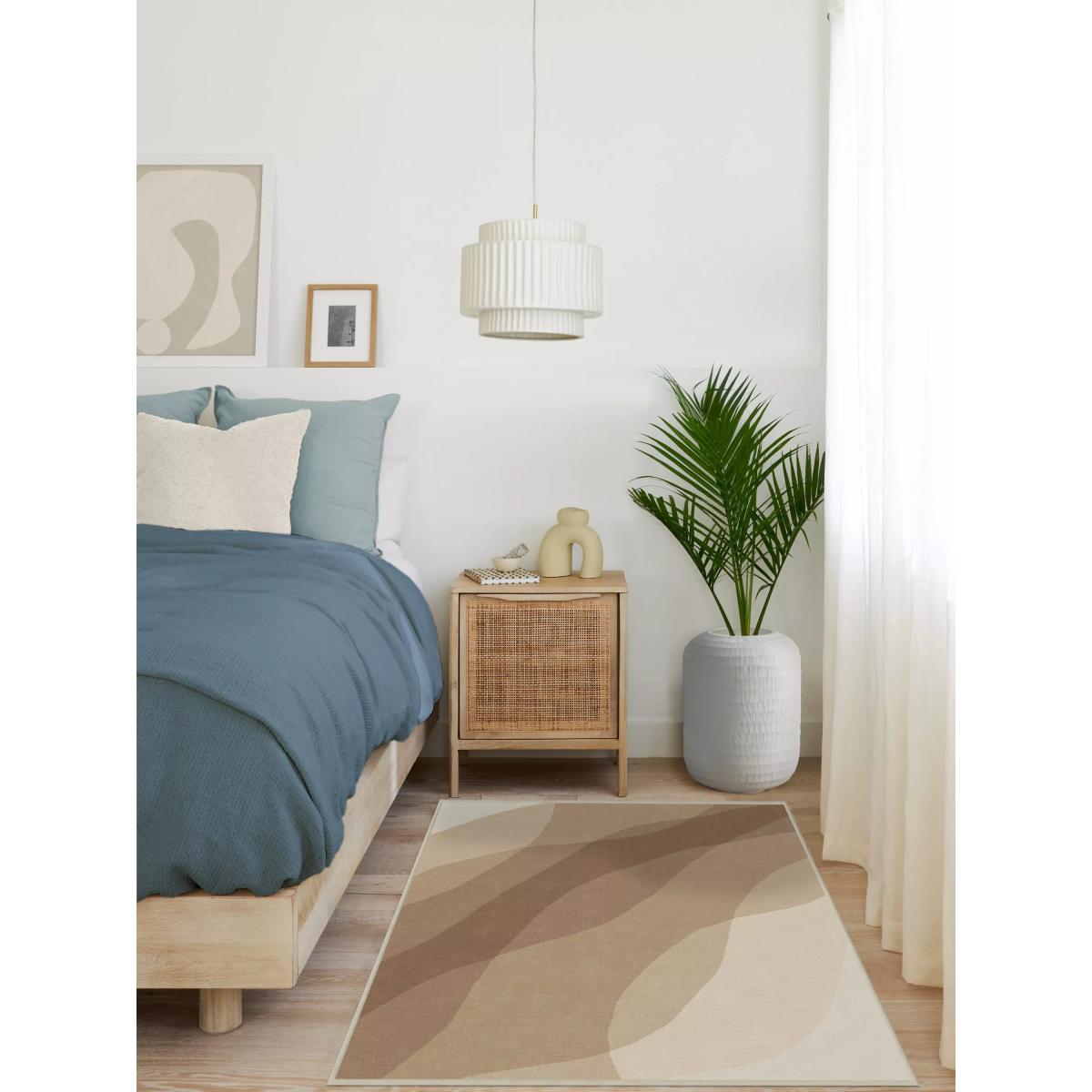 Keep your space earthy and elegant with the Kallan Rug. Translucent shapes in neutral shades organically overlap and flow through each other against a soft background, allowing this design to feel effortless, eye-catching, and bold. Made from our water-resistant, stain-resistant, and machine-washable low-pile Classic material. Our Classic Rugs are woven from a velvety smooth chenille yarn. Rug colours may vary slightly according to your device and the lighting in your space. When it comes to washable rugs, Ruggable stands out from the pack. Thoughtfully designed and created to withstand whatever life throws at them: dirt, dust, spills, and even pet accidents. The rugs are fully machine washable, making it easy and affordable to keep them clean. The low-pile, flatwoven washable rugs feature a non-toxic, water-resistant barrier that shields your floors from everyday stains, spills, and unwanted odours. The rug pads feature non-slip latex-free backing to keep your rug in place. Rugs look new again after each wash and they have water-resistant protection that doesn't deteriorate after washing. The 2-piece system allows the non-slip grip to stay out of the washing machine and your rug to stay in place. Ruggable rugs are pet-friendly, kid-friendly, and life-friendly. No stress over spills, soft for tiny toes & paws, and safe & non-toxic.