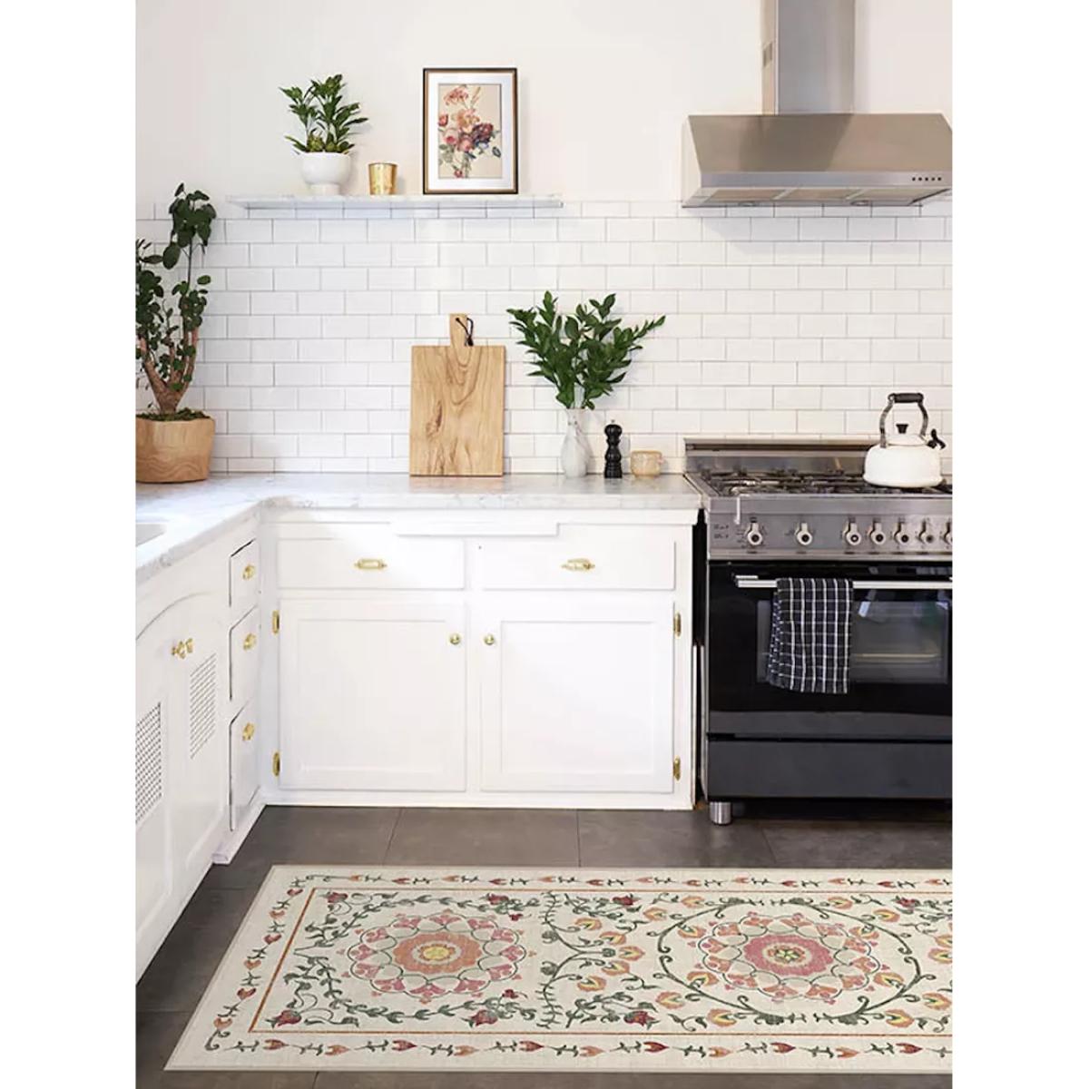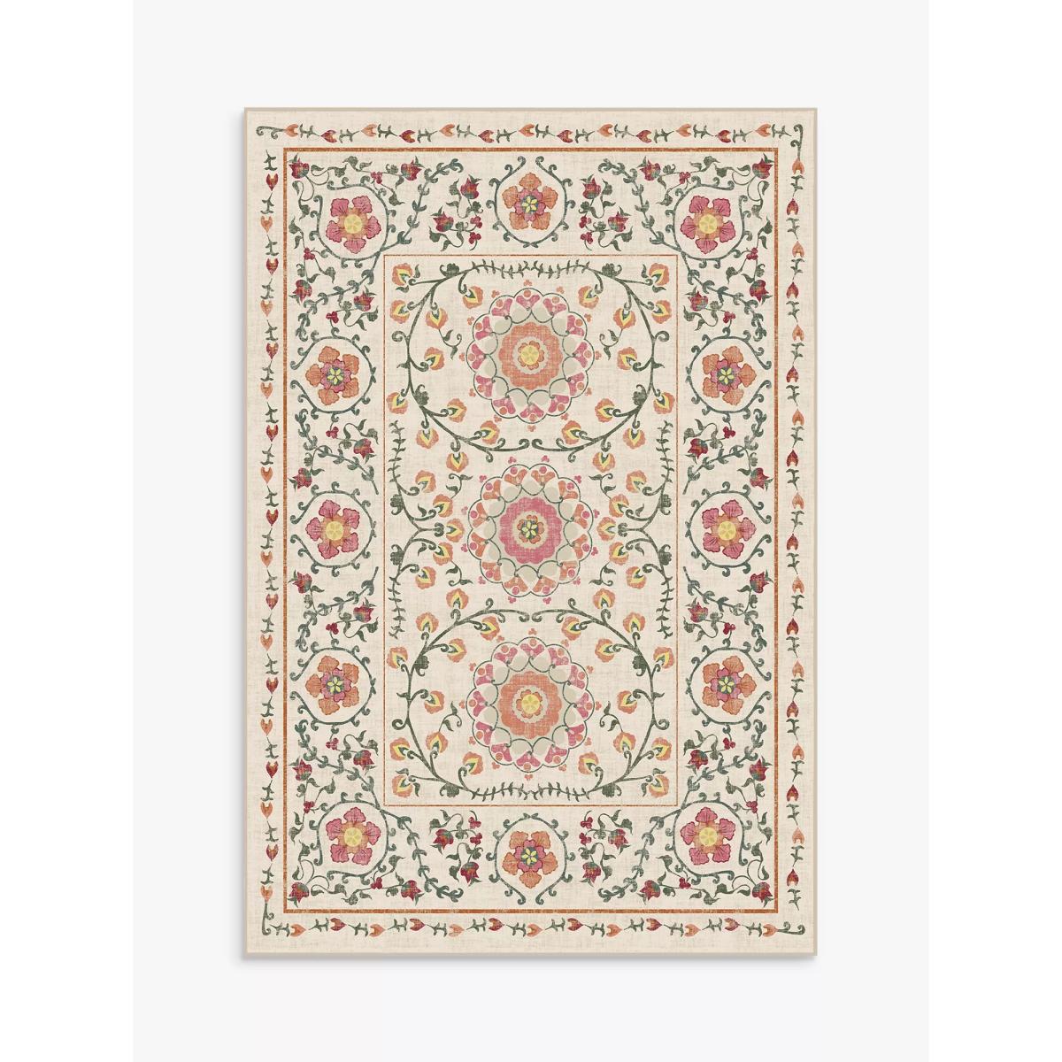Reminiscent of an English garden, Ruggable's Suzani rug is perfect for your home's traditional, country cottage, or shabby chic interior. Elegant and rustic, this floral rug features a bordered design with delicately drawn flower petals and vines in warm shades. When it comes to washable rugs, Ruggable stands out from the pack. Thoughtfully designed and created to withstand whatever life throws at them: dirt, dust, spills, and even pet accidents. The rugs are fully machine washable, making it easy and affordable to keep them clean The low-pile, flatwoven washable rugs feature a non-toxic, water-resistant barrier that shields your floors from everyday stains, spills, and unwanted odours The rug pads feature non-slip latex-free backing to keep your rug in place Rugs look new again after each wash and they have water-resistant protection that doesn't deteriorate after washing The 2-piece system allows the non-slip grip to stay out of the washing machine and your rug to stay in place. Ruggable rugs are pet-friendly, kid-friendly, and life-friendly. No stress over spills, soft for tiny toes & paws, and safe & non-toxic.