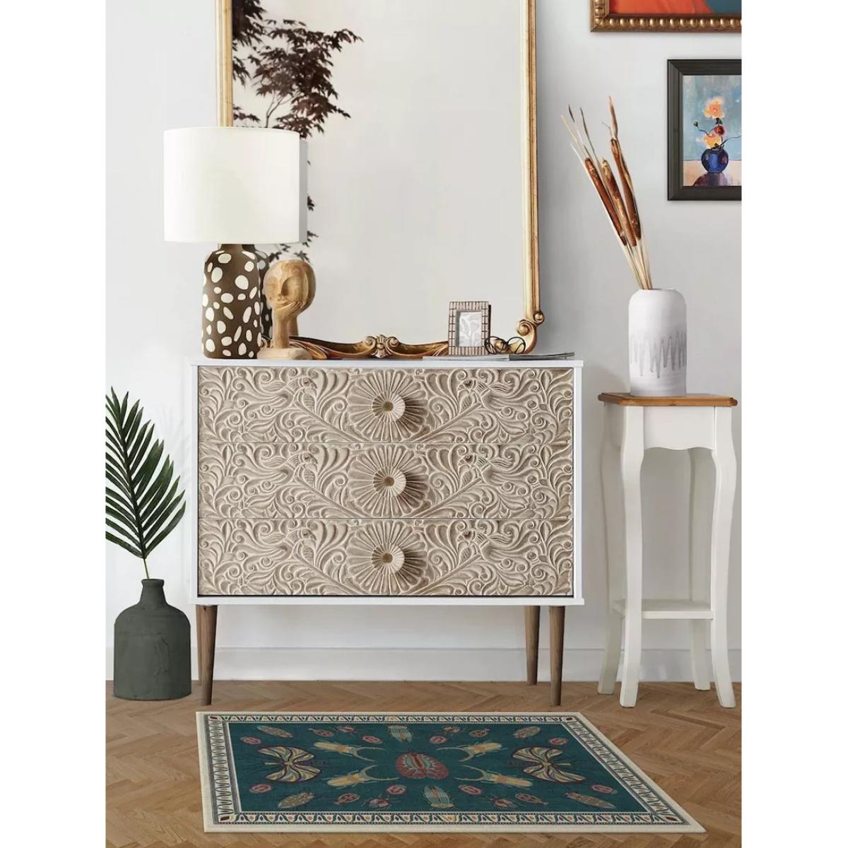 Bold and boho. The Iris Apfel Suzani Mosaic Multicolour Rug is inspired by the fashion icon's "more is more" aesthetic. It features palm leaves, fans, and tapestry pieces in captivating shades. Made from our water-resistant, stain-resistant, and machine-washable low-pile Chenille material. When it comes to washable rugs, Ruggable stands out from the pack. Thoughtfully designed and created to withstand whatever life throws at them: dirt, dust, spills, and even pet accidents. The rugs are fully machine washable, making it easy and affordable to keep them clean. The low-pile, flatwoven washable rugs feature a non-toxic, water-resistant barrier that shields your floors from everyday stains, spills, and unwanted odours. The rug pads feature non-slip latex-free backing to keep your rug in place. Rugs look new again after each wash and they have water-resistant protection that doesn't deteriorate after washing. The 2-piece system allows the non-slip grip to stay out of the washing machine and your rug to stay in place. Ruggable rugs are pet-friendly, kid-friendly, and life-friendly. No stress over spills, soft for tiny toes & paws, and safe & non-toxic.