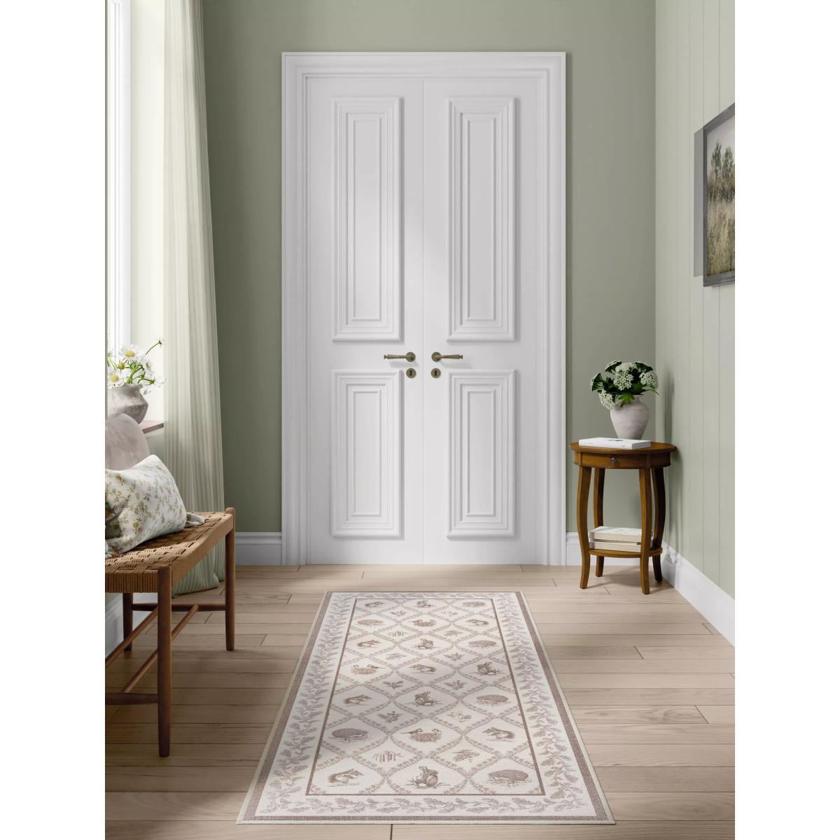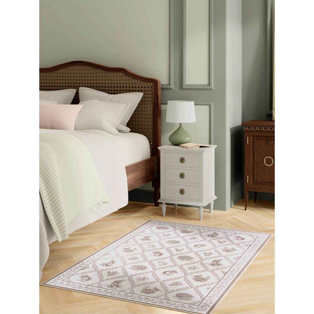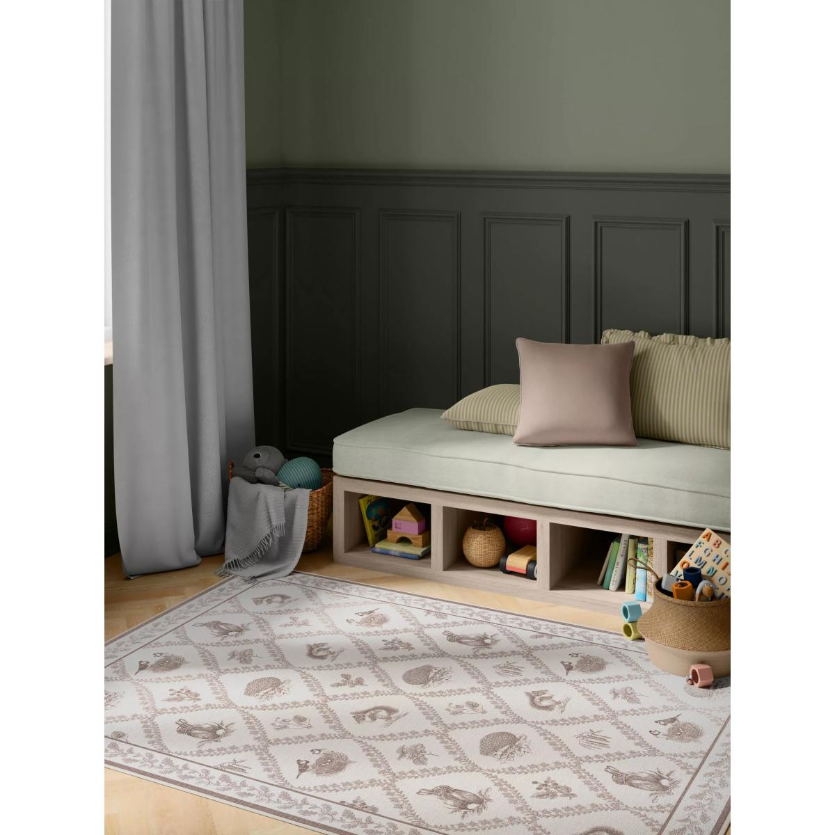 Feel the charm of the woodland with the Sanderson Squirrel & Hedgehog Rug. Referencing the Squirrel & Hedgehog design by Sanderson, this rug features delicate linework drawings of beloved British wildlife: a squirrel, rabbit, and hedgehog, accompanied by natural British flora, including acorns, catkins, and blackberries. These motifs are beautifully arranged within a lattice structure, framed by a floral border that complements the flora in the design. When it comes to washable rugs, Ruggable stands out from the pack. Thoughtfully designed and created to withstand whatever life throws at them: dirt, dust, spills, and even pet accidents. The rugs are fully machine washable, making it easy and affordable to keep them clean. The low-pile, flatwoven washable rugs feature a non-toxic, water-resistant barrier that shields your floors from everyday stains, spills, and unwanted odours. The rug pads feature non-slip latex-free backing to keep your rug in place. Rugs look new again after each wash and they have water-resistant protection that doesn't deteriorate after washing. The 2-piece system allows the non-slip grip to stay out of the washing machine and your rug to stay in place. Ruggable rugs are pet-friendly, kid-friendly, and life-friendly. No stress over spills, soft for tiny toes & paws, and safe & non-toxic.