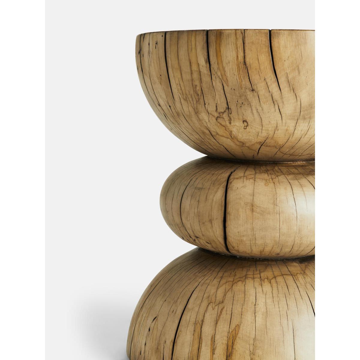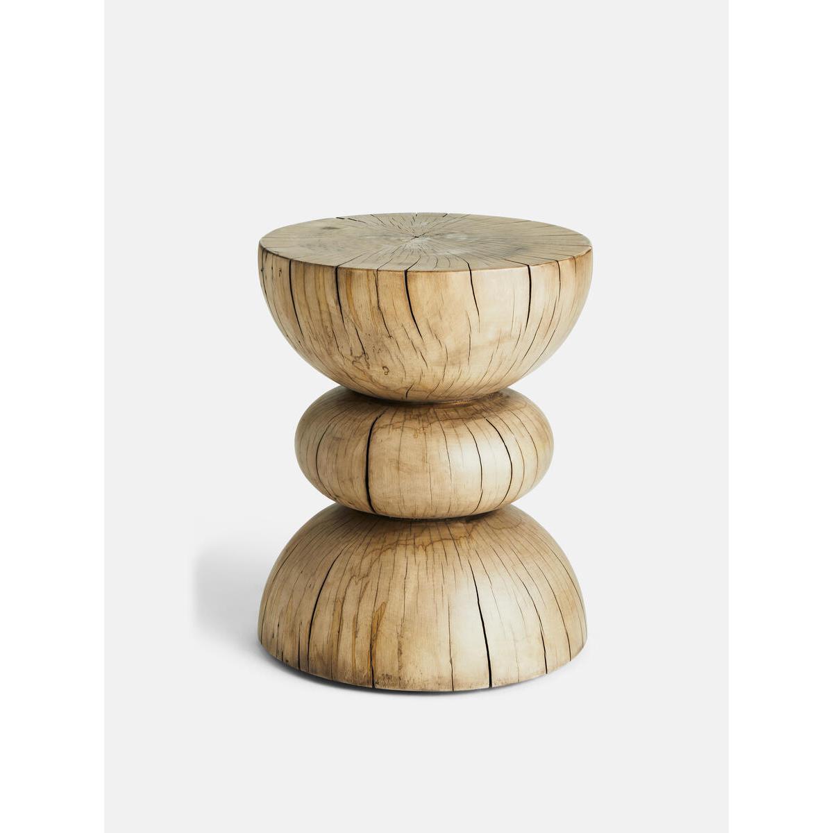 Referencing the furniture seen in Soho Roc House, the Rumanaside table is hand carved from solid, Indigenous Mexican Naturalalder wood, with cracks and knots that develop beautifully overtime. The structural piece features a dome top and reversed domebase - a unique side table that nods to fine craftsmanship andbrings character into any room. Hand-carved side table. Mexican alder wood. Dome base and top. Natural effect. Each piece is unique. Cracks and knots develop with age. Inspired by Soho Roc House.