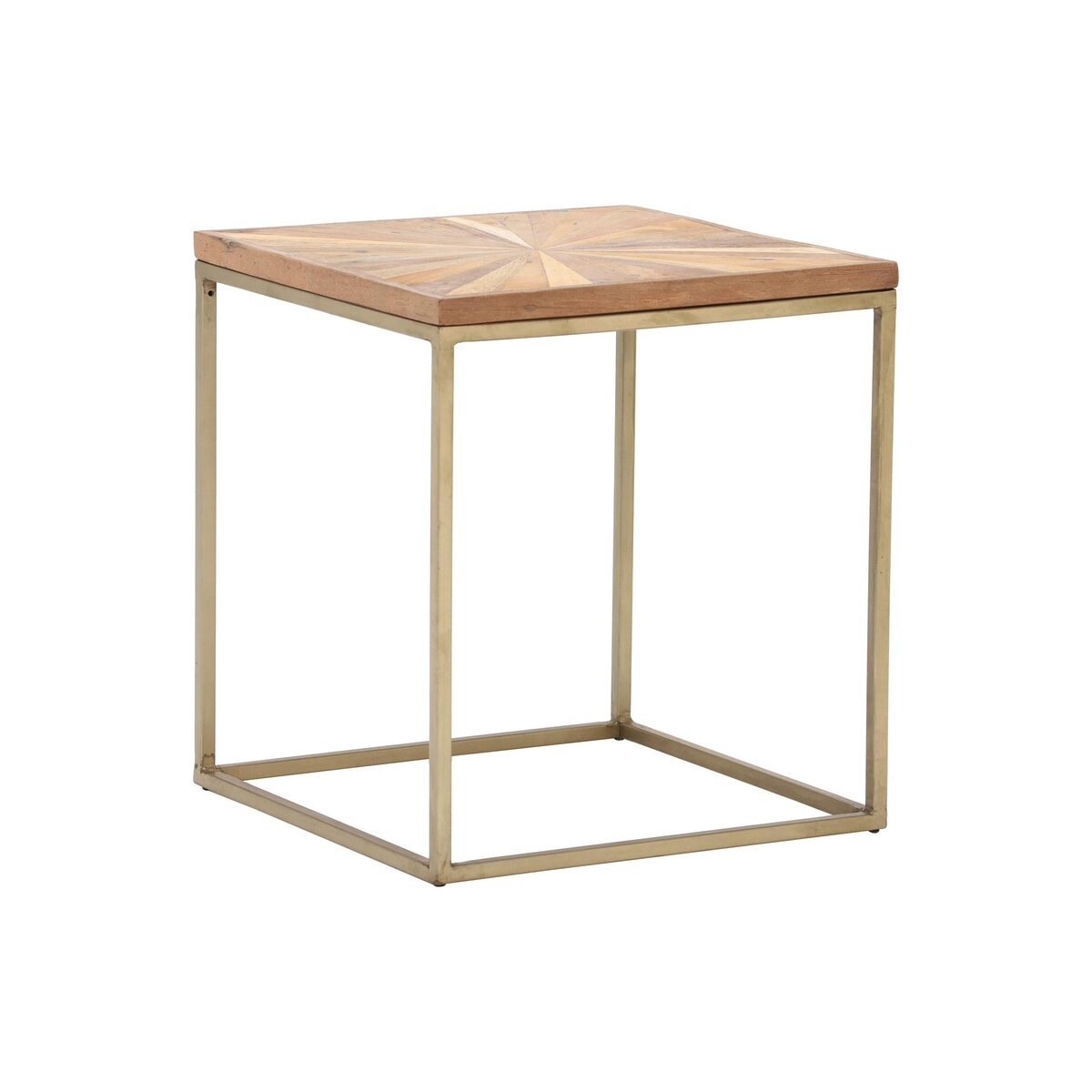 Simply stylish with a minimalist, geometric design, the Rumi combines industrial iron and rustic reclaimed wood to create this beautiful side table. Featuring an antique brass finish on its sturdy base, the top has a lacquered finish to accentuate its natural knots and grains, and offers extra surface space.