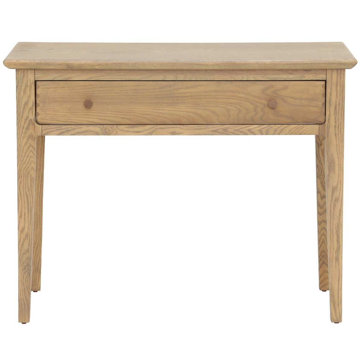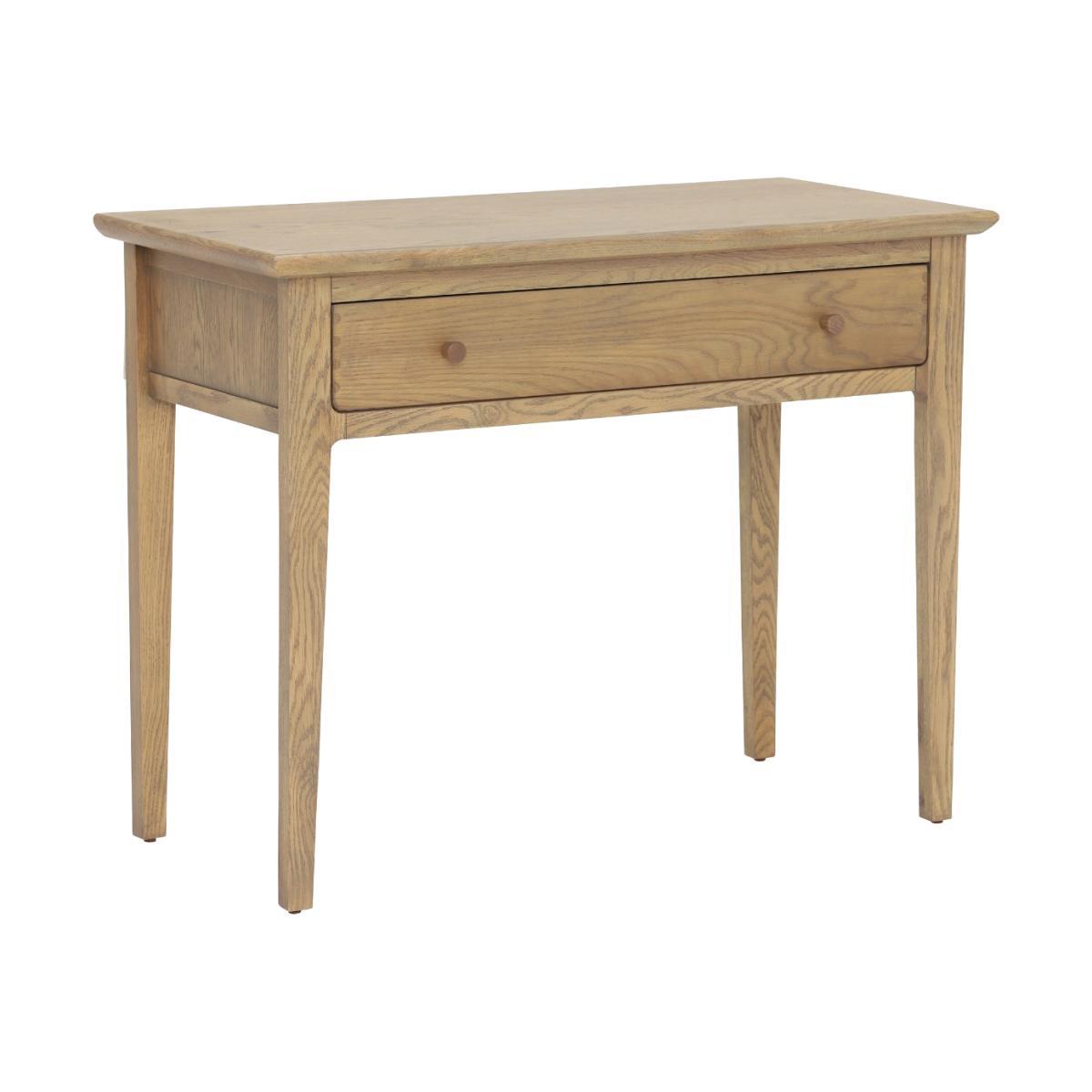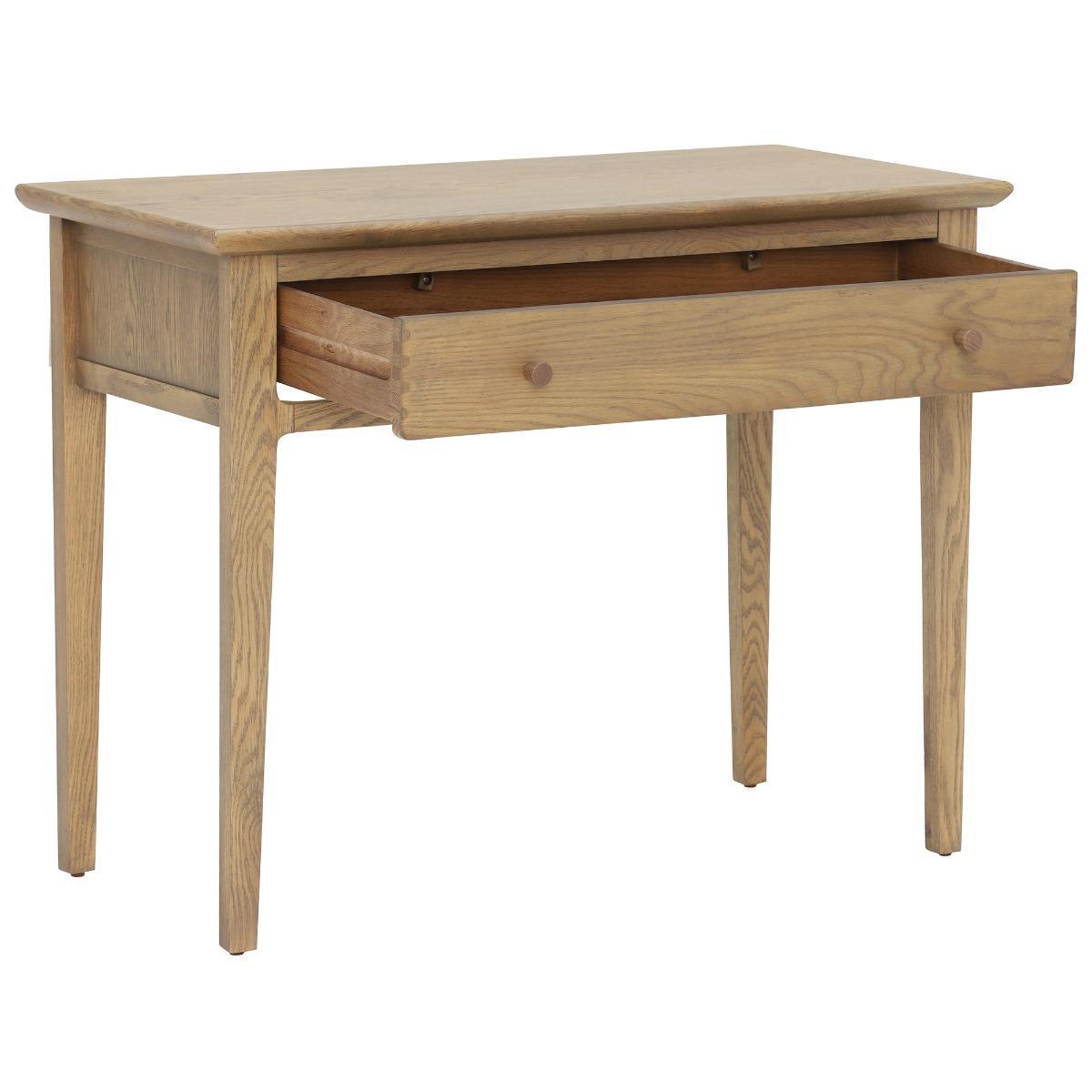 Design. Simple yet elegant design at its best, the Runswick Dressing Table is crafted from smoked oak wood and displays stunning grain work and finger joints, these small details speak volumes when it comes to quality and style. With thin legs and small oak handles, the Runswick Dressing Table has a delicate look, perfect when it comes to creating your very own feminine dressing area.