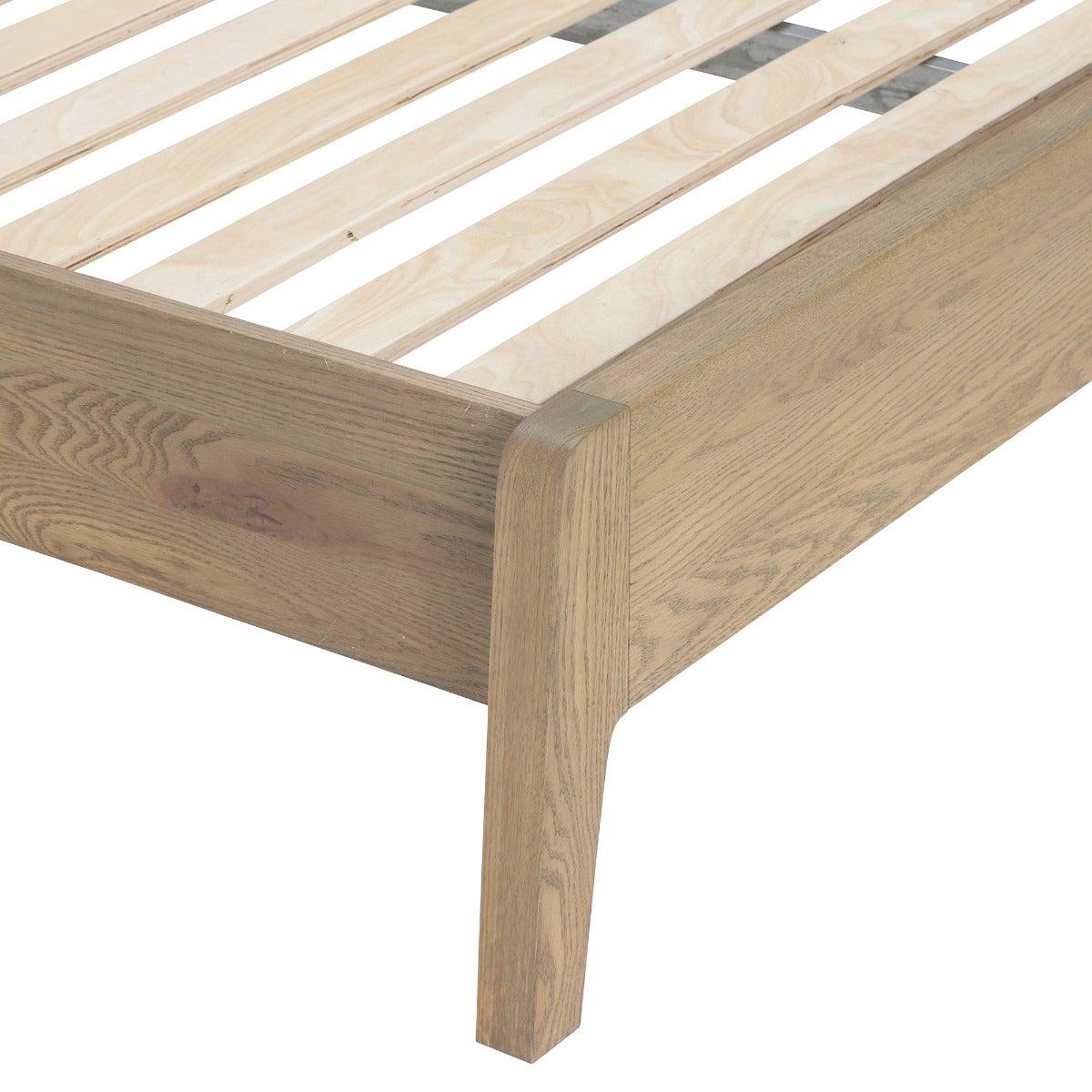 Design. Create a relaxing and peaceful atmosphere to your bedroom with the addition of the Runswick King Bed Frame. The slatted back and smoked oak wood gives it a rustic and airy feel, complete your on trend look with crisp white bedding and natural décor.