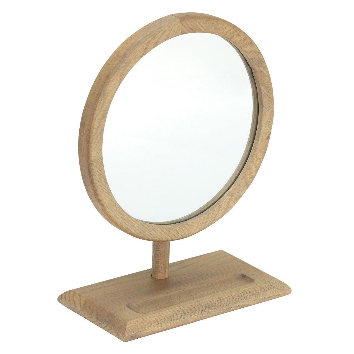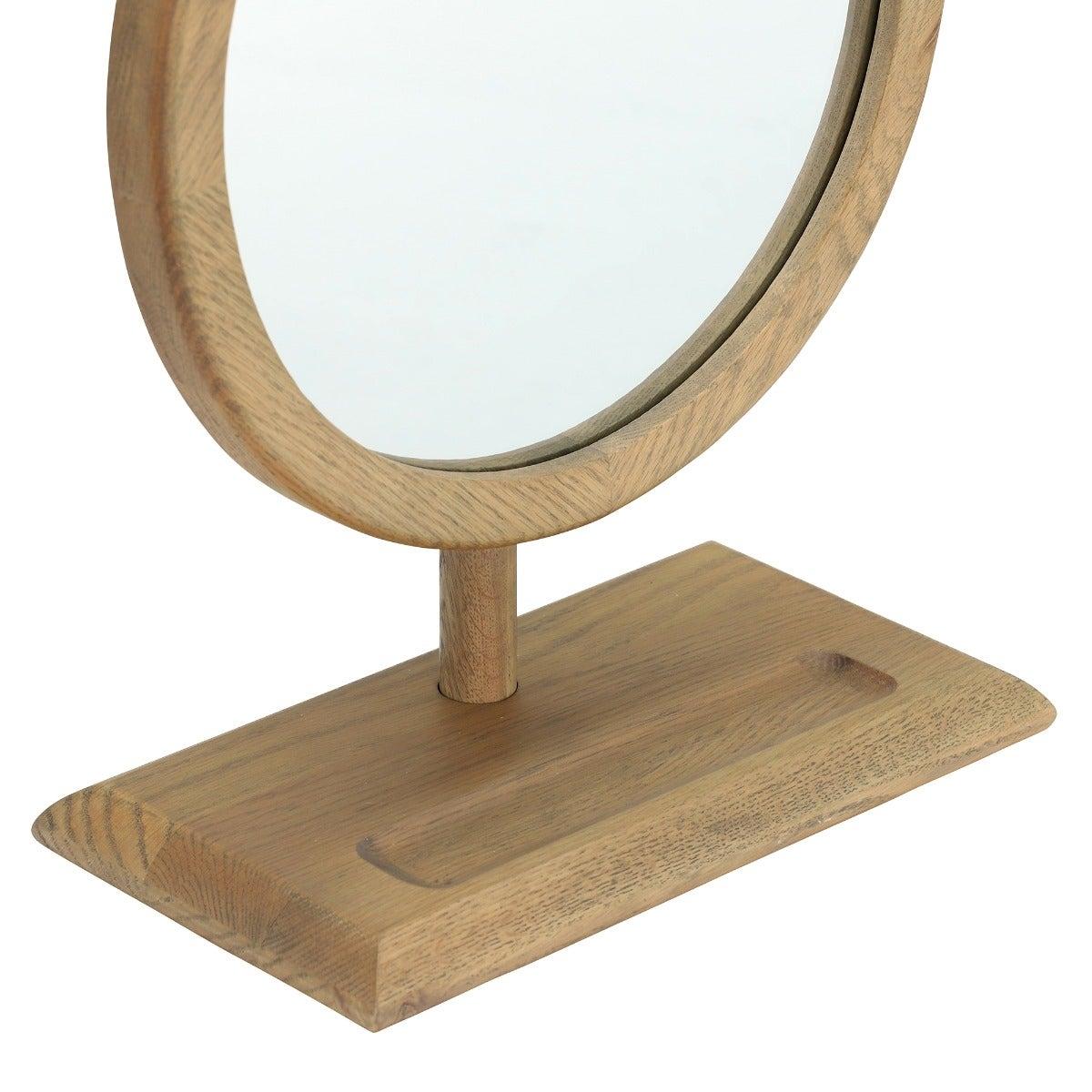 Design. The Runswick Oak Dressing Table Mirror is small in stature but big on beautiful design, featuring gorgeous grain work and an indented inlay which is perfect for keeping rings and small accessories in place. The perfectly round Runswick Oak Dressing Table Mirror can be paired with the Runswick Dressing Table for a cohesive look.