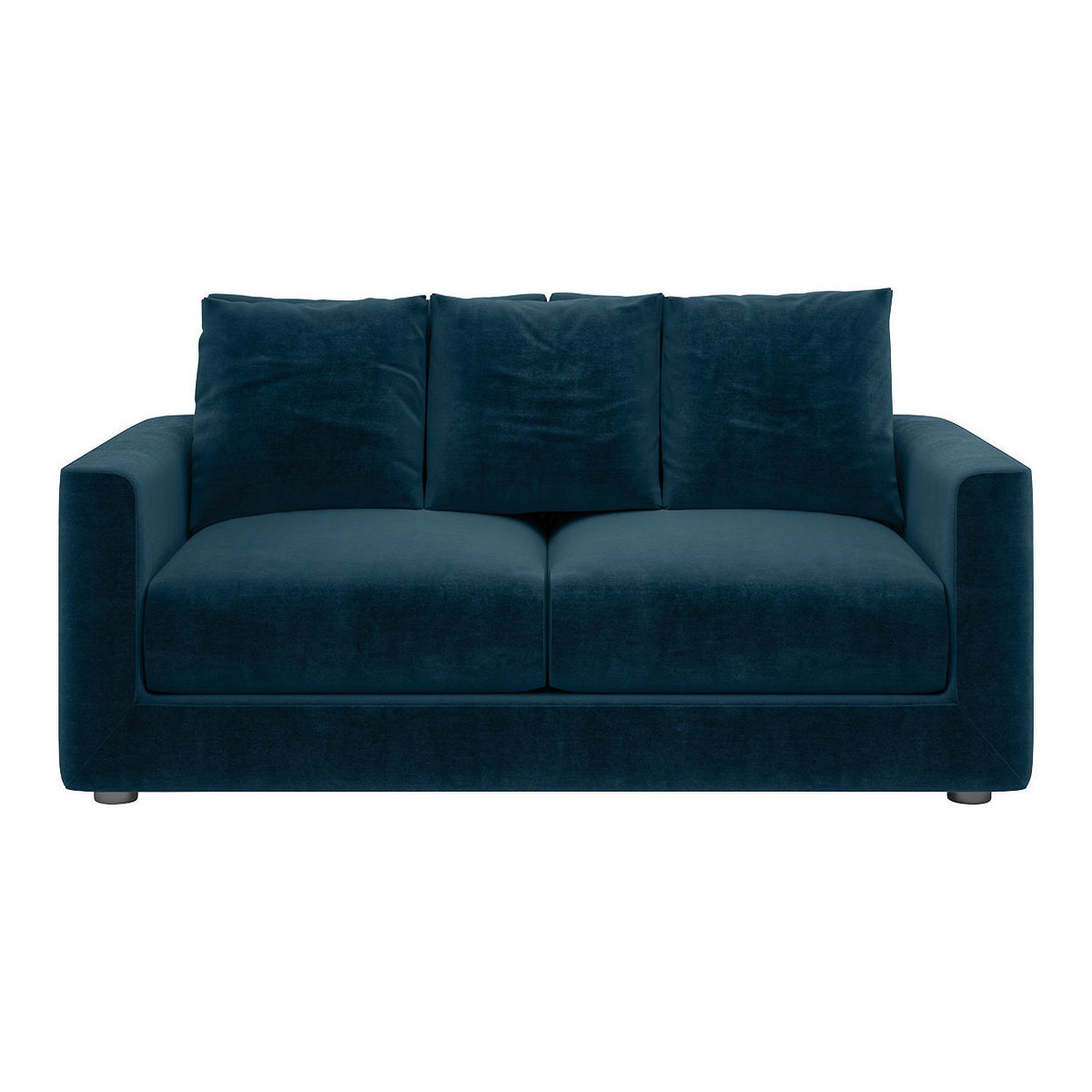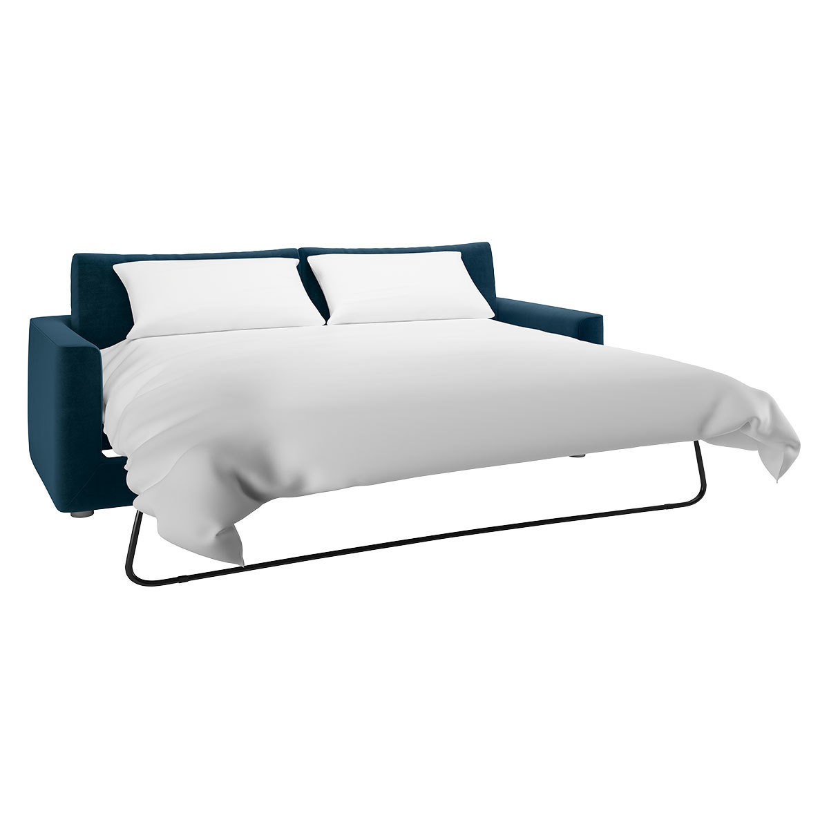 High quality, Italian made Rupert ink blue velvet 2 seater sofa bed features a 7cm foam mattress, equivalent to a double bed and is suitable for occasional use. Generous seat and back cushions are feather and fibre filled to make the sofa ultra comfortable. Part of the Rupert modular sofa range, available in various fabric and leather options, sizes and colours. Getting a sofa into your home can sometimes be a bit of a squeeze. Read our Sofa Measuring Guide to ensure your dream design is compatible with your space.