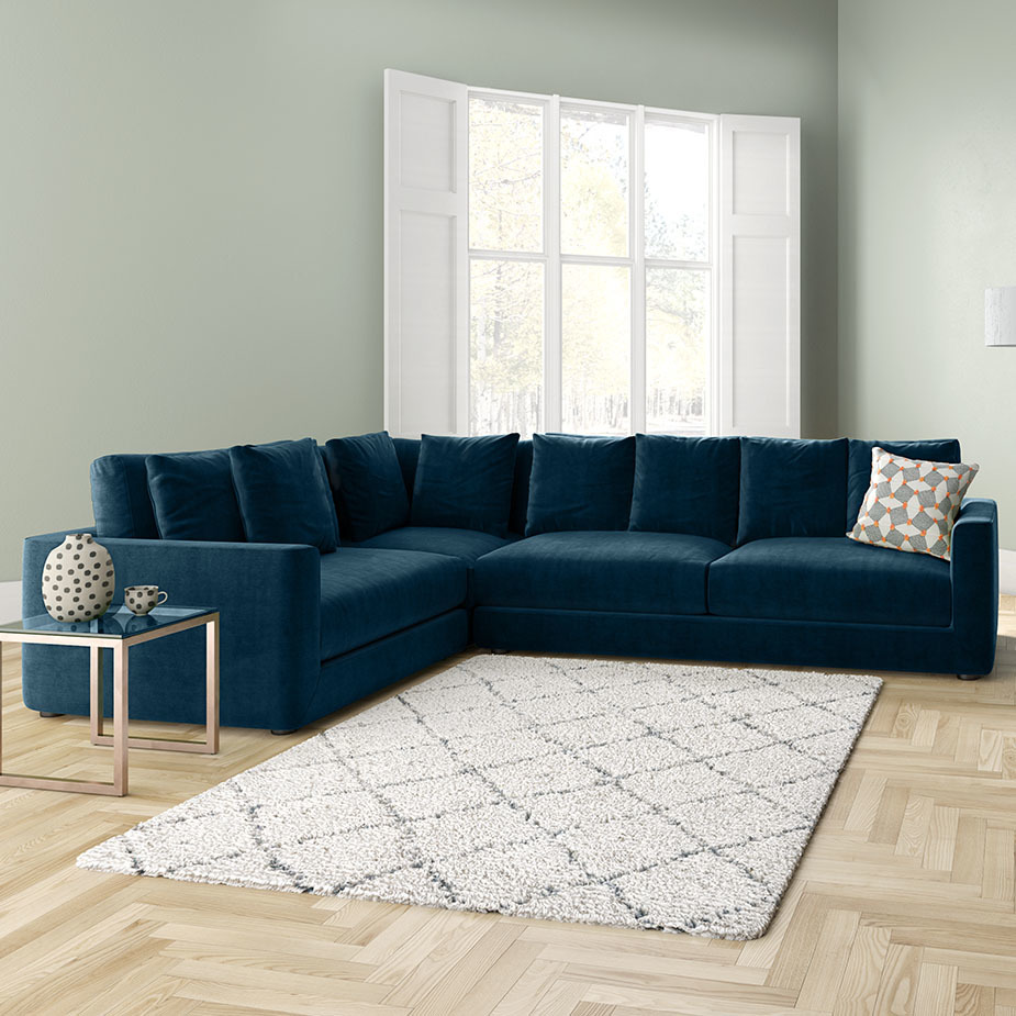 High quality, Italian made Rupert purple right arm corner sofa is upholstered in high quality, plush velvet. Generous seat and back cushions are feather and fibre filled to make the sofa ultra comfortable. Part of the Rupert modular sofa range, available in various fabric and leather options, sizes and colours. Getting a sofa into your home can sometimes be a bit of a squeeze. Read our Sofa Measuring Guide to ensure your dream design is compatible with your space.