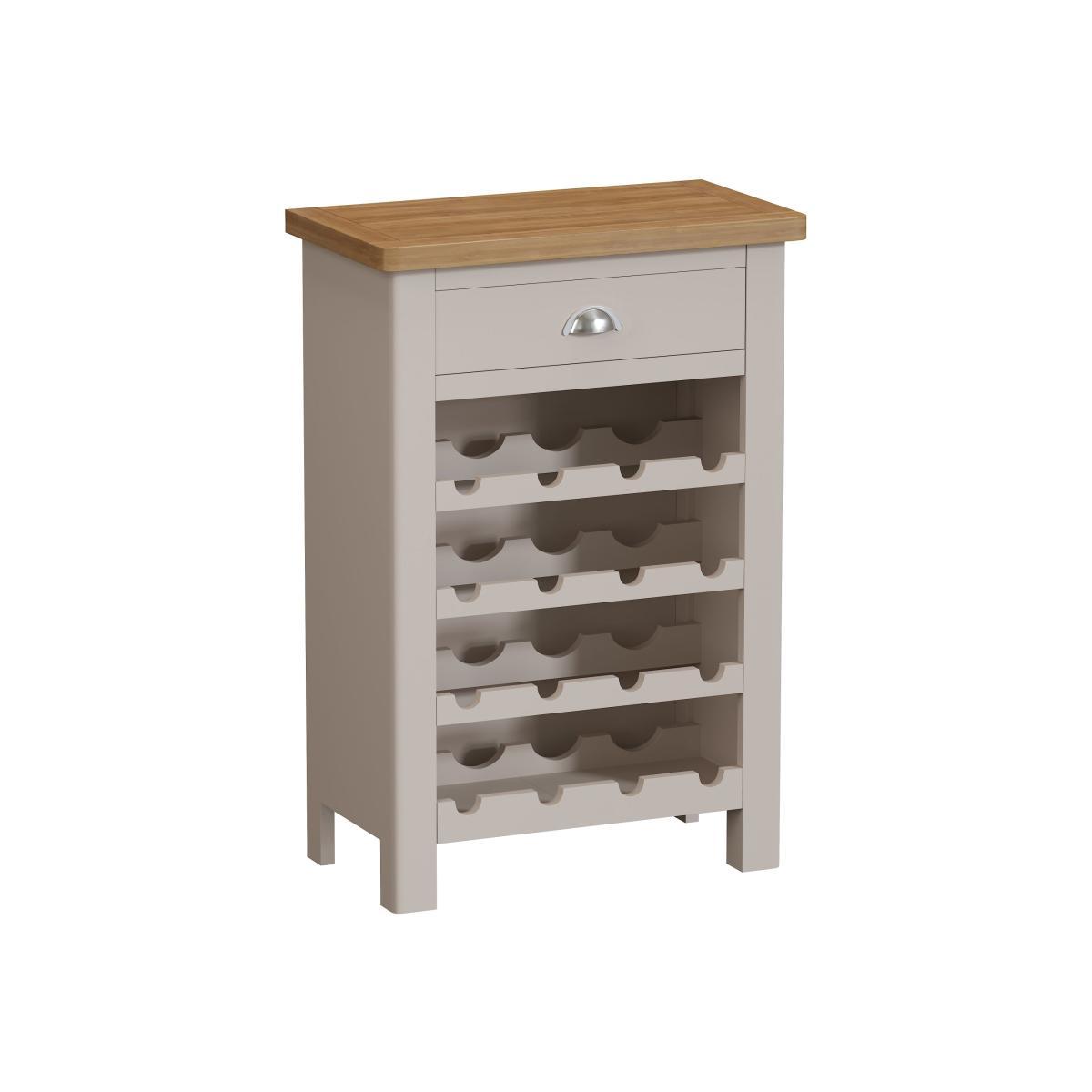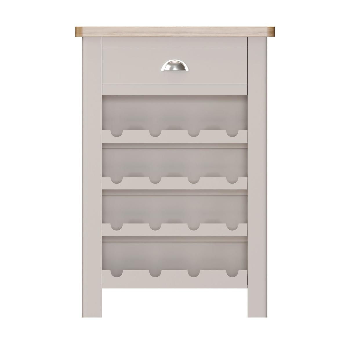 I love this piece because of its clean, versatile look and practical design. The dove grey finish makes it easy to incorporate into a variety of colour schemes, from modern minimalist to more rustic setups. Its compact size is perfect for smaller kitchens or wine storage areas, while the wine racks make it ideal for keeping bottles organised and accessible. Styling tips include pairing it with neutral-toned accessories and adding a few decorative items on top, such as a vase or small plant, to soften its utilitarian look. It works particularly well in country cottages or contemporary spaces where a touch of understated charm is desired. Plus, its practical features make it as functional as it is stylish, perfect for everyday use.