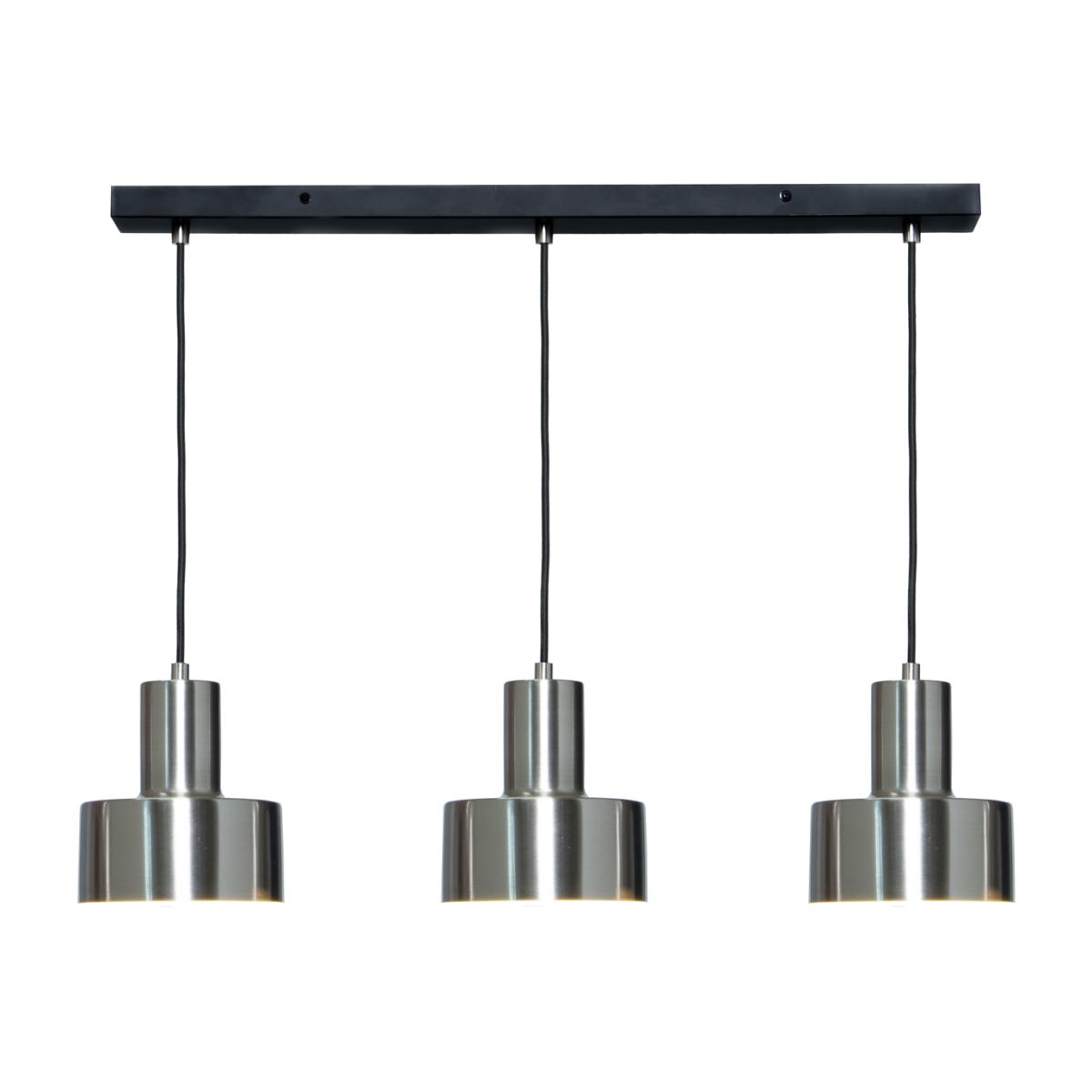 Bring a refined industrial feel to your kitchen or dining area with the Russ 3 Light Diner Pendant. Its black and nickel finish with sleek, linear silhouette adds an urban edge to the space, while the three downward-facing shades deliver targeted, sophisticated illumination. Perfect for lighting dining tables or islands, each pendant is height-adjustable to suit your ceilings.