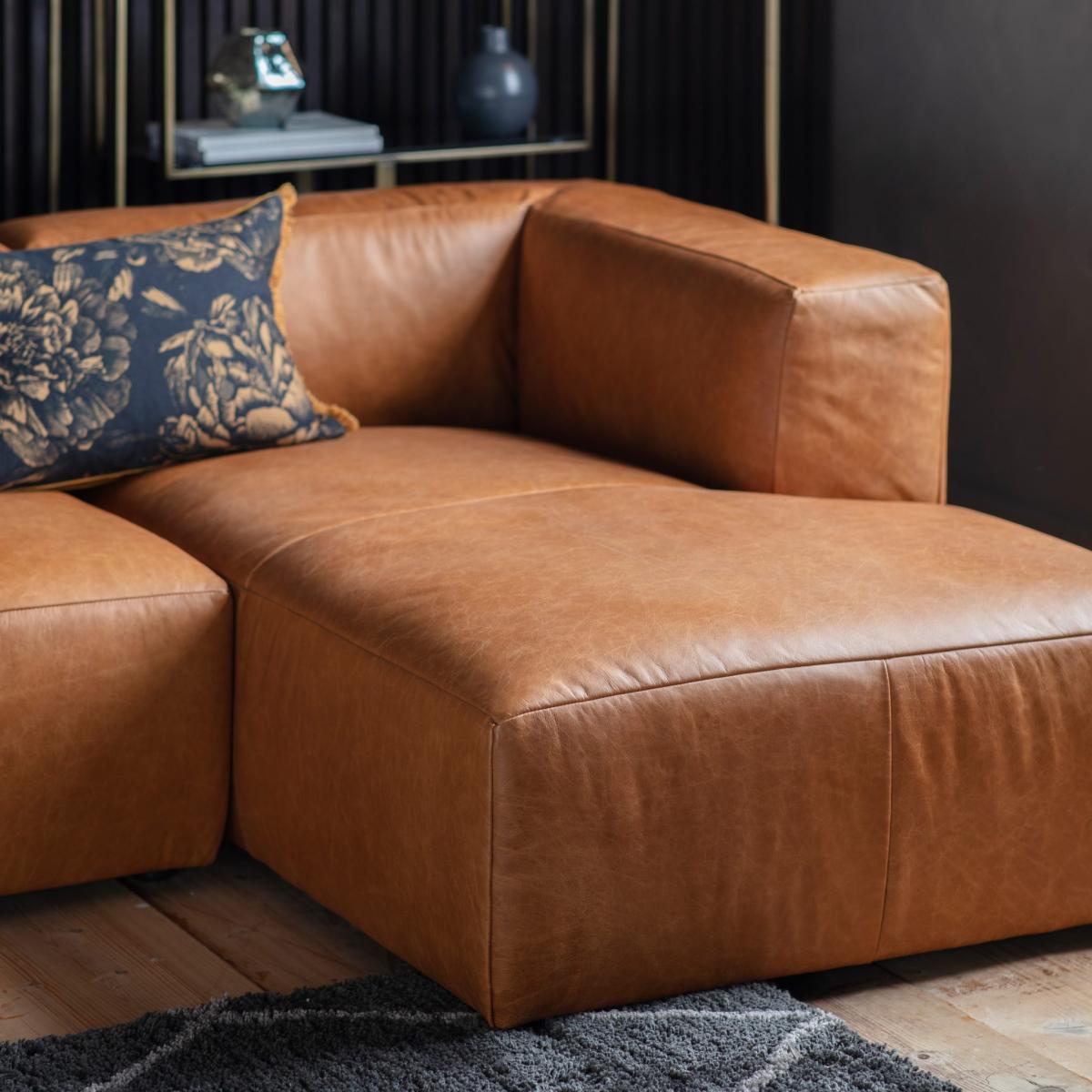 Russi Leather 4 Seater Corner Chaise Sofa - Brown
