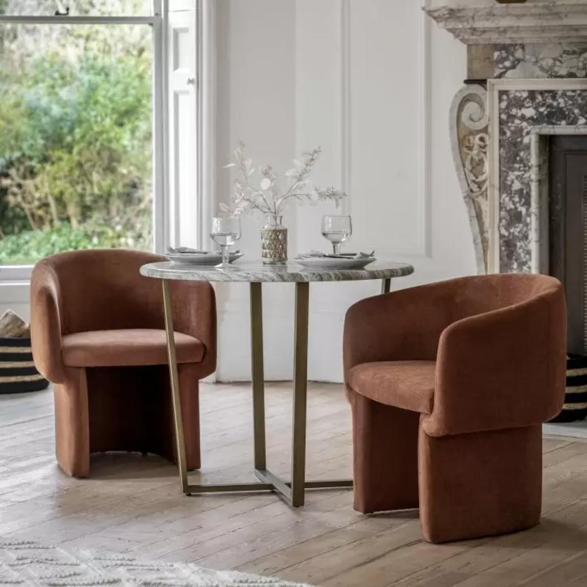 This stylish dining table will add a touch of sophisticated elegance to a room. The stunning top features the most amazing green-grey marble faux finish which is created with the latest state of the art technology to give the look and feel of the real thing but without the weight and technical difficulties. The faux marble pairs beautifully with the metal base which has a classy bronzed brass finish, to give an understated luxury style, perfect for any classic modern interior. Matching items also available. Material:Glass Fibre Reinforced Concrete 50% / Steel 50%. Colour/Finish: Green Marble.
