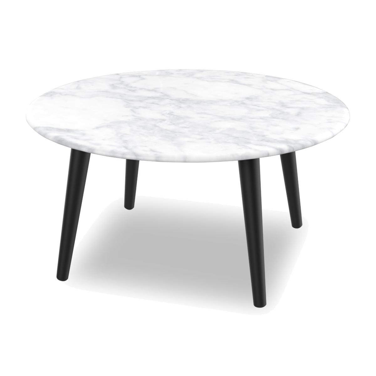 Bring timeless elegance to a modern living space with the Russo marble coffee table. A stylish arrangement of natural marble and dark wood, it’s a talking point as well as a focal point. Why you'll love it Timeless, elegant and versatile. This beautiful round coffee table has a solid marble top. Gorgeous white marble with natural veining and patterning. As every piece of marble is unique, every Russo round coffee table is one of a kind. Smooth tapered wood legs in a contrasting dark tone. A statement piece that’s the perfect size for a modern living room. This round coffee table is part of the Russo range. What you need to know Simple self-assembly required. Marble top. Rubber wood legs. Marble is hardwearing but not indestructible, so it’s important to care for it properly. Spillages need to be removed immediately. To clean, wipe gently with a damp cloth using warm water, then buff dry. We recommend that you use coasters and placemats to protect against heat and moisture. Do not use knives to cut food on a marble table top, use as a work top, place heavy weights on the table or use acidic or abrasive cleaners. You should never sit or stand on a marble surface. For more advice on caring for your marble furniture, see our Dining care guide.