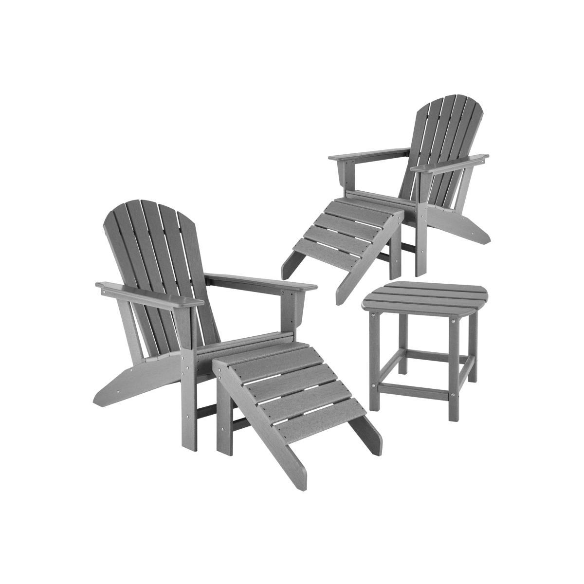 Take a seat, put your feet up and let your mind wander - this five-part garden furniture set consisting of 2 chairs, 2 footstools and a table from tectake is perfect for enjoying a relaxed atmosphere from the comfort of your own outdoor space. All individual elements are kept in the classic Adirondack style and create a coherent overall picture. The ergonomic design of the chairs and the footrests enable both healthy and comfortable sitting. The set made of durable plastic polyethylene materials is extremely stable, very easy to care for, and can be used outside all year round. The table's size provides the perfect spot to place drinks, books, and Square accessories, or even to enable you to enjoy a relaxed outdoor dining experience. Make use of the outdoor space in your home with this five-piece garden furniture set from tectake.