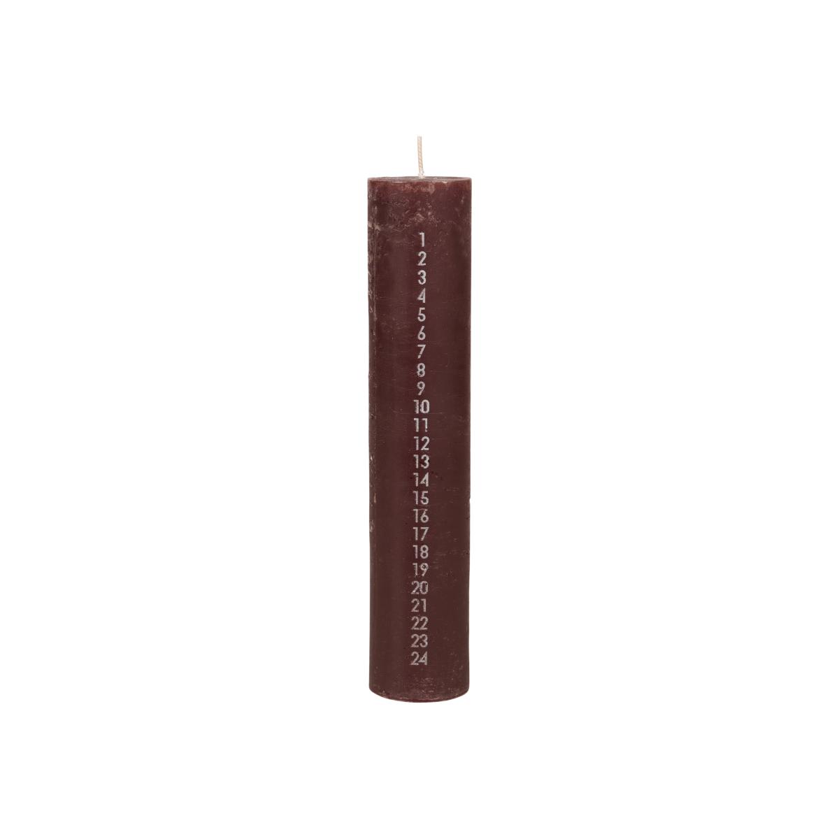 Rustic calendar candle from Broste Copenhagen is a beautiful large candle decorated with the numbers 1–24 on it. The candle helps you keep track of how many days it is until Christmas Eve. Light it on the first of December and then let it burn a little every day. When the candle has burned down, it is Christmas.