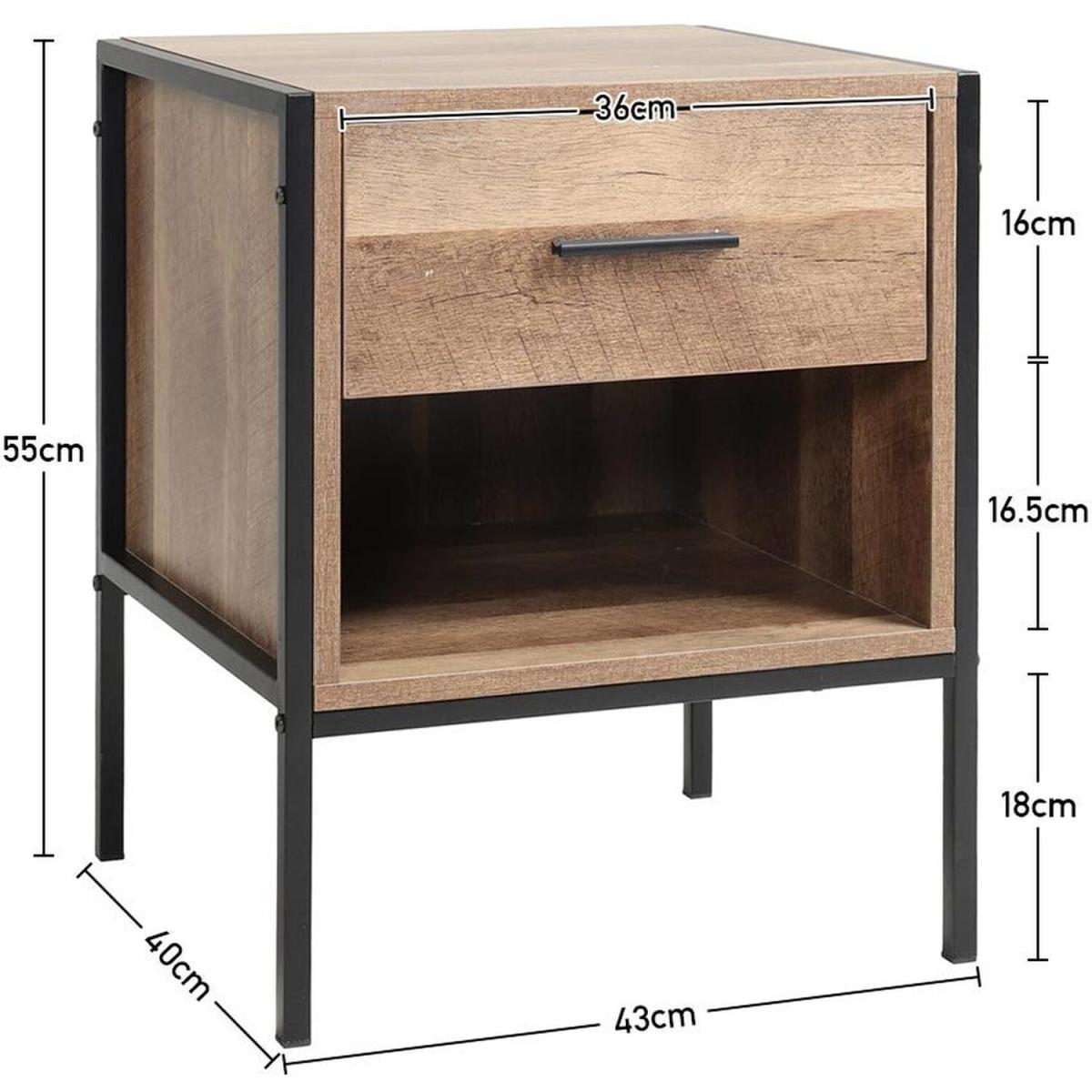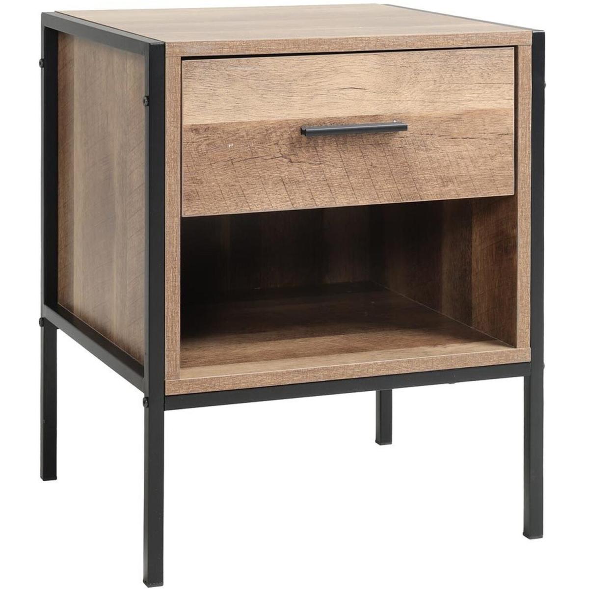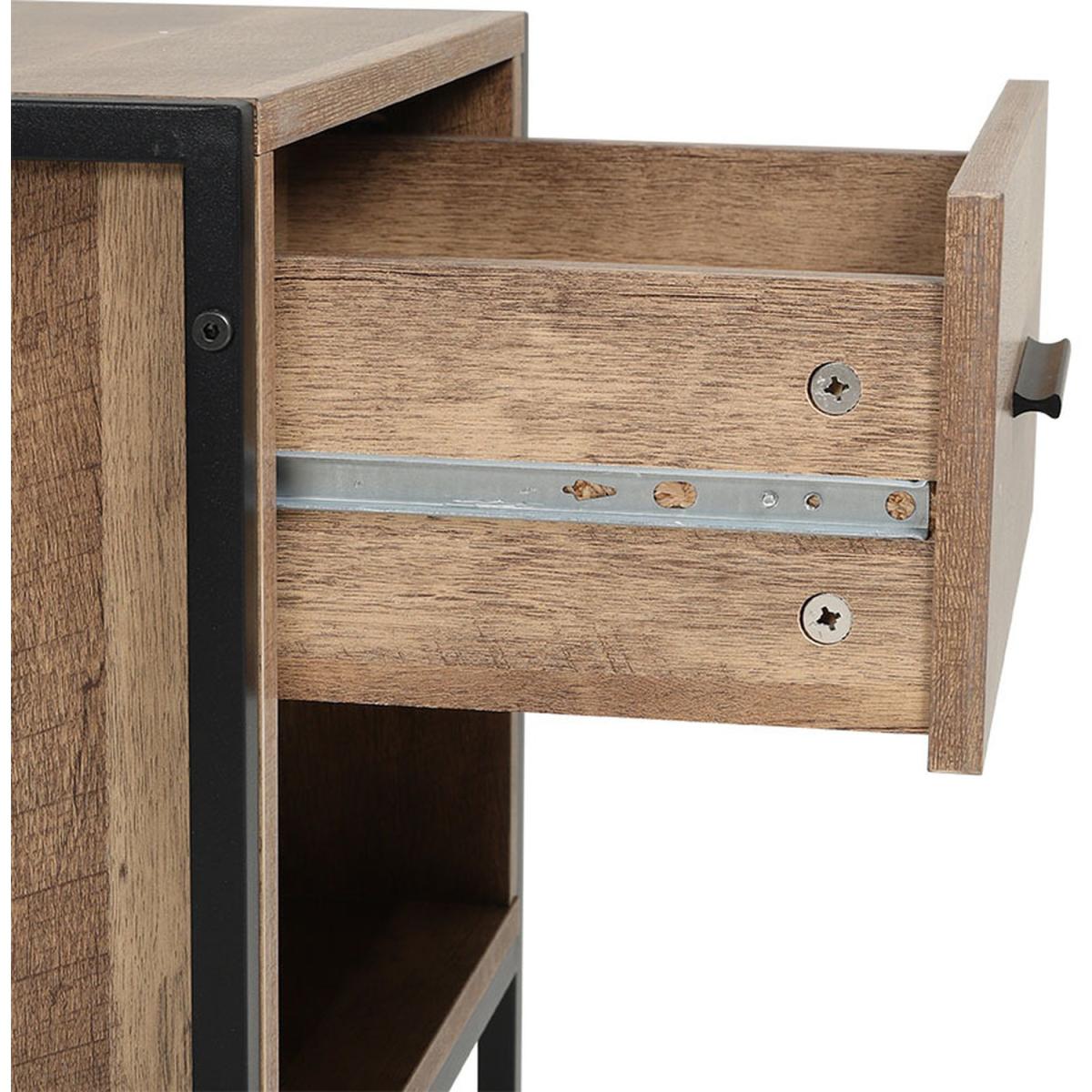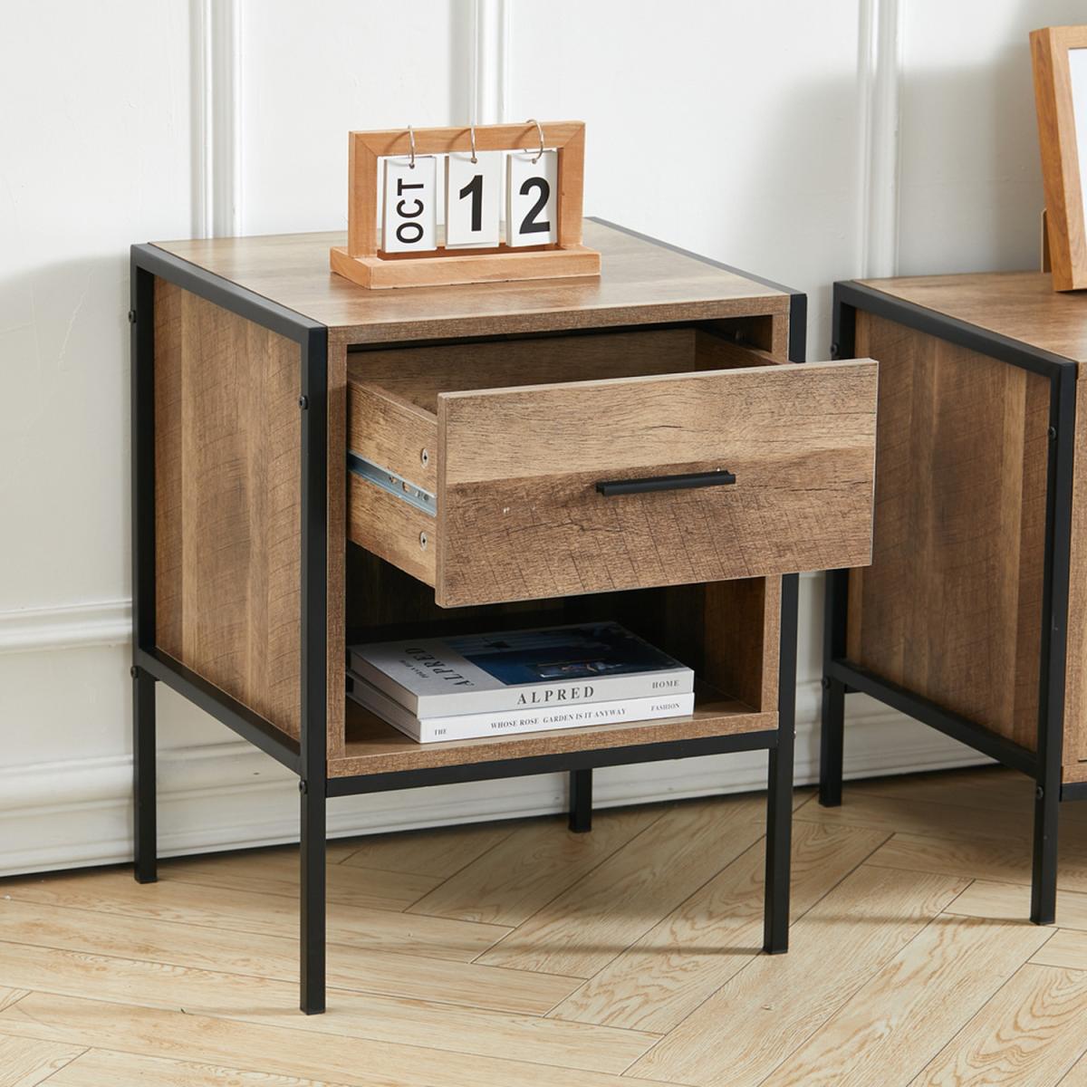 Constructed of premium particleboard and metal frame, the surface is well polished and easy to maintain while the bottom metal frame provides enough stability and load capacity. It features 1 drawer and 1 shelf, which provide ample space for keeping your magazines, books, and other small items within reach. Not only a nightstand but also could be used as a storage sideboard. An ideal addition to any recreation area, living room or bedroom clean lines and brown texture table top lend retro intrigue to this nightstand. Update your home decor with this sophisticated retro nightstand.
