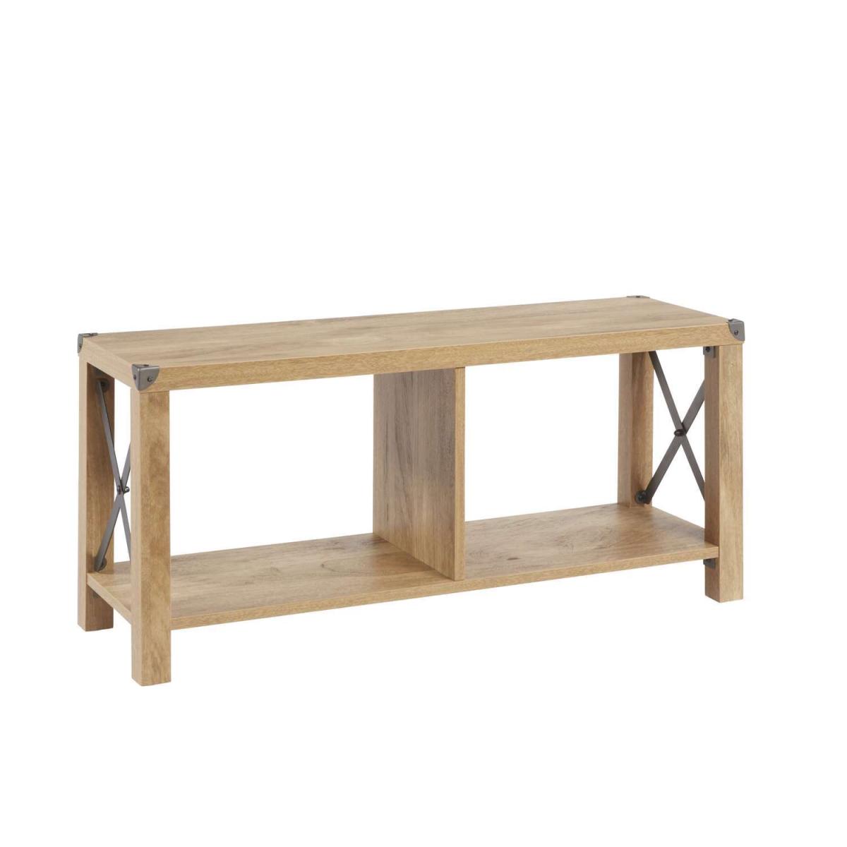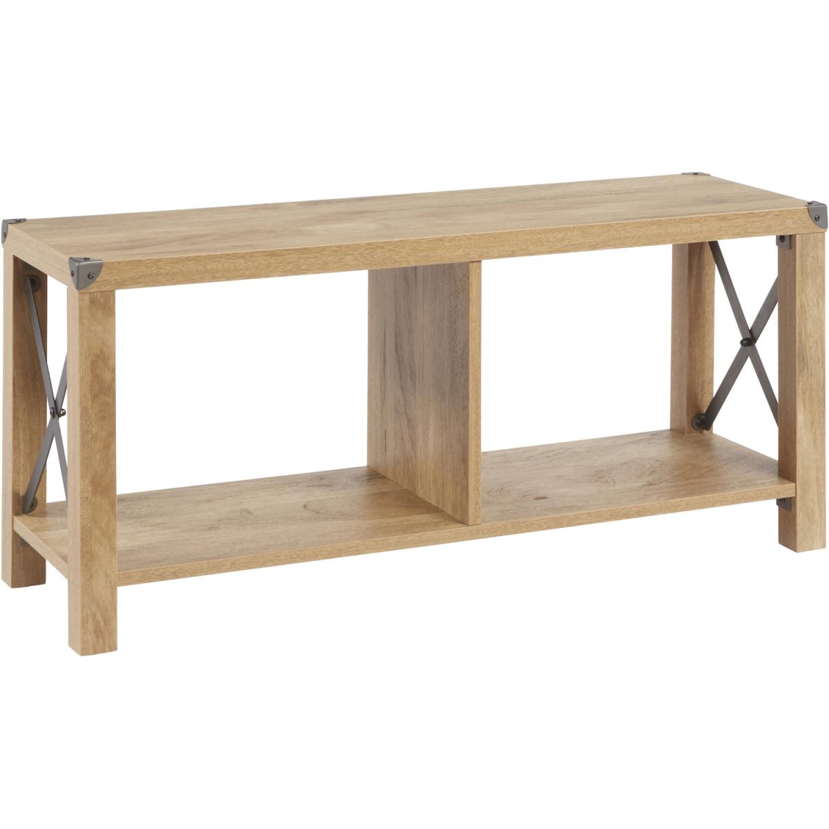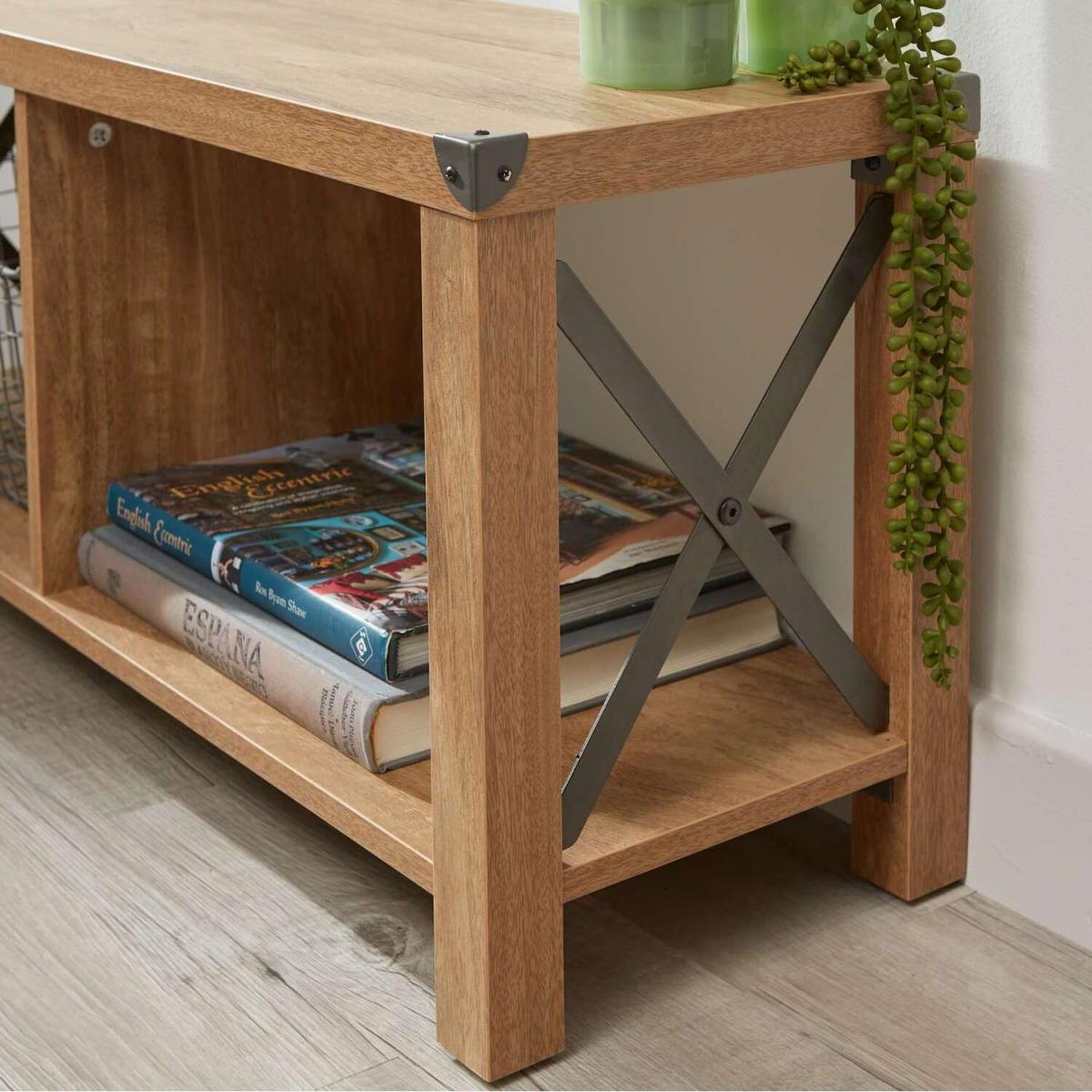 Rustic Bench Table Storage Unit with Metal Feature in Wood-Effect - Brown