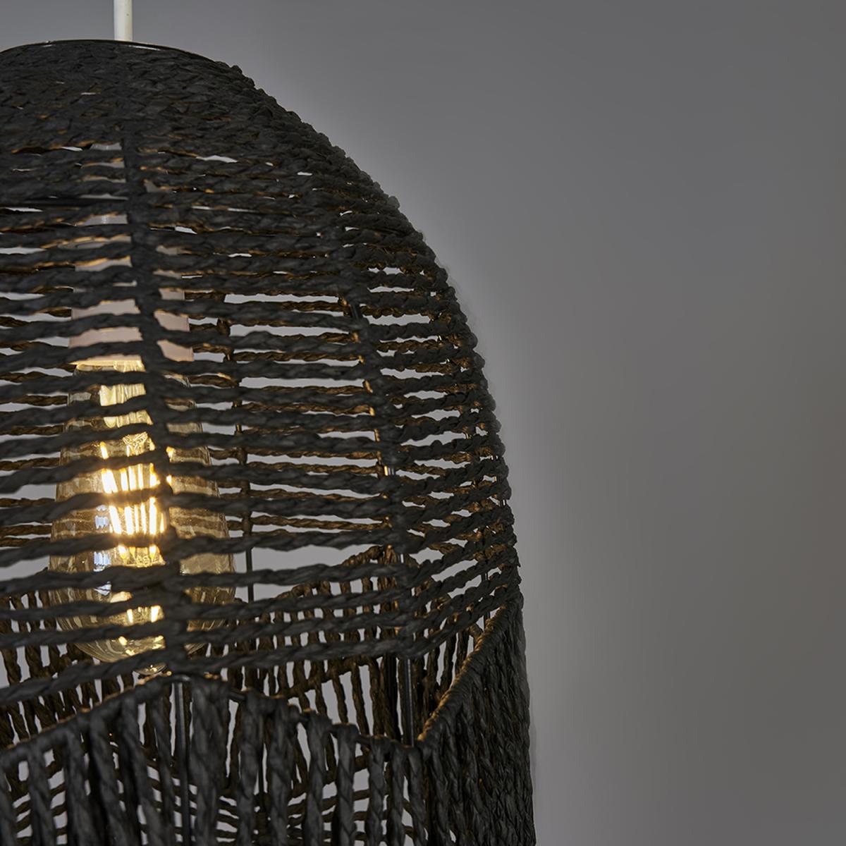 Rustic woven rope bird cage ceiling pendant light shade in a black rattan finish. The woven design allows the light to escape between the rope creating a beautiful lighting effect. This contemporary shade is a quick and easy way to update any room in your home. It simply fixes to your existing ceiling light socket - no wiring required. Ideal for lounges, dining rooms, bedrooms and other living areas.