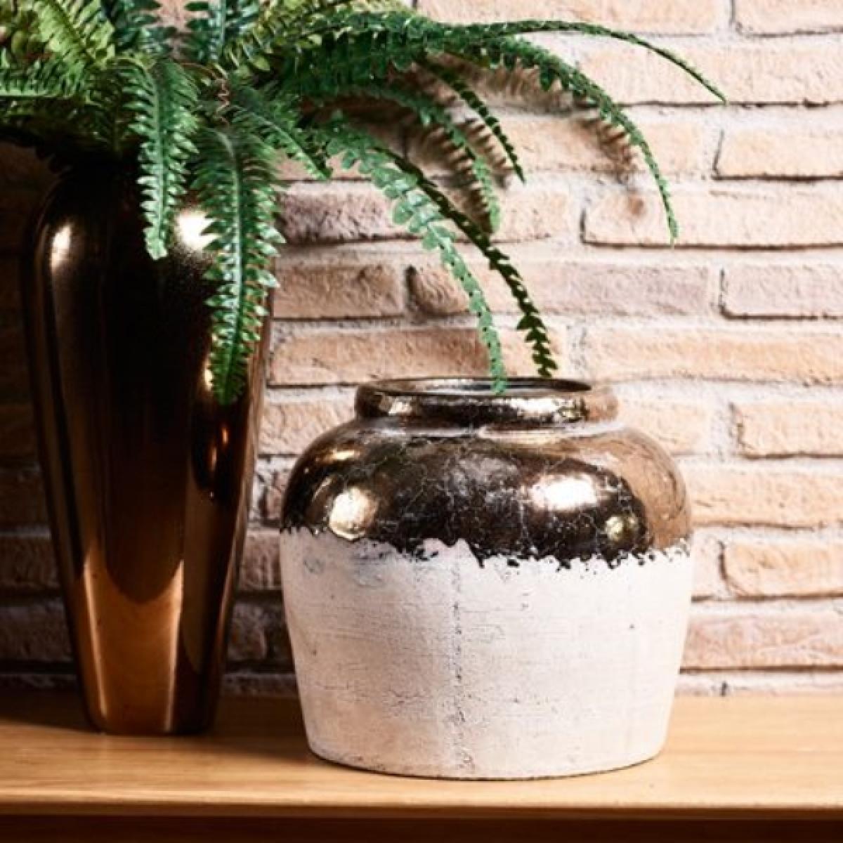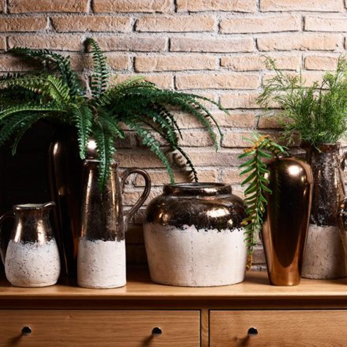 There are so many things that you could do with the Large Bronze Squat Vase. Use it to display a potted plant, fill it with potpourri for an alternative display. Or simply allow it to take centre stage as a stand alone feature and watch as the light bounces off of it. Take a look at the rest of the collection for a variety of different sized pitchers and vases. Height 28cm.