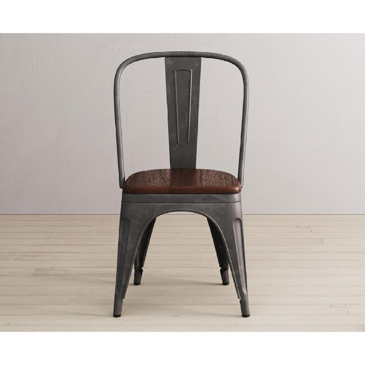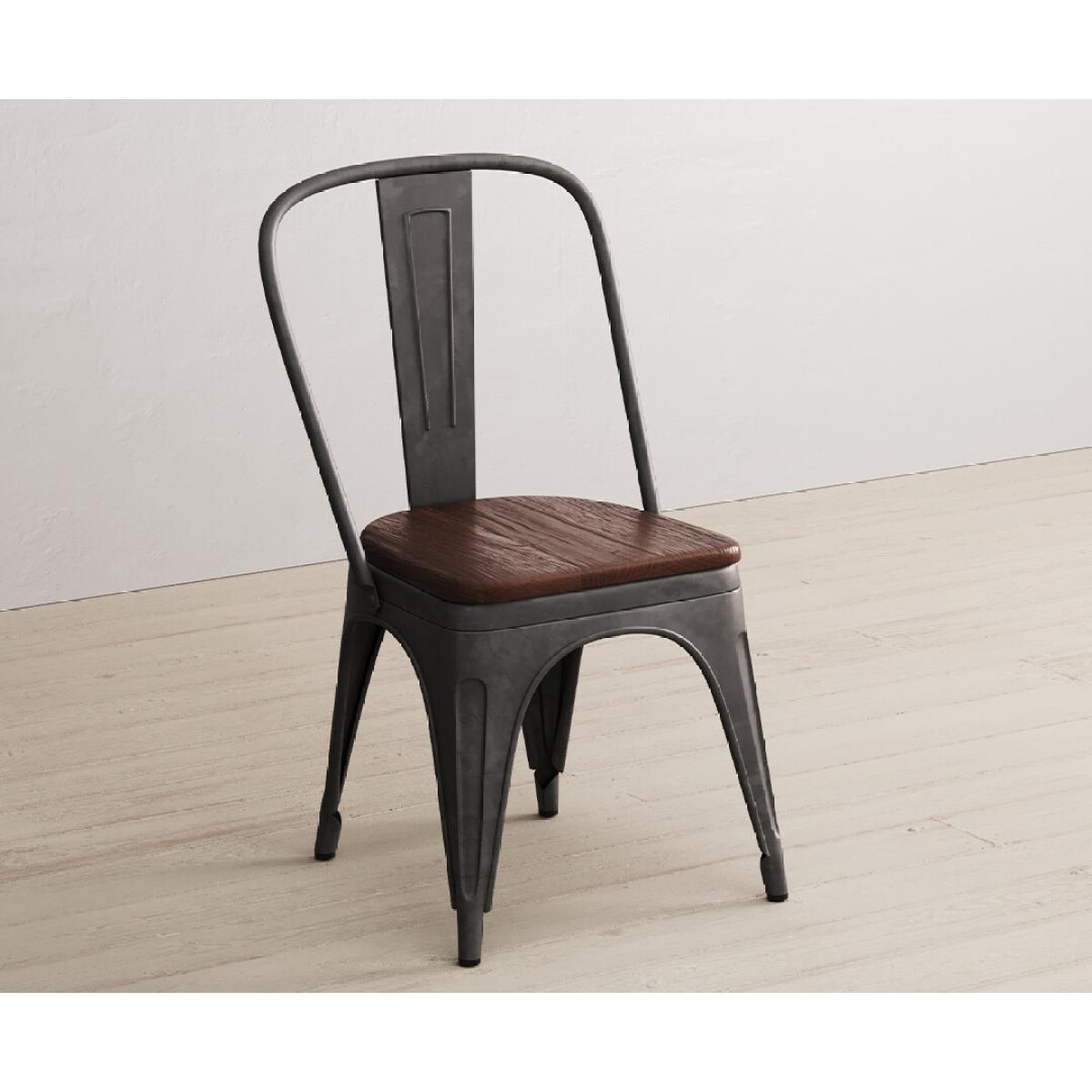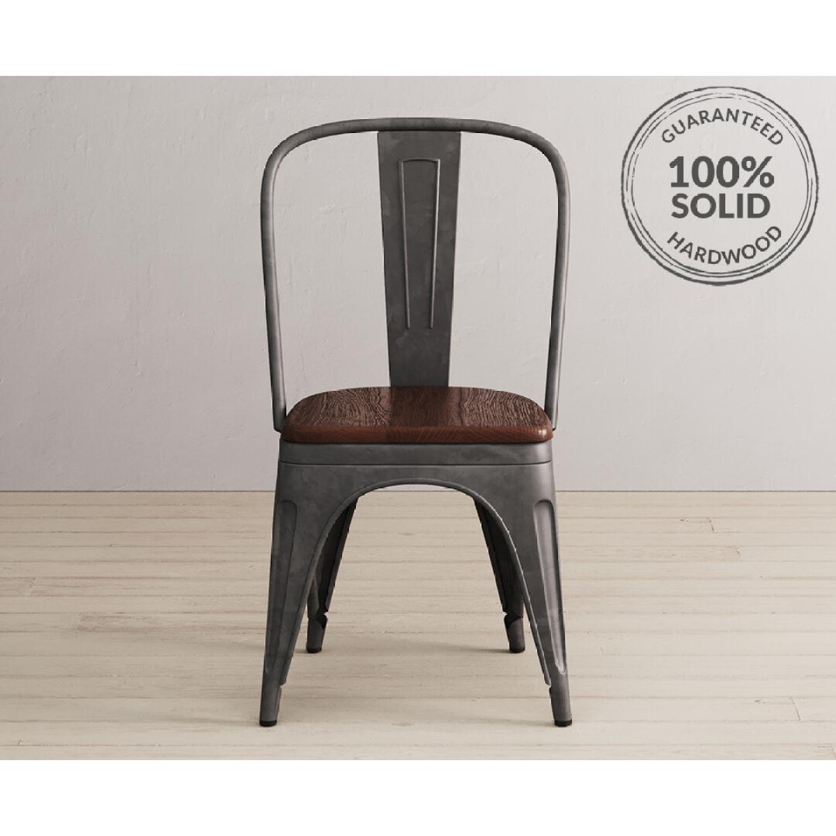 The Dakota Dark Acacia and Metal Dining Chairs feature sturdy and sleek metal frames with a cut out design and solid oak seats.