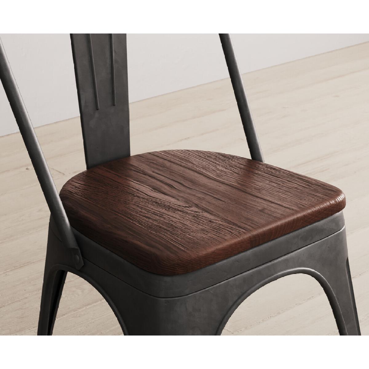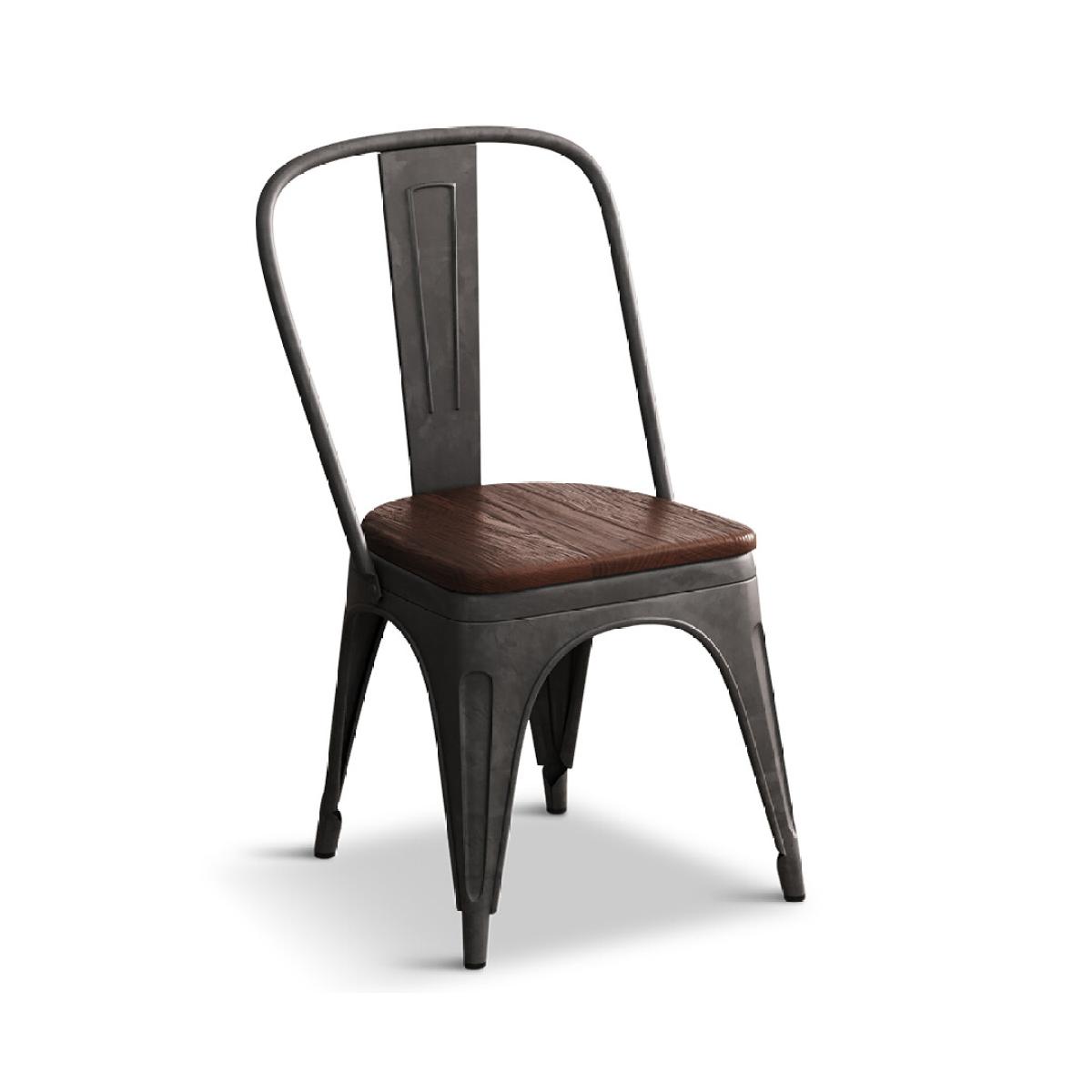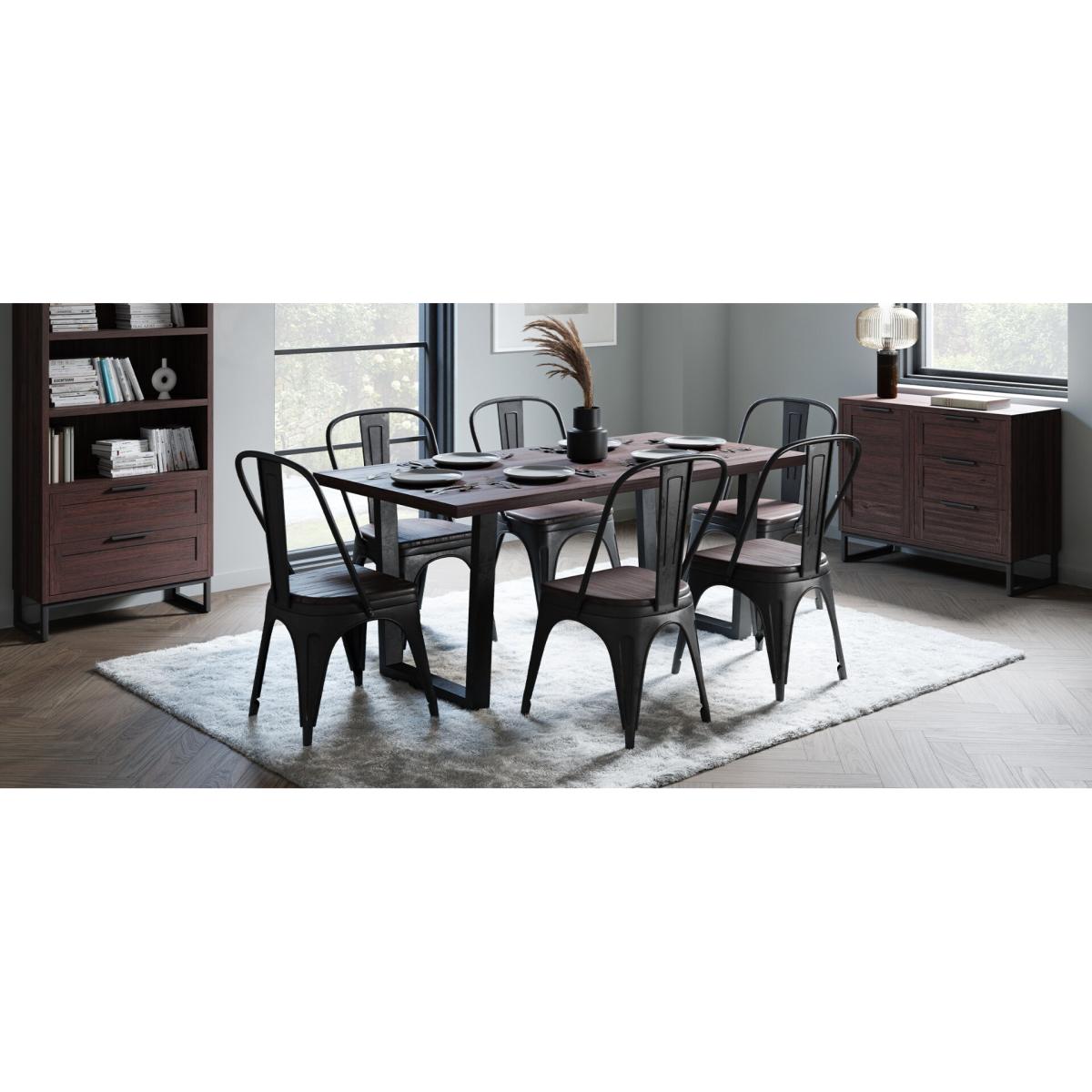 The Dakota Dark Acacia and Metal Dining Chairs feature sturdy and sleek metal frames with a cut out design and solid oak seats.