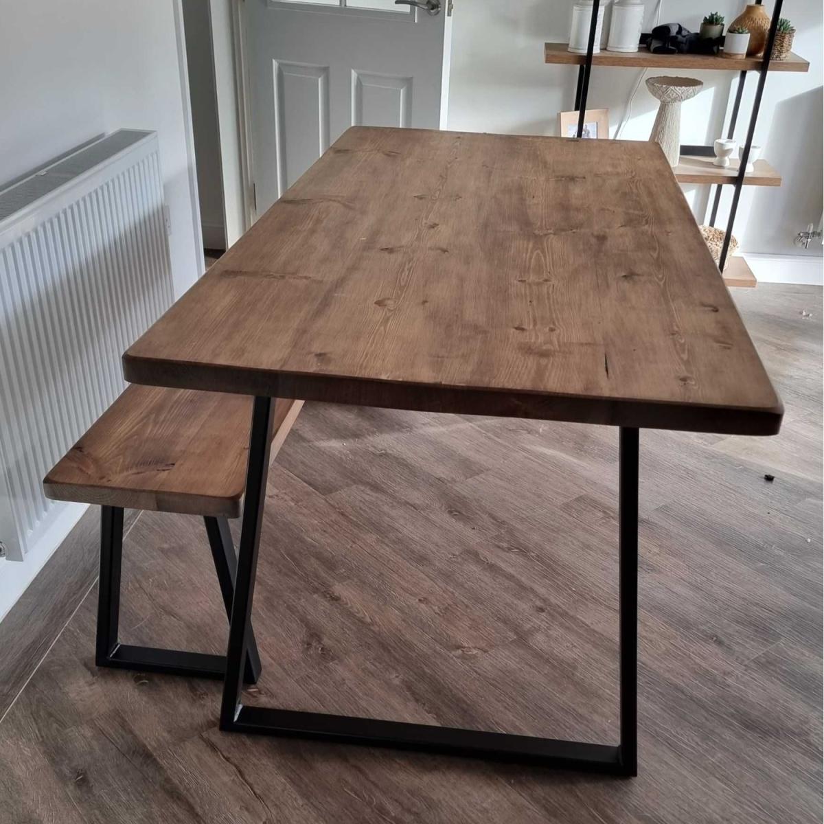Our beautifully handcrafted dining table with legs in raw steel. These tables come with a matching bench which is designed to fit neatly under the table when not in use thanks to its design and slightly shorter length.*Please note that grind marks will show where the legs have been welded. Our beautifully handcrafted dining table with legs in raw steel. These tables come with a matching bench which is designed to fit neatly under the table when not in use thanks to its design and slightly shorter length