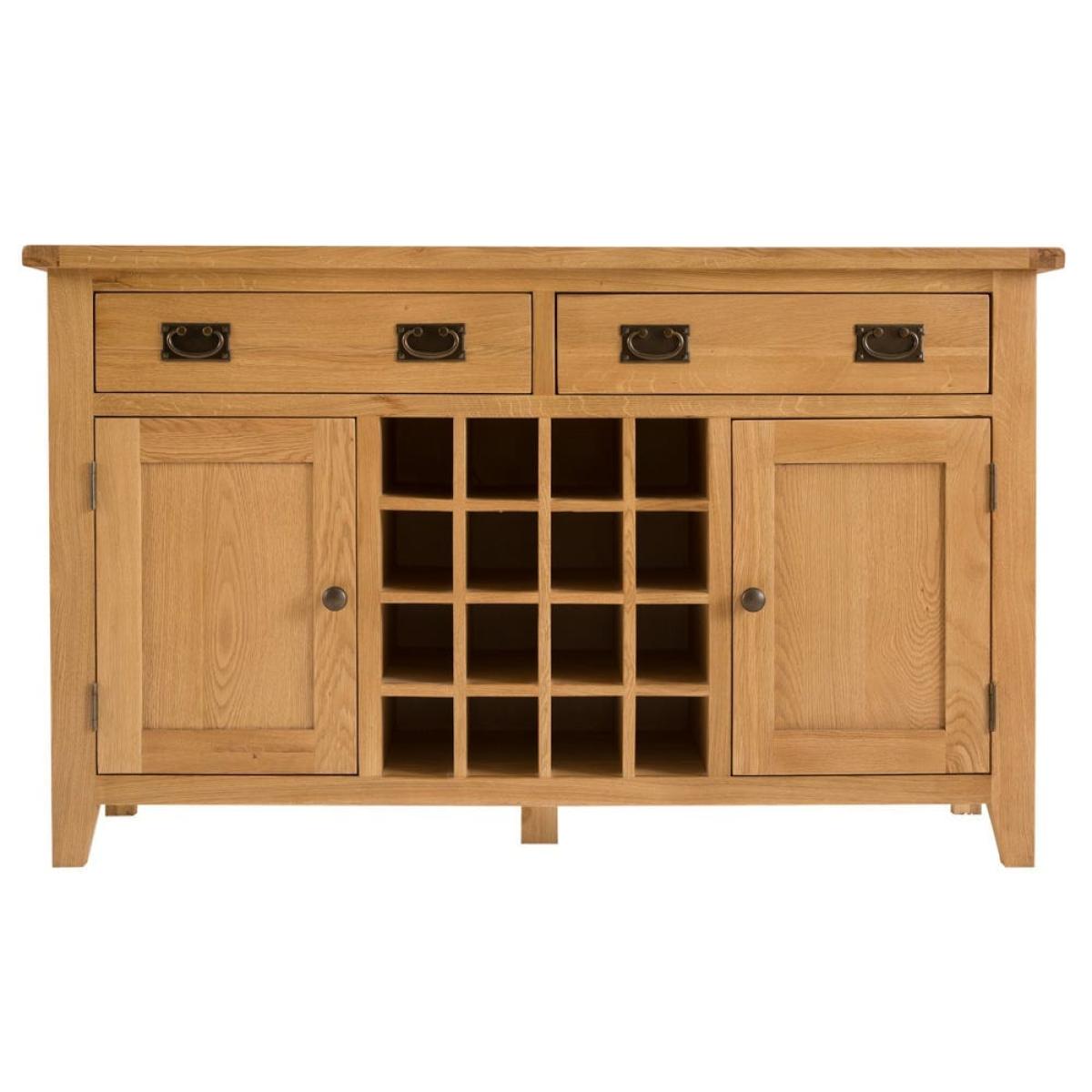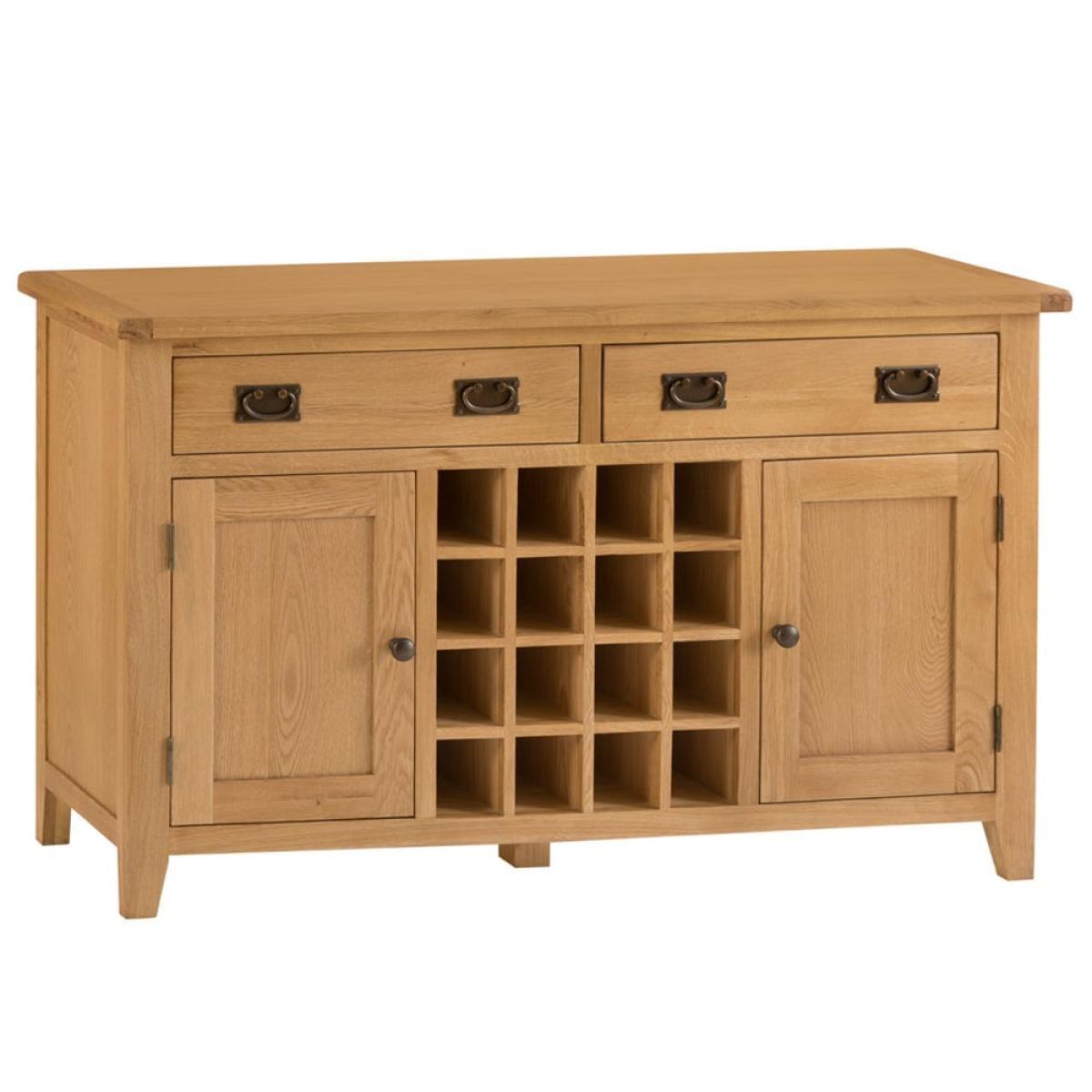 Rustic Oak 2 Door Large Sideboard With Wine Rack