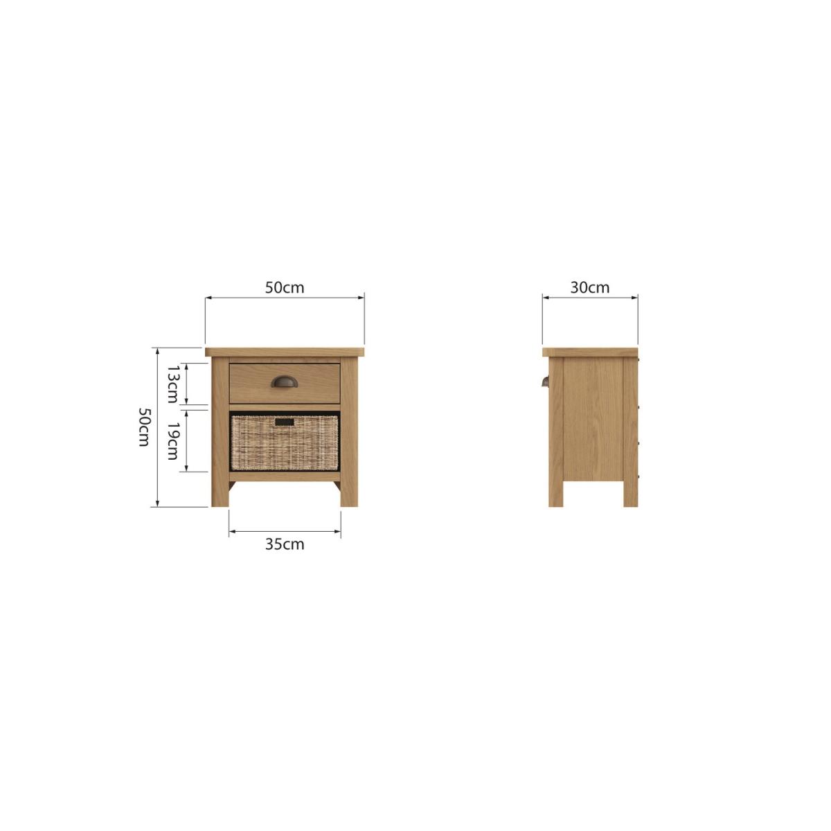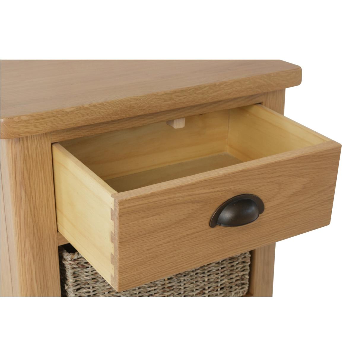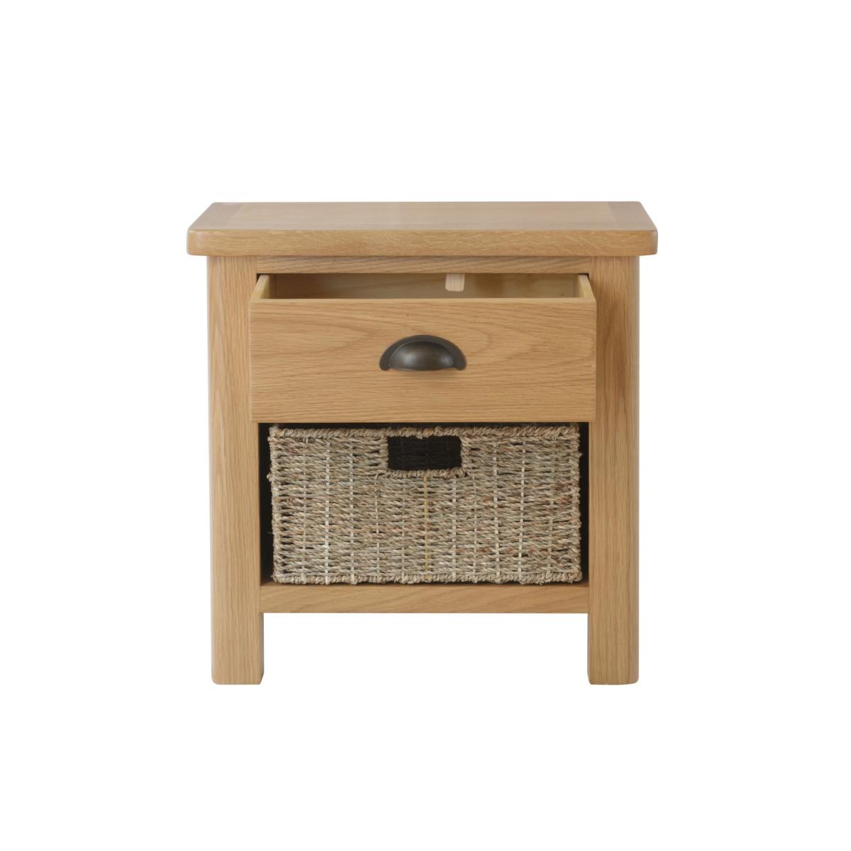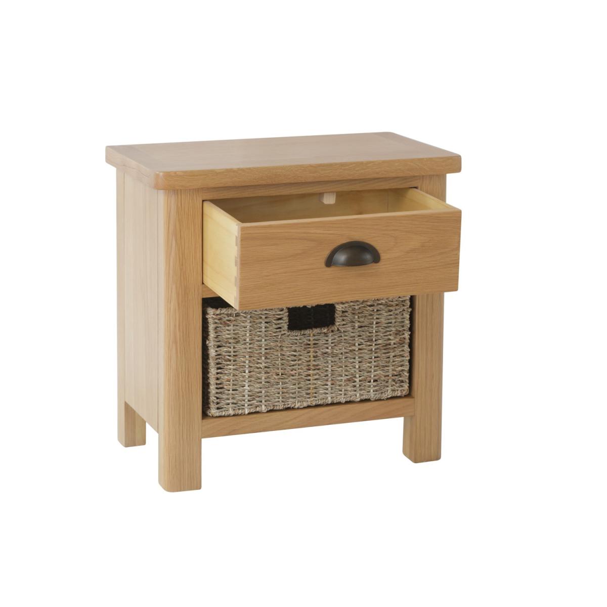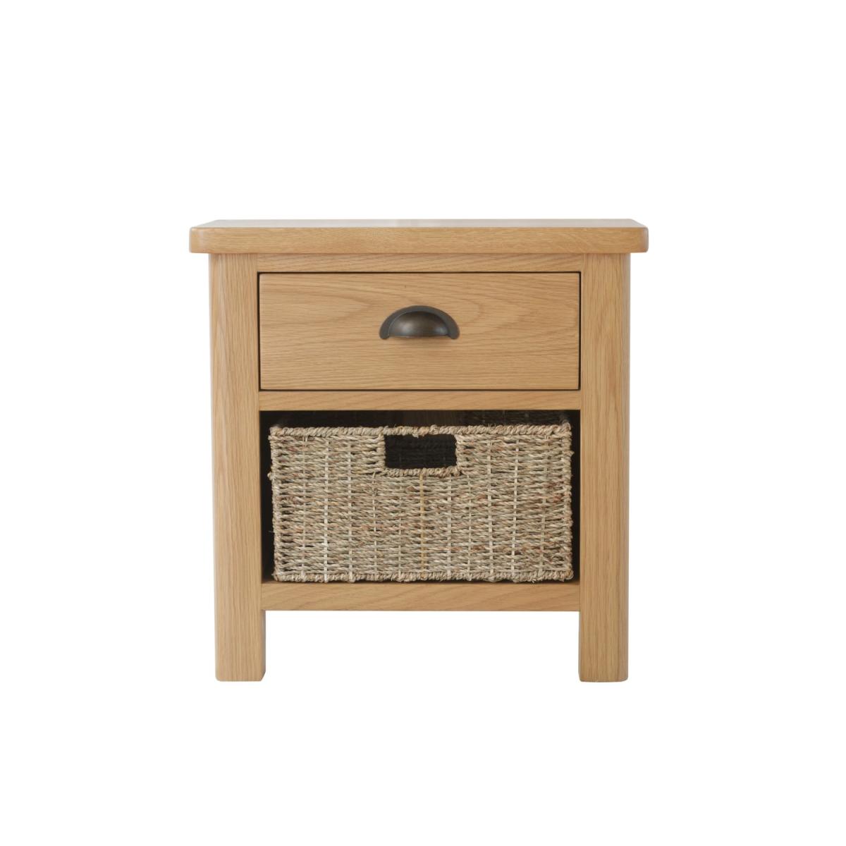 The Rustic Oak side table not only looks exceptional thanks to its great quality but provides plenty of storage space too. Store your items on the top, in the drawer or in the wicker basket below.