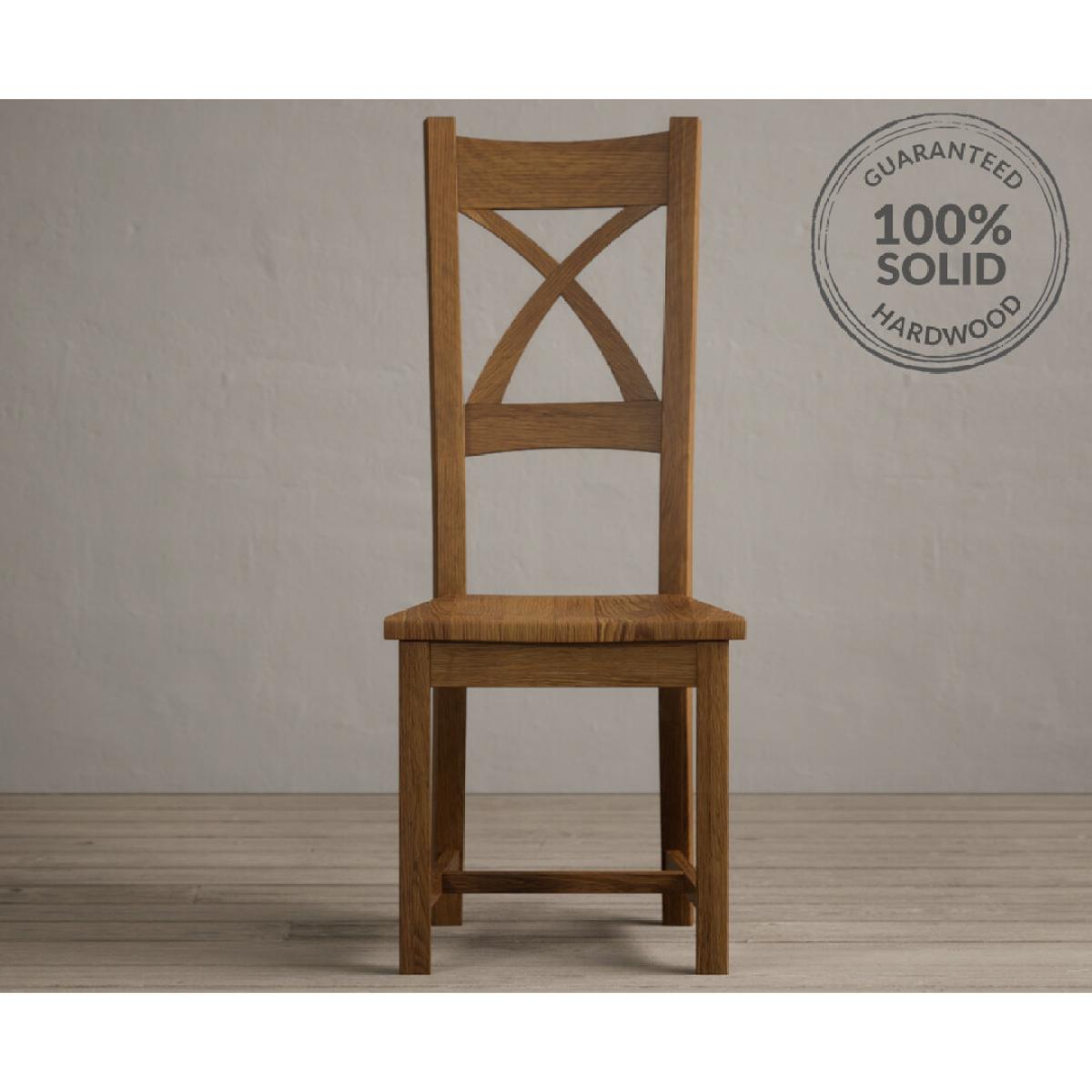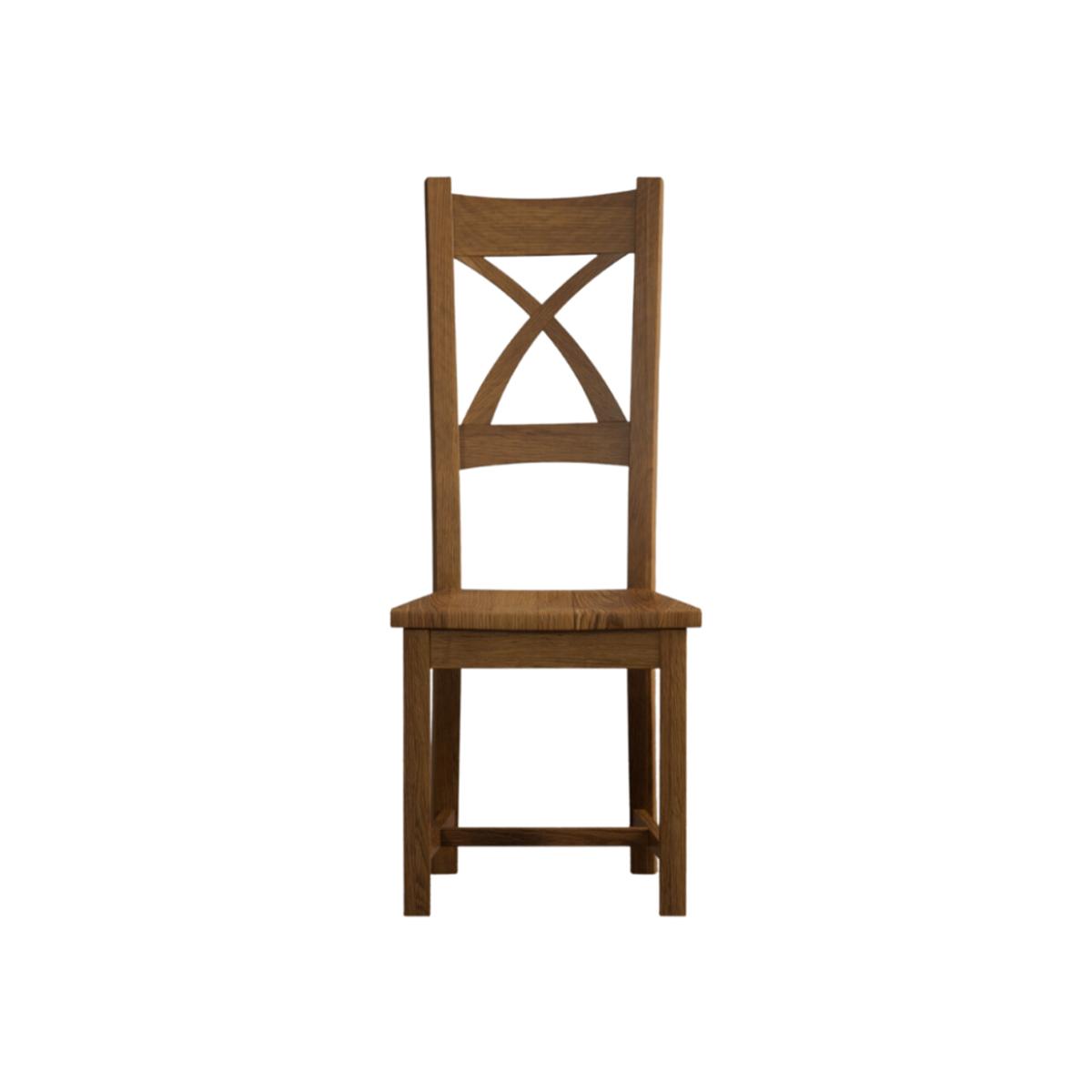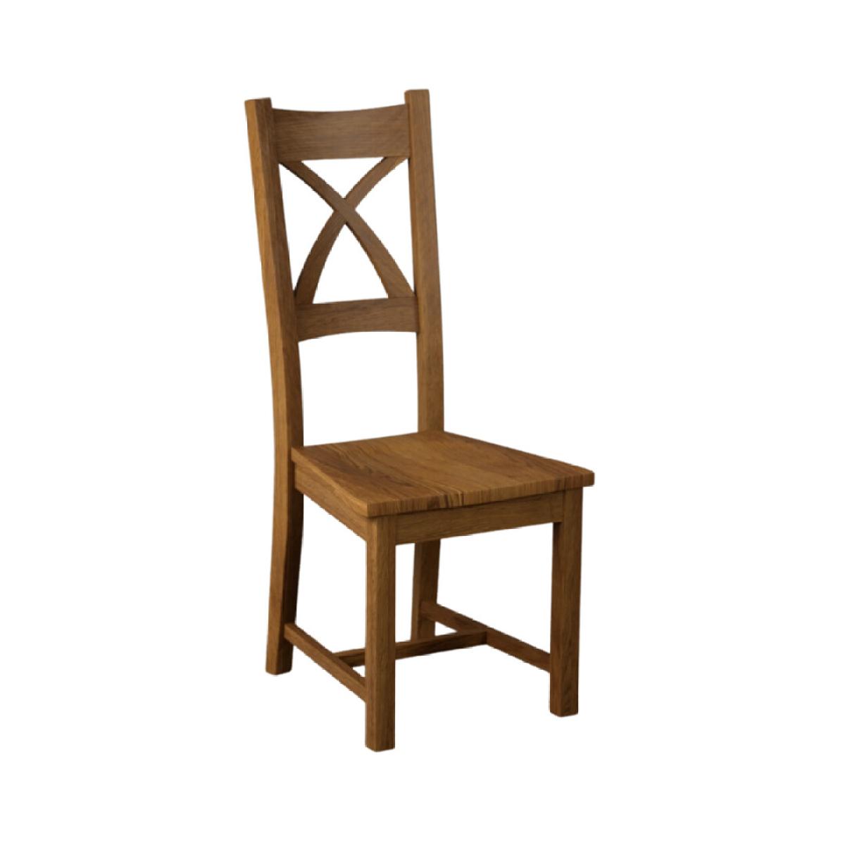 The Rustic Solid Oak X Back Dining Chairs with Rustic Oak Seat Pad are solid oak chairs with a rustic finish, complete with oak seat pads.