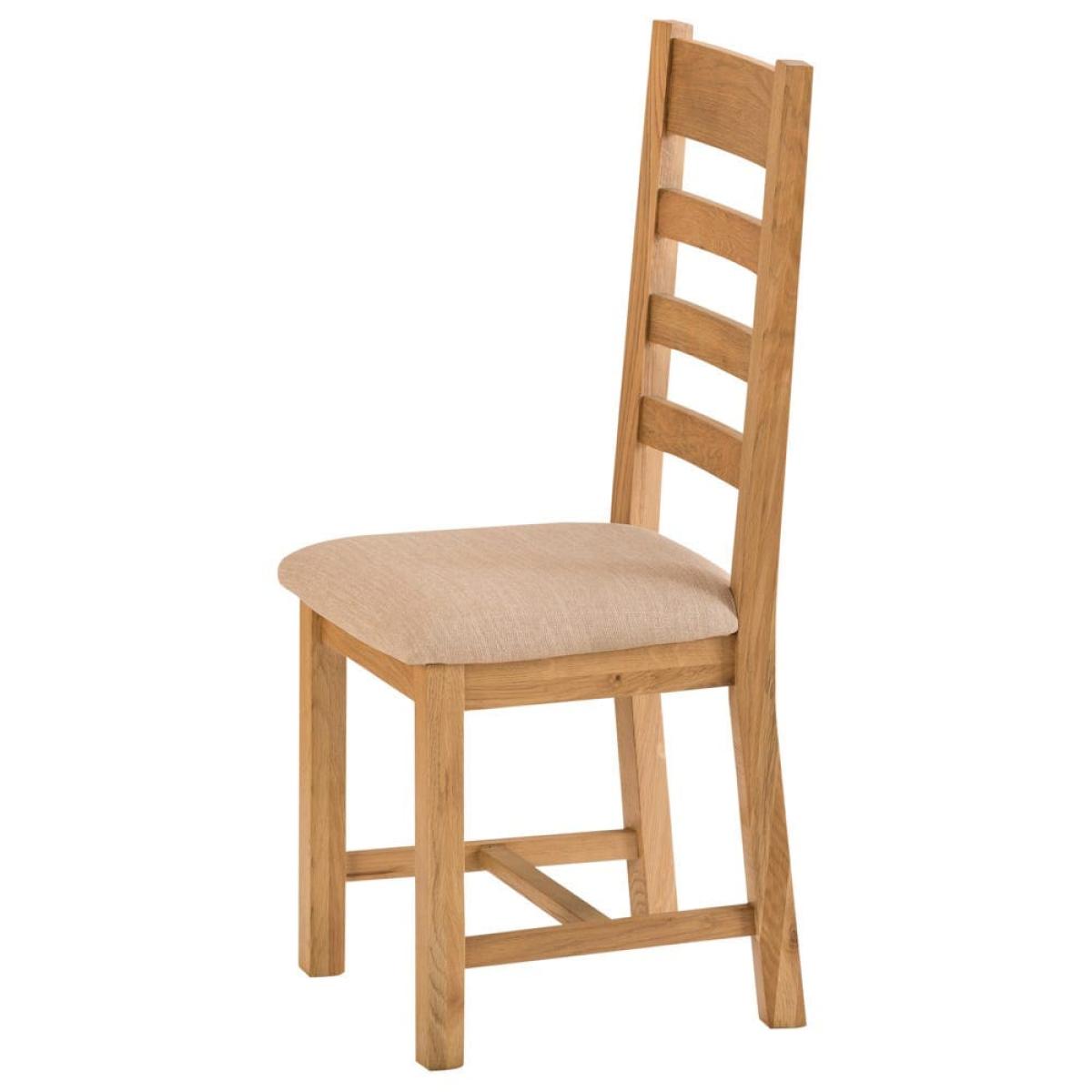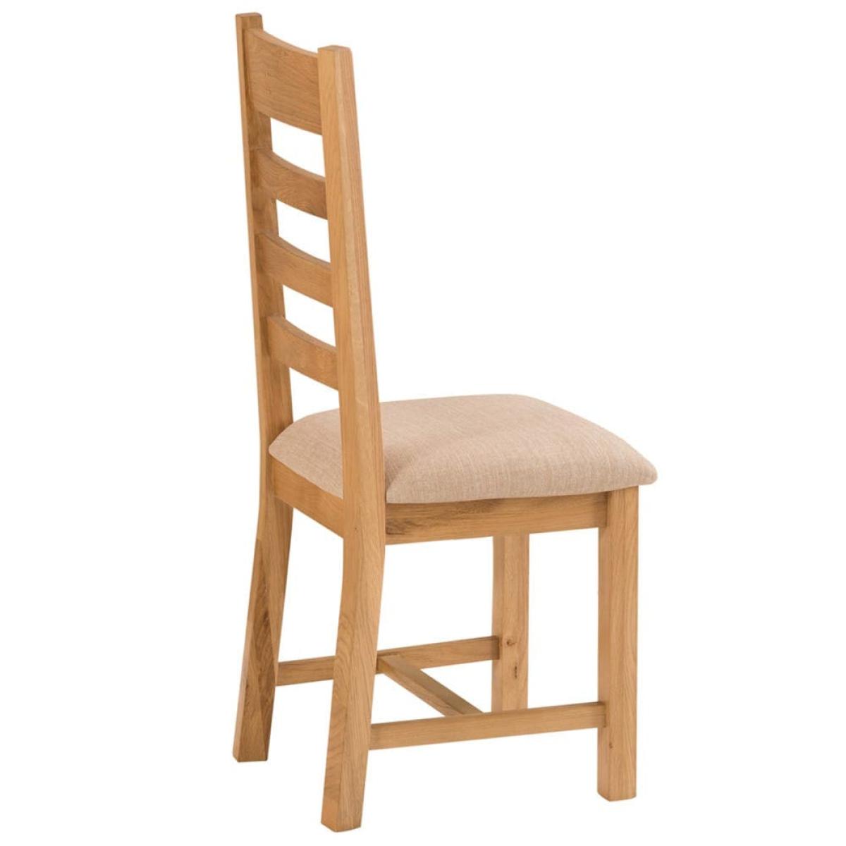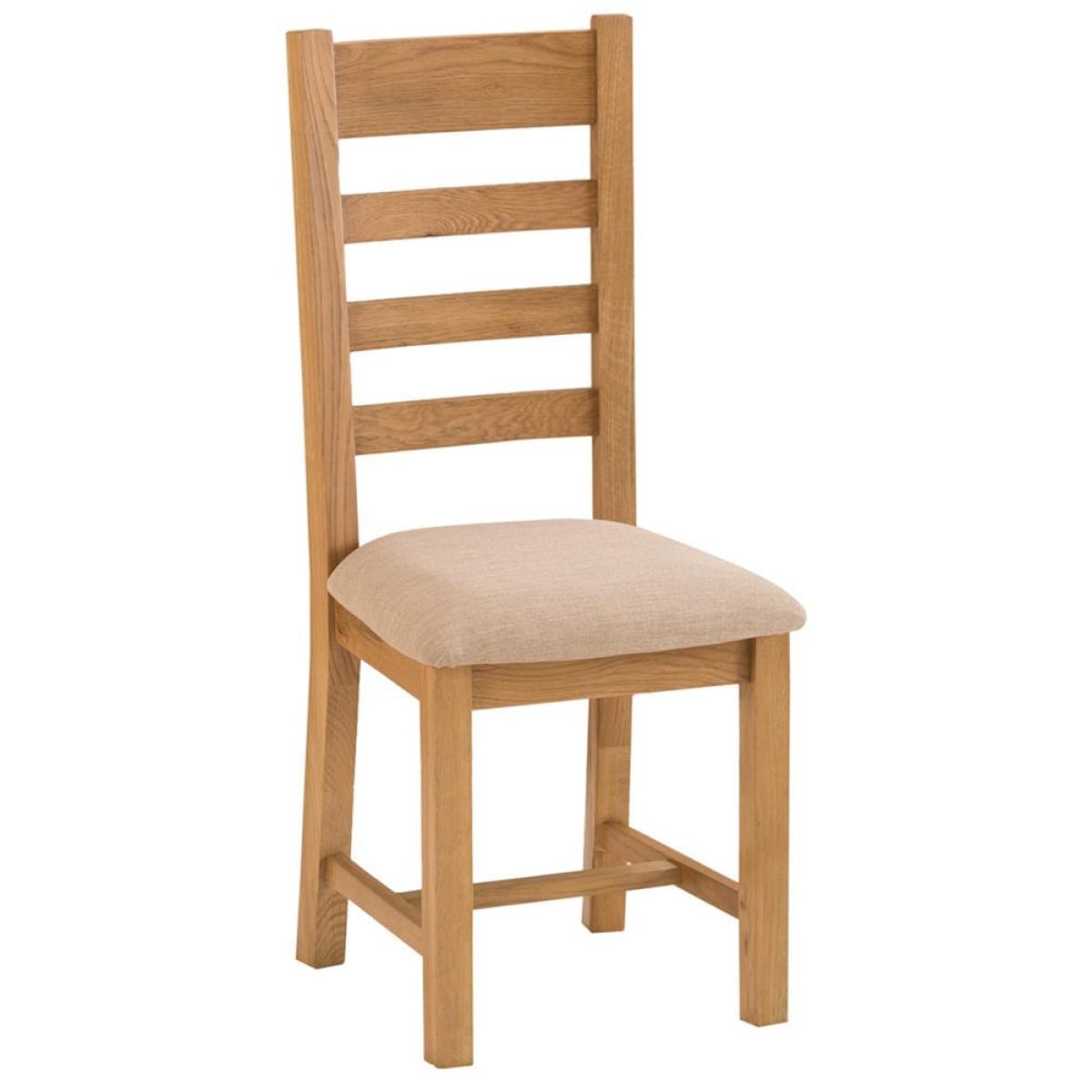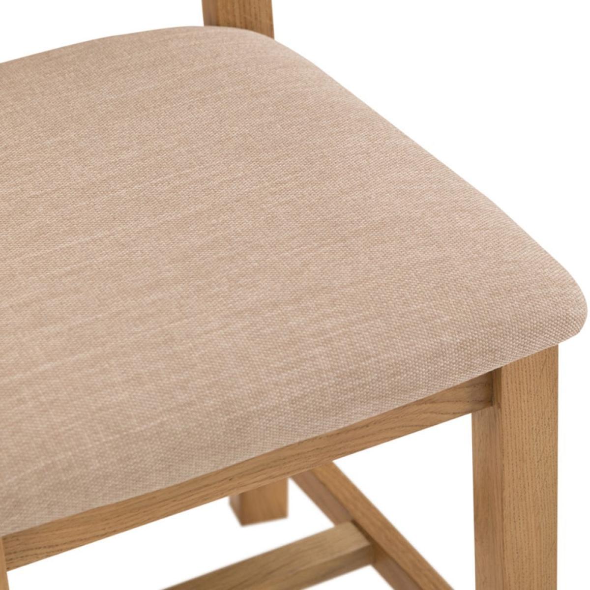 I love this set of dining chairs because of their versatile rustic charm, which makes them perfect for both country-style kitchens and modern open-plan dining areas. The oak slats lend a natural, warm feel that pairs beautifully with a variety of table finishes, from rustic wood to smooth, contemporary surfaces. The fabric seat adds comfort without compromising on style, making them practical for everyday dining. For styling tips, consider mixing these with other textured elements like woven placemats or linen tablecloths to highlight their natural appeal, or introduce colour with vibrant cushions for a more eclectic look. Their straightforward design also means they work well in both casual and more formal settings, making them a reliable choice for many interiors.