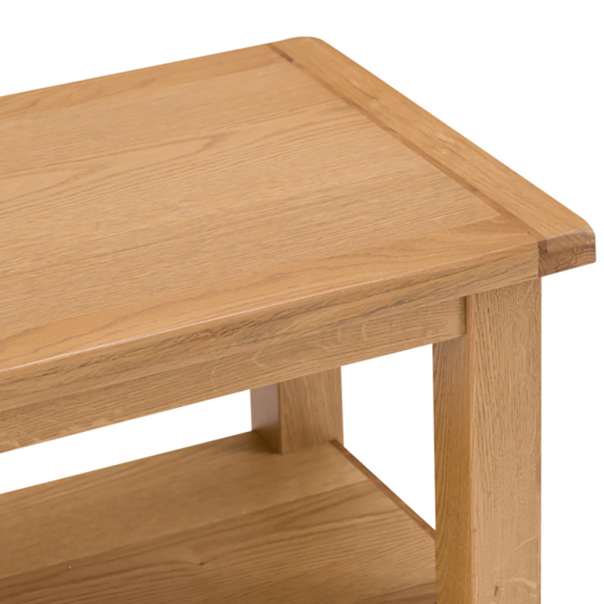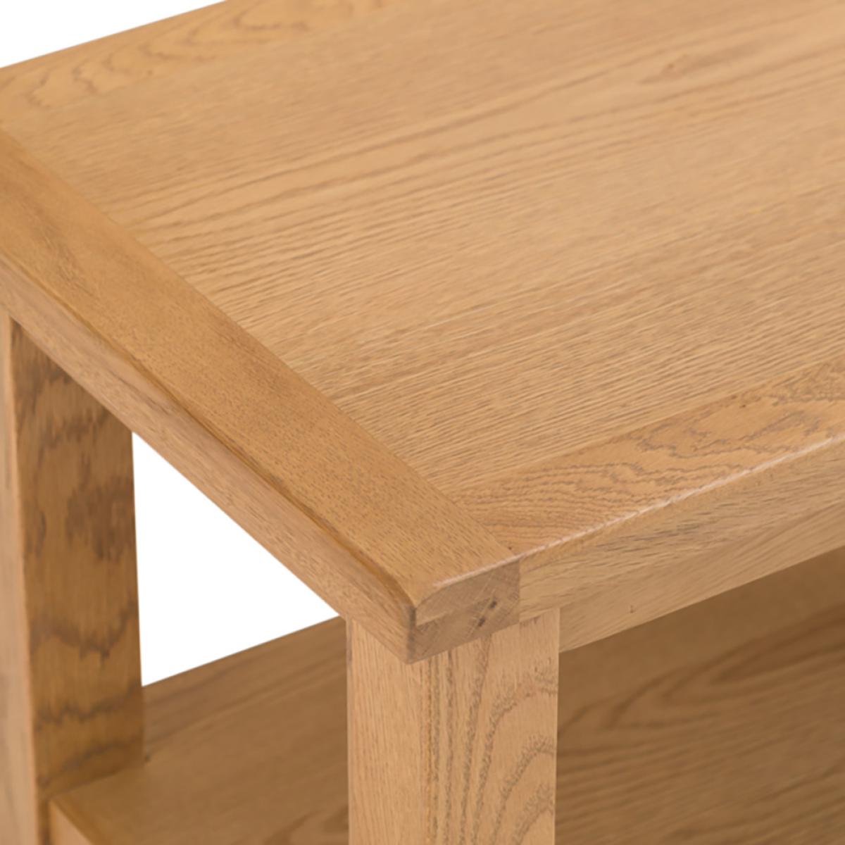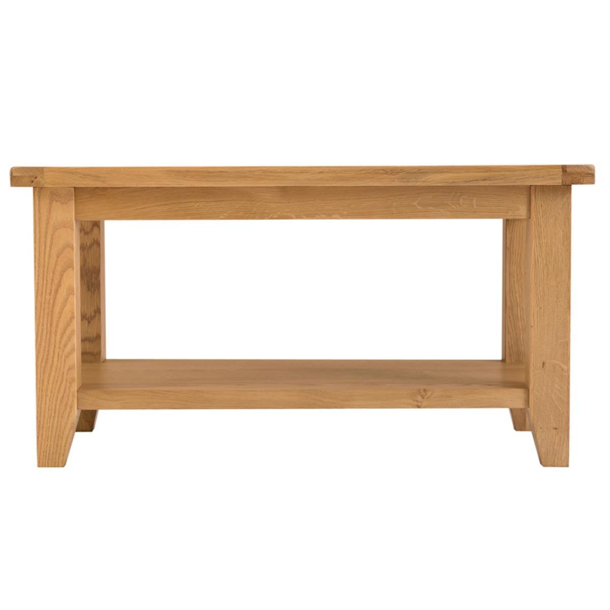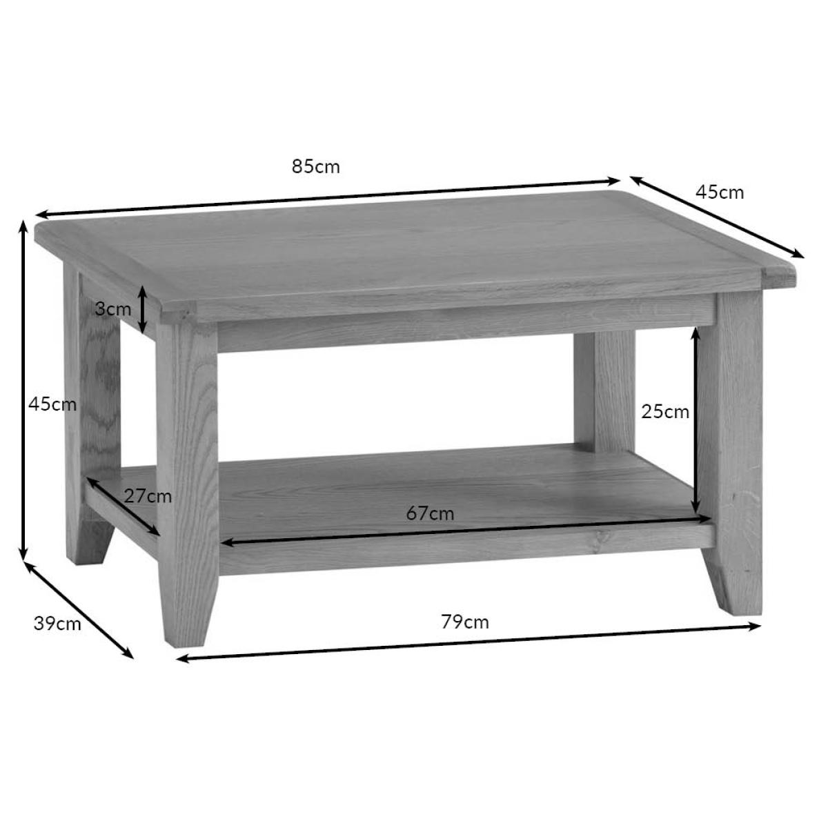 One of the most frequently used items in the home, the Coffee Table frequently takes centre stage in the Living Room. The Rustic Oak Small Coffee Table is a compact yet stylish oak coffee table that is sure to prove the perfect Living Room centrepiece thanks to its generously proportioned top surface and large open storage area beneath. A Coffee Table says much about your personal style and this traditional rustic oak Coffee Table is a timeless item of furniture that simply never goes out of fashion. Made from a combination of solid oak and oak veneer, this small oak Coffee Table is the smallest Coffee Table within this Collection. If you’re looking for something a little larger you may be interested in the Large Coffee Table, also in the Rustic Oak Collection.
