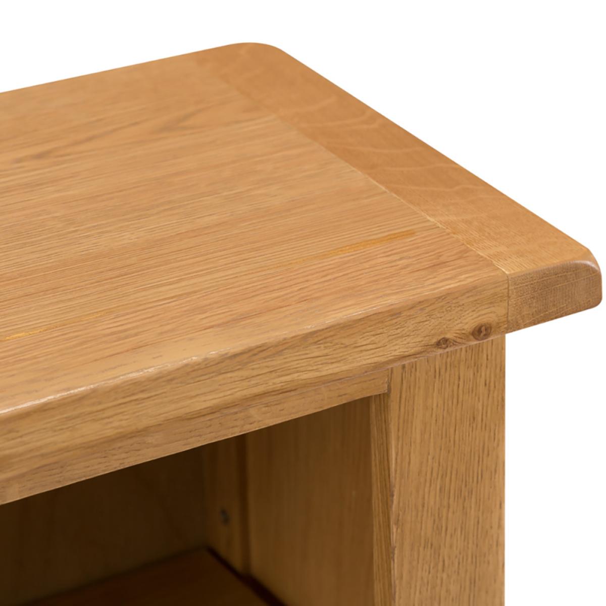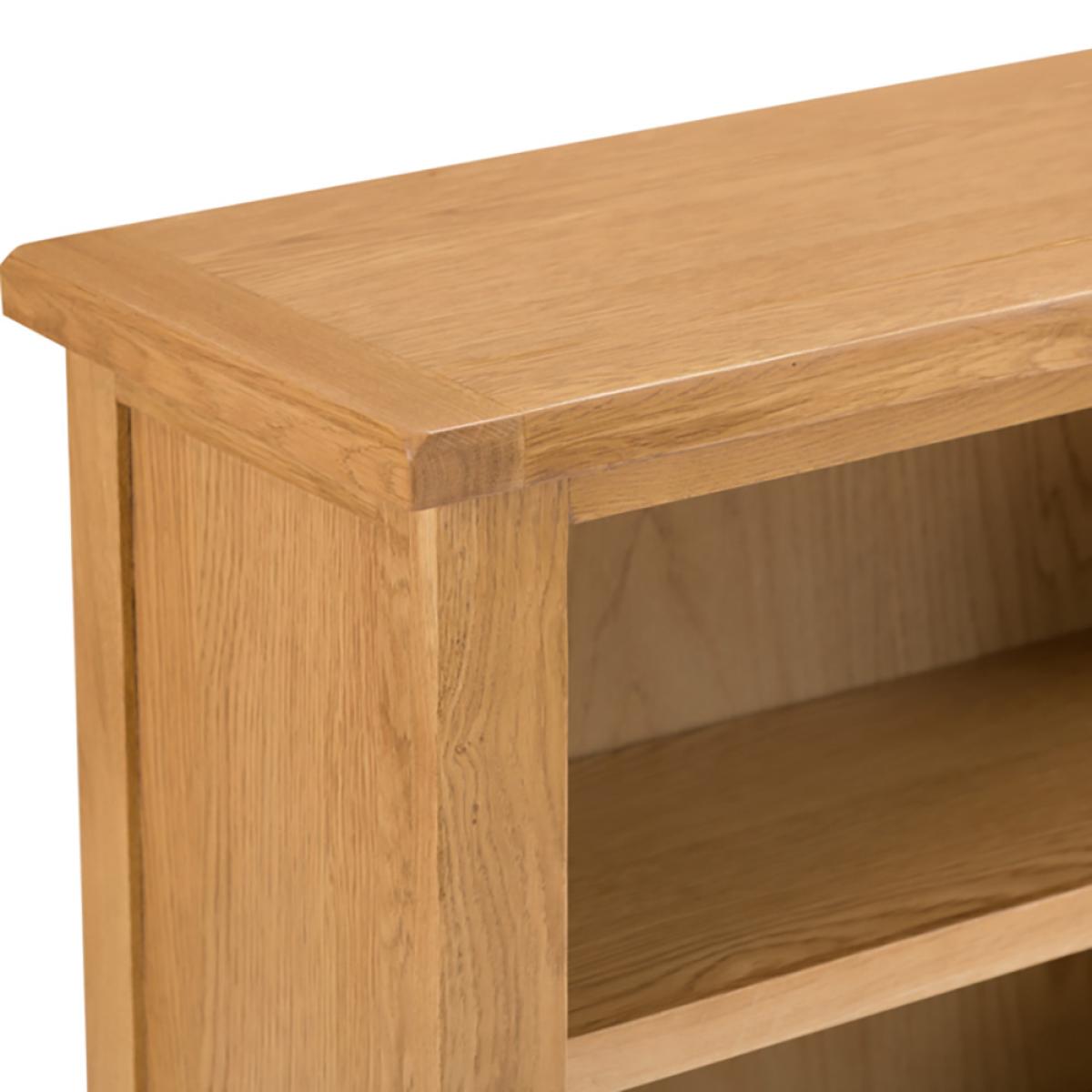 Suitable for almost any room of the home, the Rustic Oak Small Wide Bookcase is the middle of the road in terms of oak Bookcases in this Collection, but in reality it’s anything but average. Ideal not just for holding Books, this oak Small Wide Bookcase is also suitable for DVD’s, computer games and even ornamental items. The traditional, timeless appearance of this gorgeous Rustic Oak Low Bookcase ensures that it’ll remain relevant for many years to come and thanks to it’s exceptional build quality, this is not only an outstanding item of furniture in its own right but also a shrewd investment. Delivered fully assembled, you can begin to enjoy this oak Wide Bookcase as soon as it arrives. Made from a combination of solid oak and oak veneer, if you need something smaller than this rustic oak Small Bookcase you may wish to consider the oak Small Narrow Bookcase also within the brilliant Rustic Oak Collection.