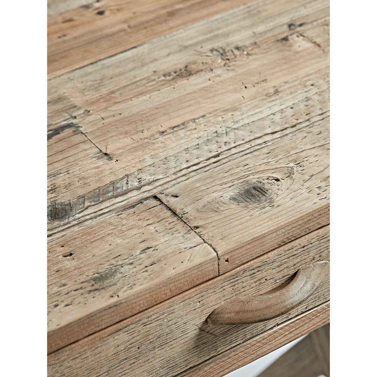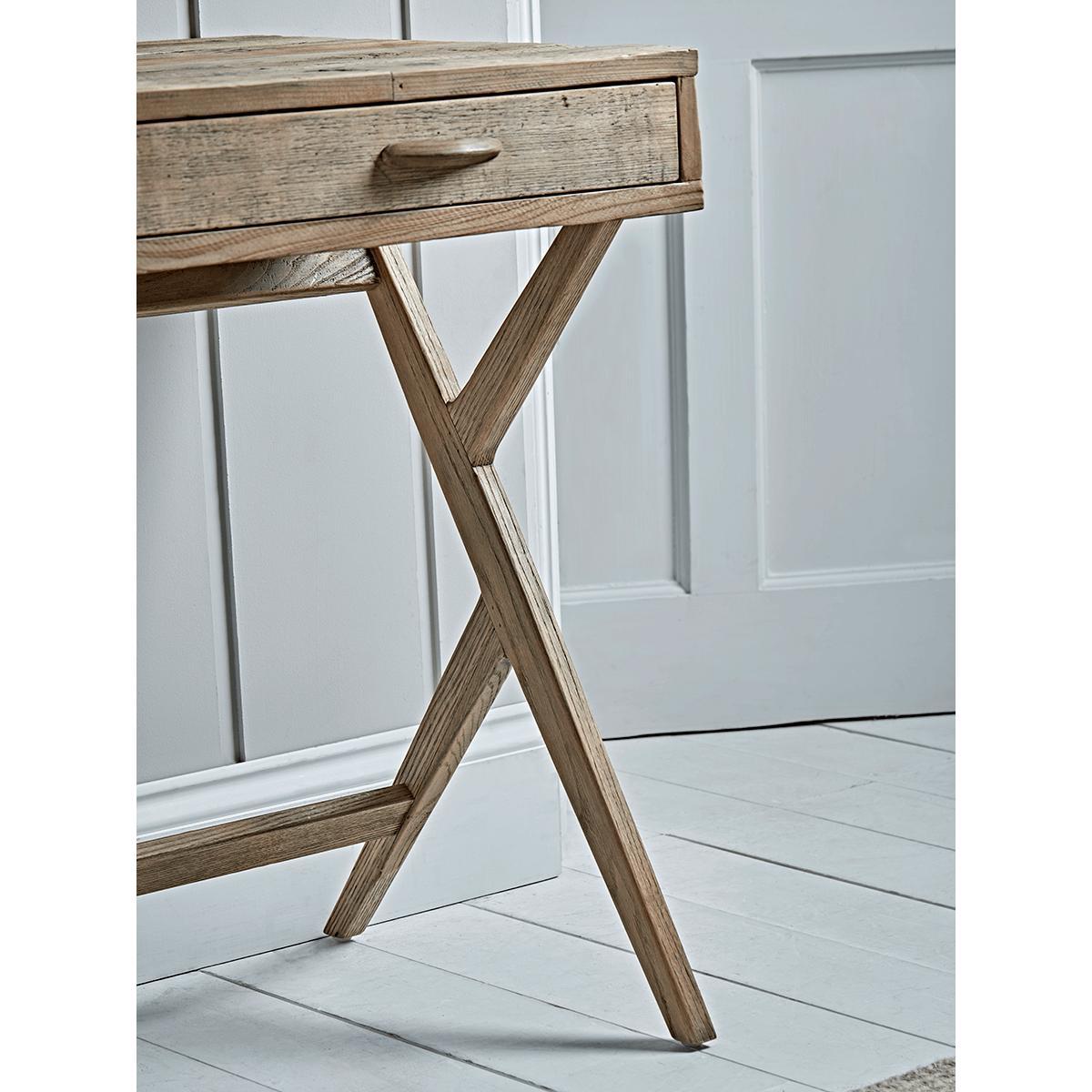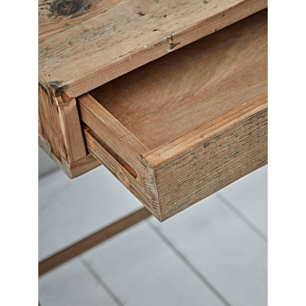 With a fabulous aged industrial style finish and rustic visible wood grain, our pine desk is perfect for your bedroom, hallway or living space. With a cross bar for stability, and an organic cross frame design, each desk comes with two slender drawers each with a cup handle beautifully crafted in wood. A generous workspace with real design credential, dress our wonderful desk with complementary industrial pieces, such as our. Wirework Magazine Rack.