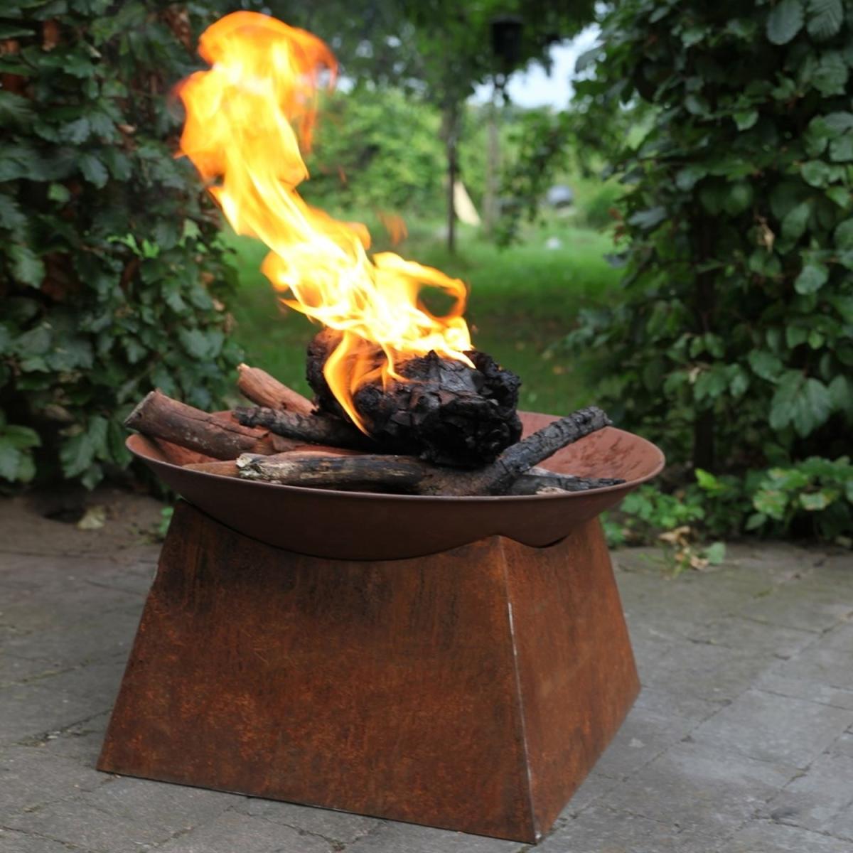 Features we love Simple and classic design with a rust finish looks stunning in any garden setting. Round open design makes it great for roasting marshmallows!Rustic oxidised finish continuous to age beautifully over time. Resting upon its own stand there'll be no fire damage to your grass or patio. The separate bowl means the base doesn't get too hot to move around. Small drainage hole at the base prevents water build up and provides oxygen to flames All about me. Light up the evening with this classic round fire pit. It's perfectly proportioned to gather friends and family around as the sun starts to set on a summer's night. And when the weather starts to turn a little colder the open bowl design comes in great for a cosy night roasting marshmallows. The bowl gently rests upon its own angular stand which lifts it up to an ideal height and also protects your garden from fire damage. The base won't get too hot either compared to the actual fire bowl so you can carefully adjust its position in the garden. This timeless fire pit has been made from mild steel that's been oxidised to create an authentic patina rust finish which will continue to age beautifully over time from the effects of the fire and weather. The rustic warm tones gives this fire pit an aged and natural appearance that'll look stunning in any garden setting. Need to know. Dimensions. H33 x W56.5 x D56.5 cm Weight. 3.9 kg Material. Steel Finish. Authentic patina rust finish Assembly. Simply place the bowl upon the stand.