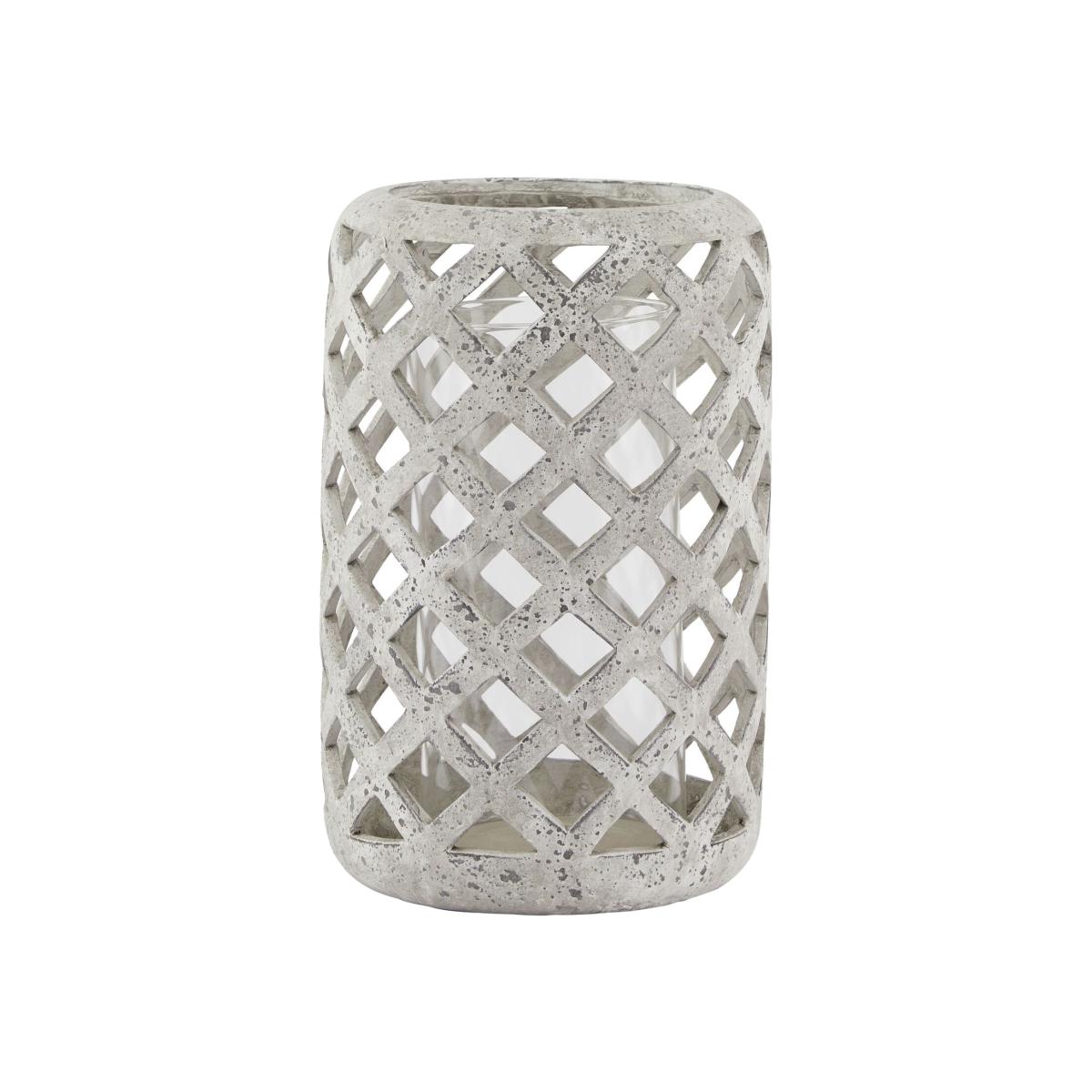 Bring rustic allure to your interior spaces with this distinguished stone-effect hurricane lantern. The weathered grey finish creates a calming Mediterranean atmosphere, while the substantial proportions make it an ideal centerpiece. Perfect for both indoor and outdoor settings, it pairs beautifully with the Athena Stone collection, Regola ceramic vases, and natural eucalyptus stems for an organic, layered look. Consider displaying multiple lanterns at varying heights alongside Kubu rattan storage baskets to create an inviting ambiance that appeals to design-conscious customers seeking authentic character. 1