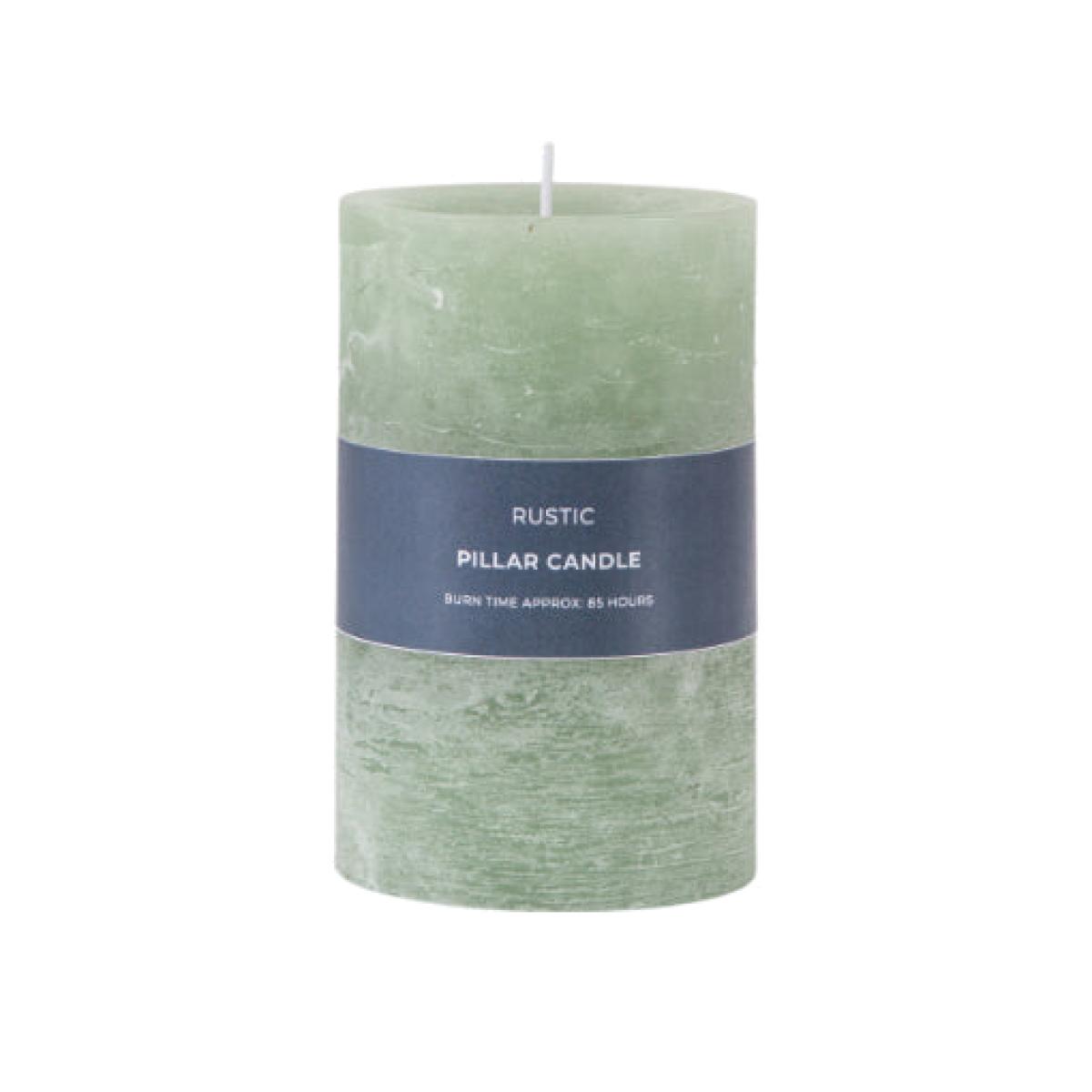 Rustic Sage Green Colour pillar candle - unscented - 35 hours burn time - 14cm tall x 9cm width Create a cosy atmosphere by adding candles to your fireplace or living space with our rustic pillar candles in fresh sage green colour. Rustic Sage Green Colour pillar candle - unscented - 35 hours burn time - 14cm tall x 9cm width Create a cosy atmosphere by adding candles to your fireplace or living space with our rustic pillar candles in fresh sage green colour.