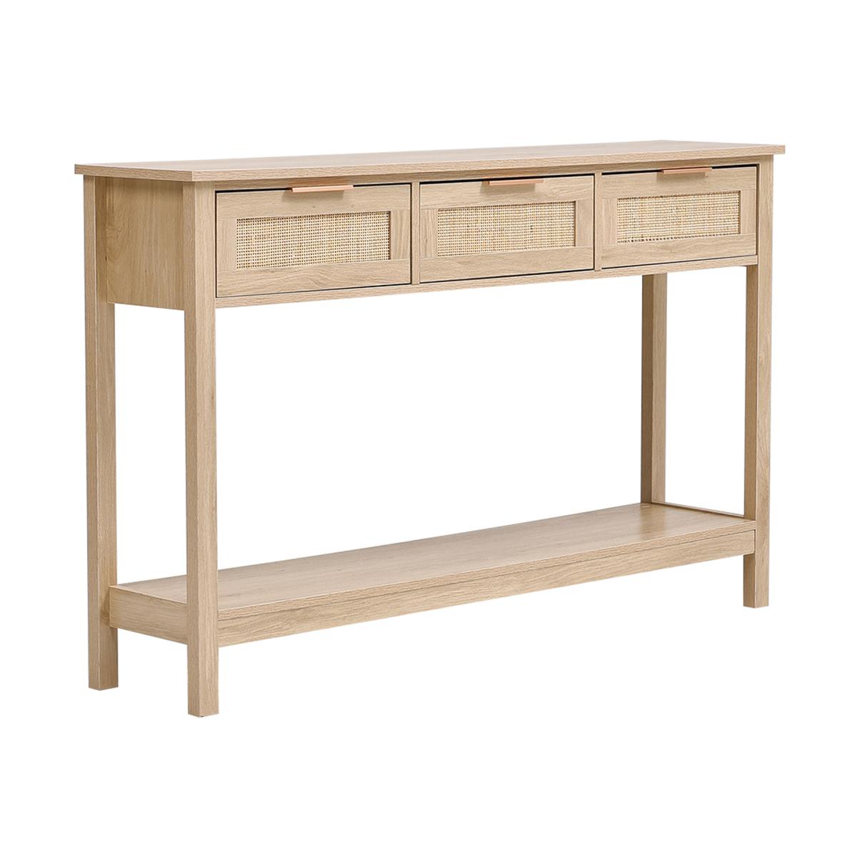 Rustic Wood Console Table with Rattan Drawers - Wood