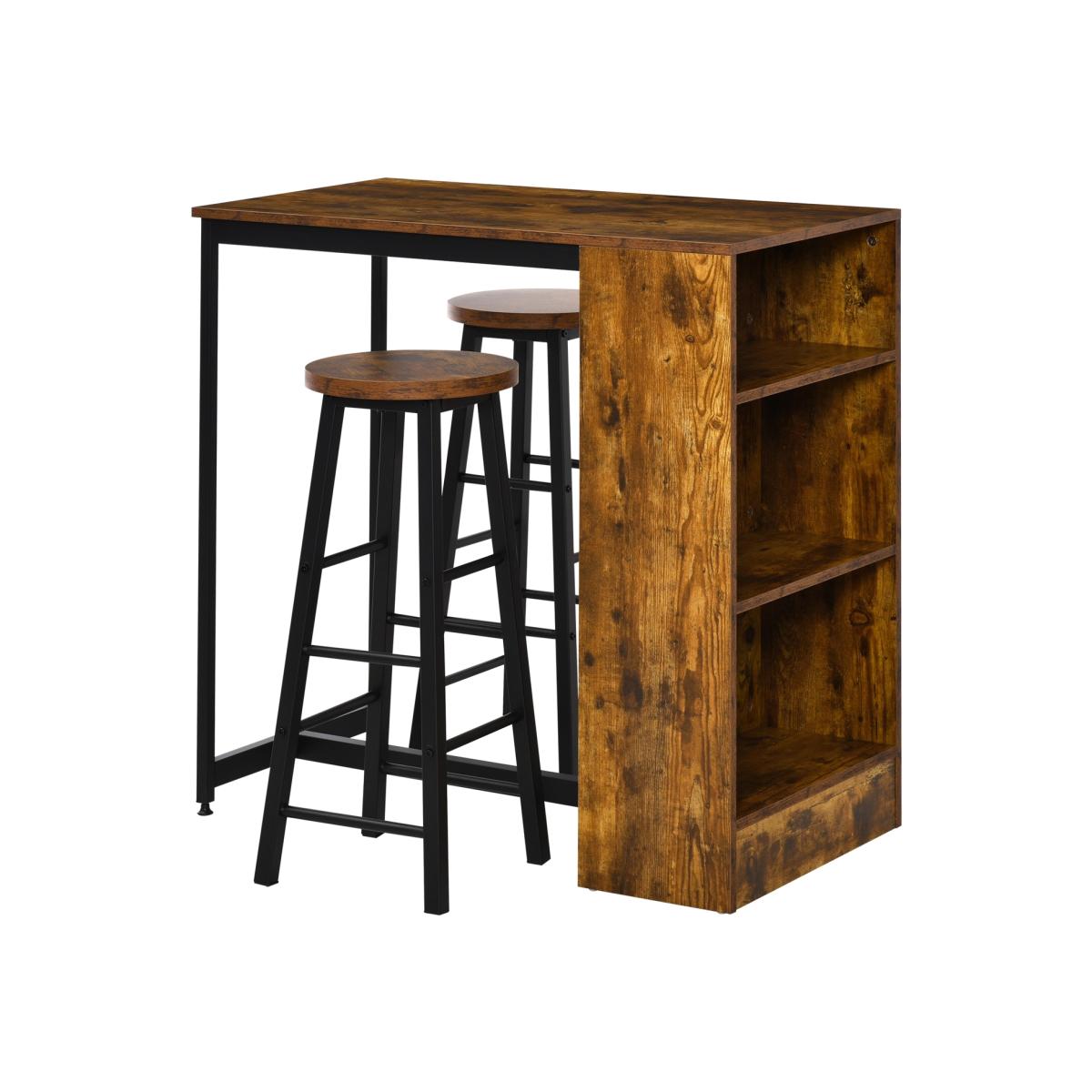 Rustic Wood Effect Bar Table and Stool Set - Seats 2 - Ryder