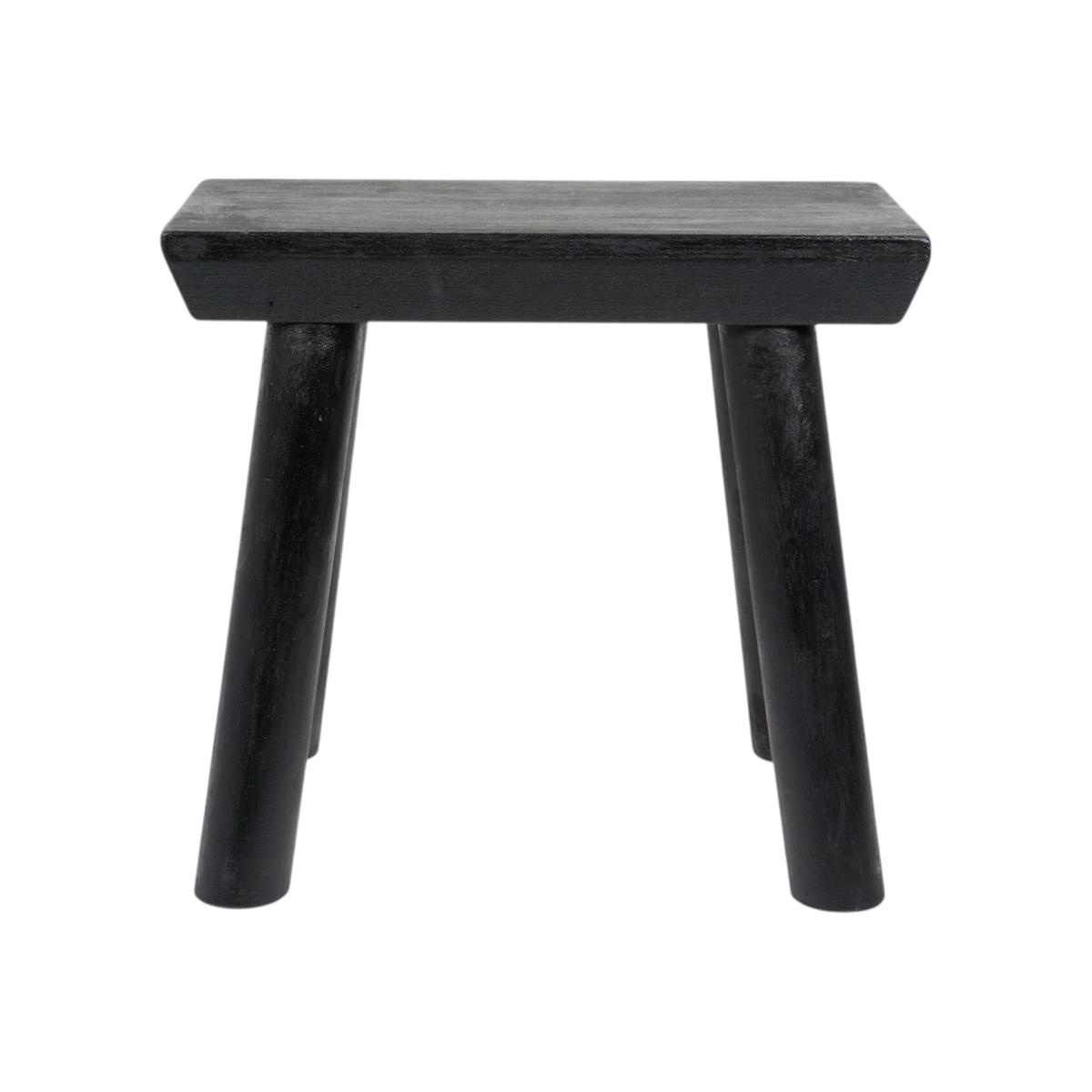 This little black stool is a versatile piece, perfect for adding a touch of rustic charm to both contemporary and traditional interiors. Its simple, sturdy design makes it not only functional but also an understated style statement. I love using it as extra seating in living areas or as a functional side table in kitchens and breakfast nooks. It works particularly well in industrial or farmhouse style spaces, where its raw wood finish complements other natural textures. For styling tips, try pairing it with soft textiles or metallic accents to add contrast, or arrange a few around a dining table for a casual, inviting vibe. Its compact size also makes it ideal for smaller spaces where multifunctionality is key.